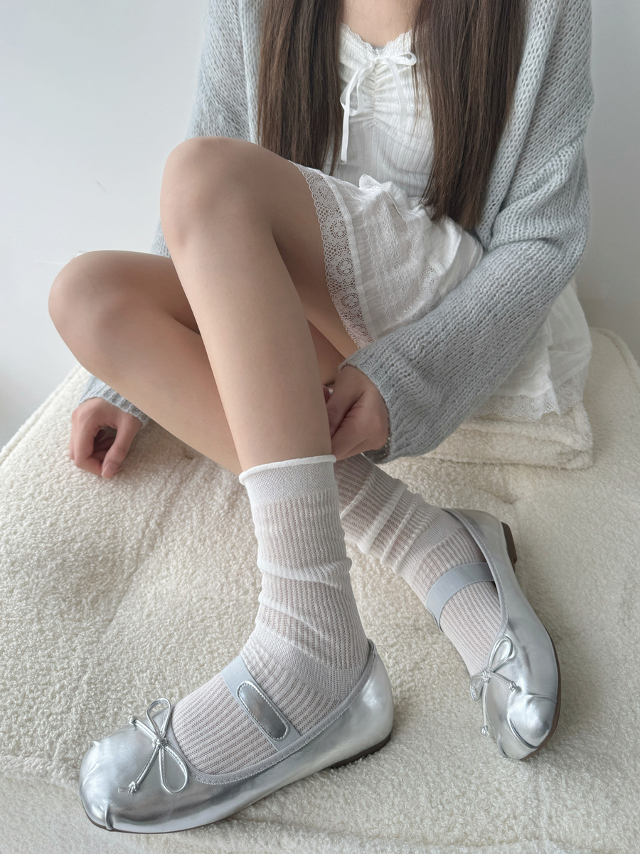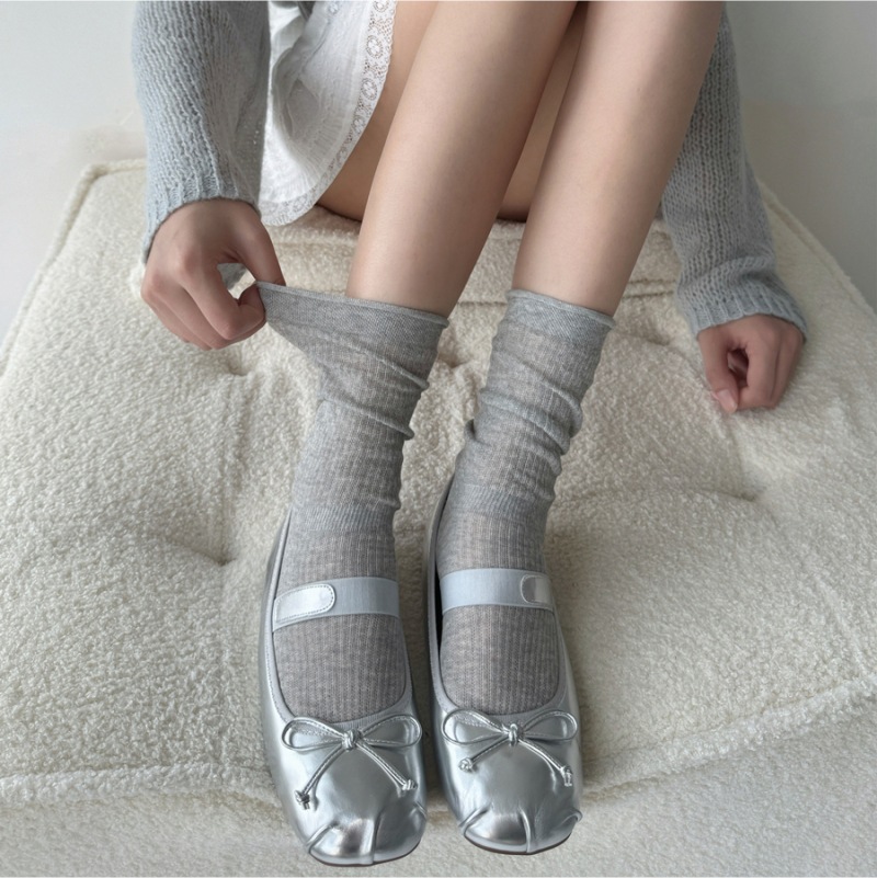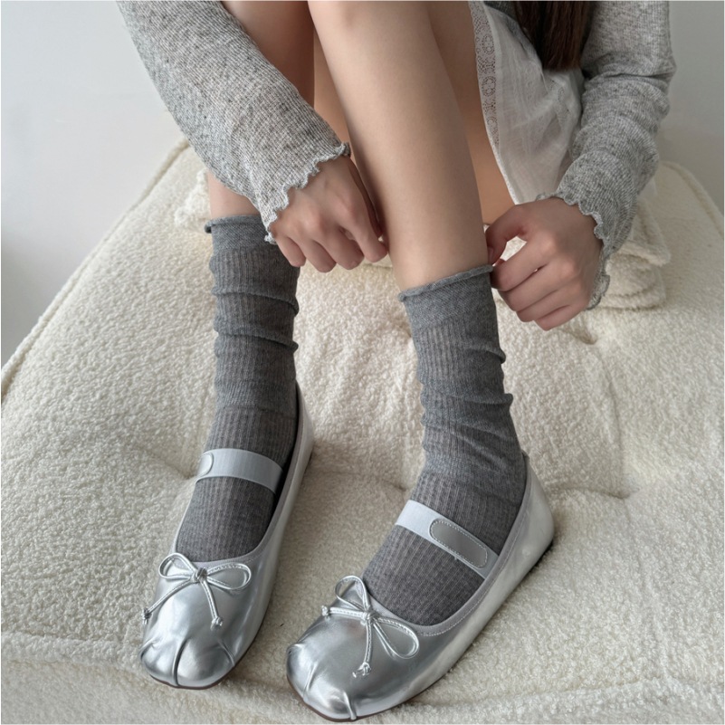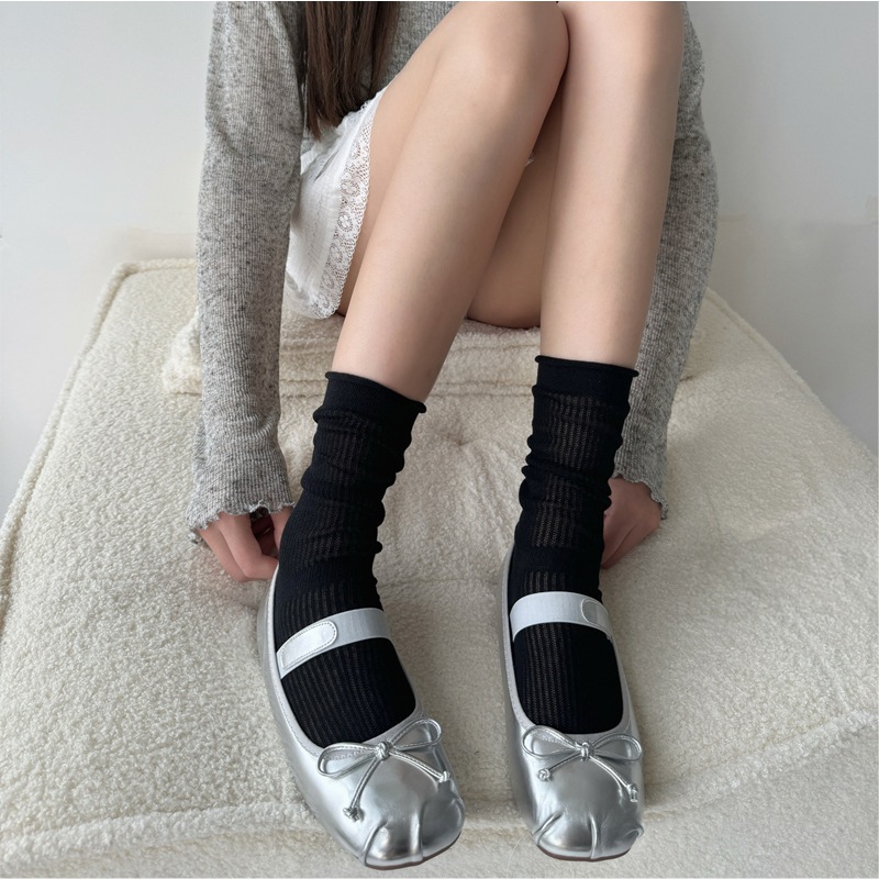 그레이 버블 미드 종아리 양말 여름 얇은 여성 일본식 세로 줄무늬 그레이 양말 miu 스타일 양말
