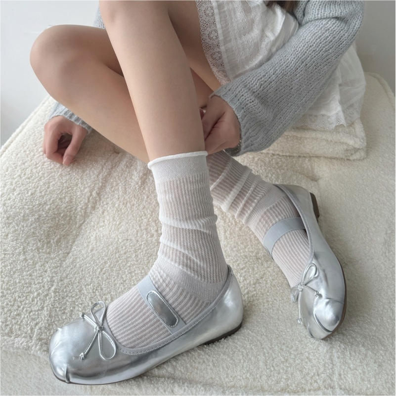 그레이 버블 미드 종아리 양말 여름 얇은 여성 일본식 세로 줄무늬 그레이 양말 miu 스타일 양말스토어 가기