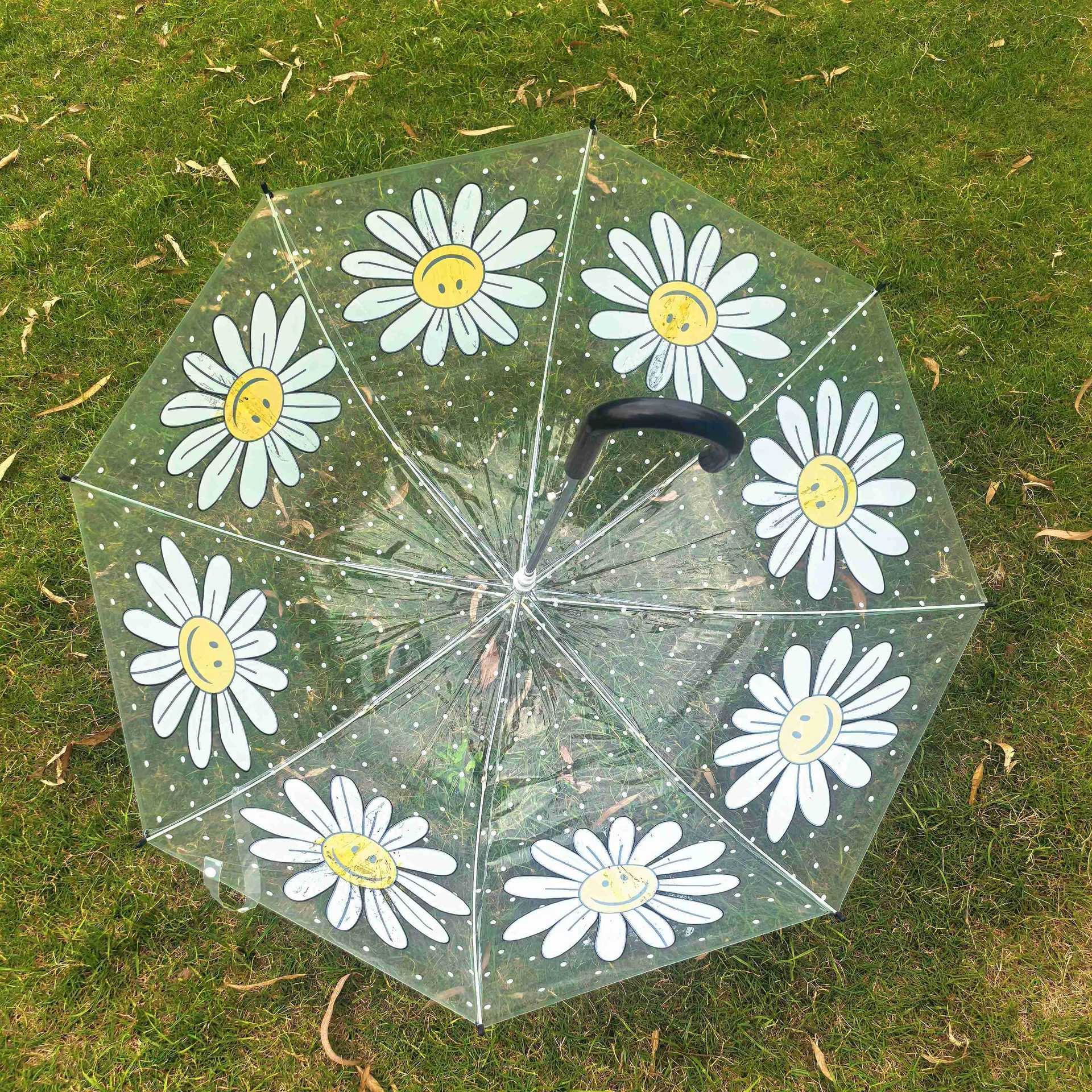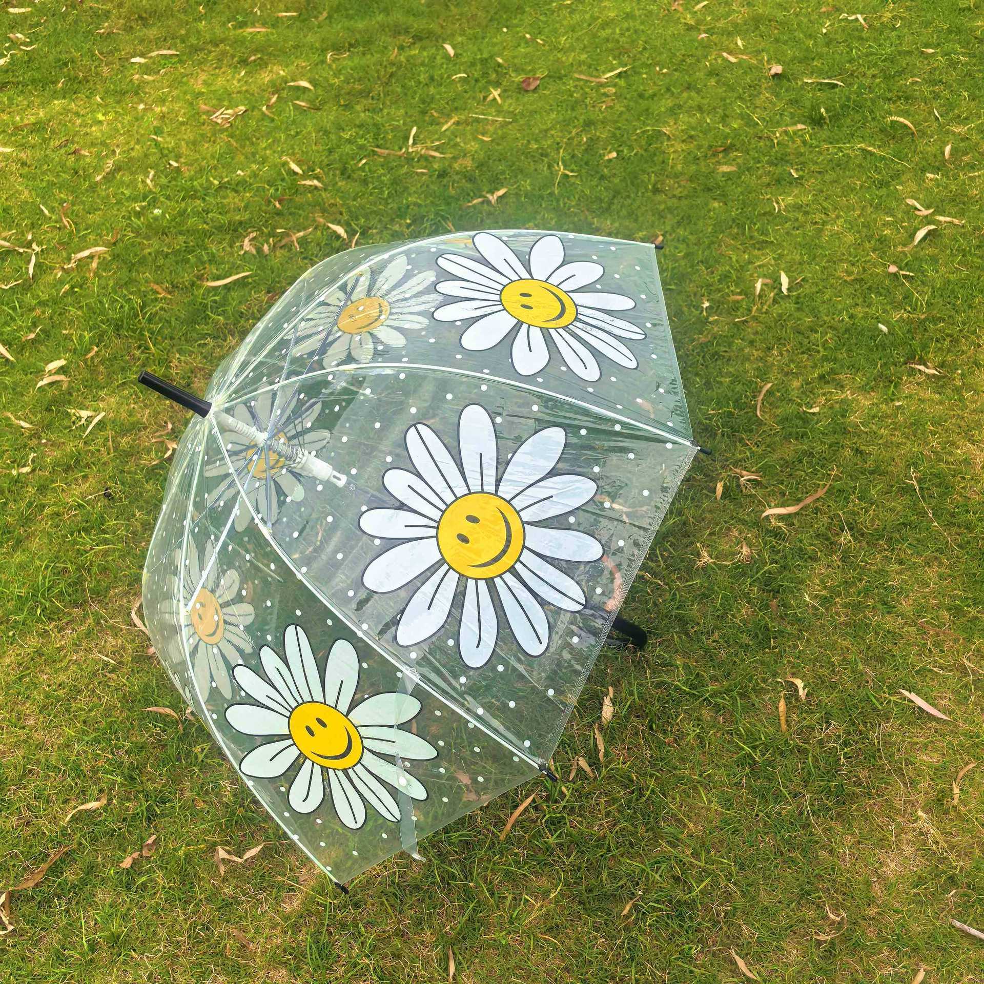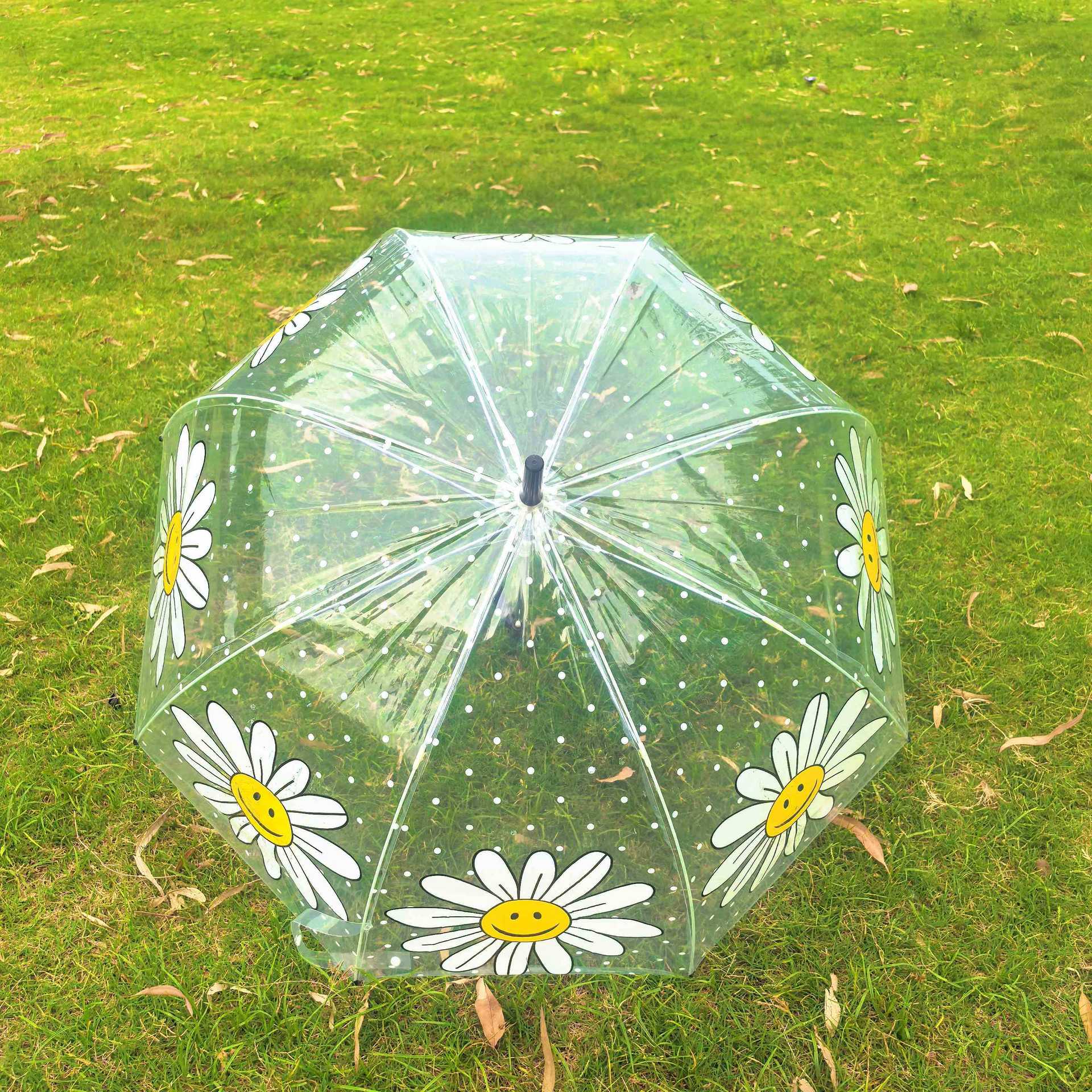 Ins 새로운 한국 오리지널 싱글 Wiggle 아치형 깊은 새장 부모-자식 우산 8본 투명 웃는 얼굴 꽃 우산