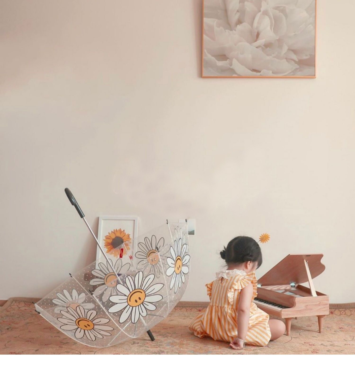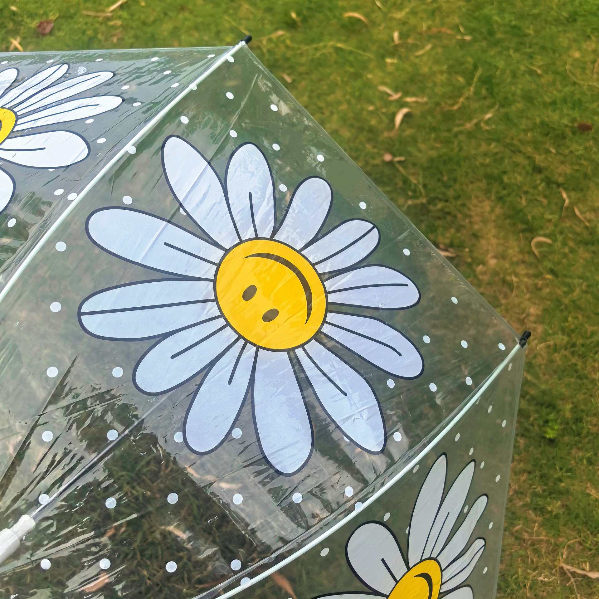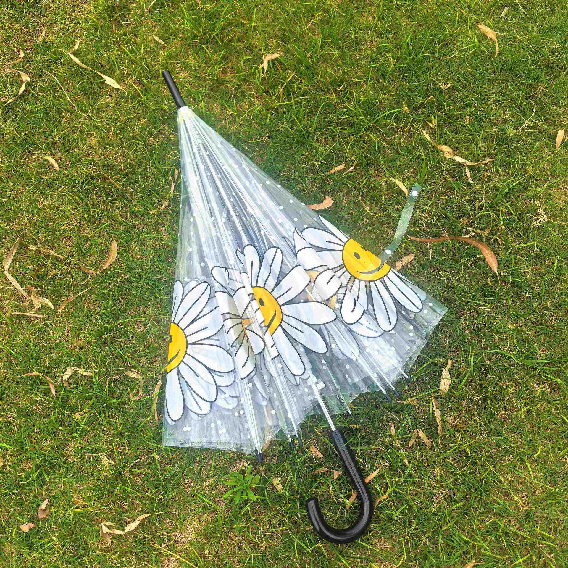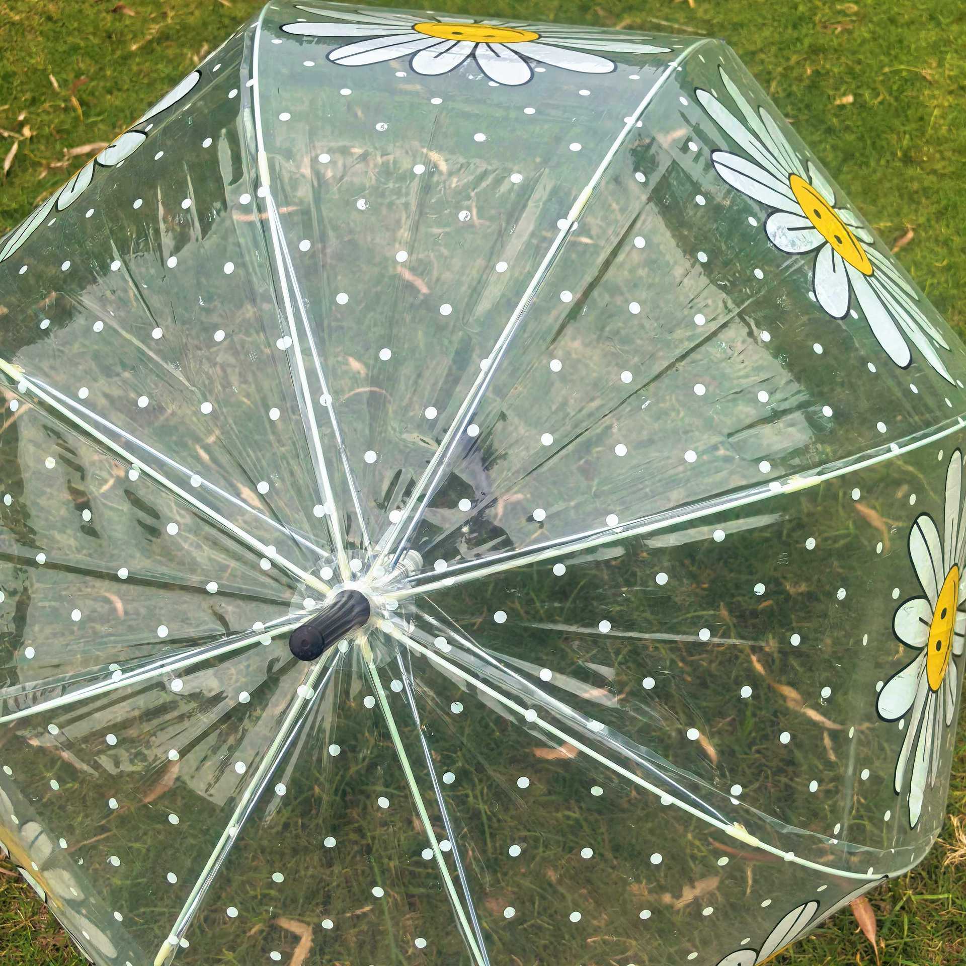 Ins 새로운 한국 오리지널 싱글 Wiggle 아치형 깊은 새장 부모-자식 우산 8본 투명 웃는 얼굴 꽃 우산