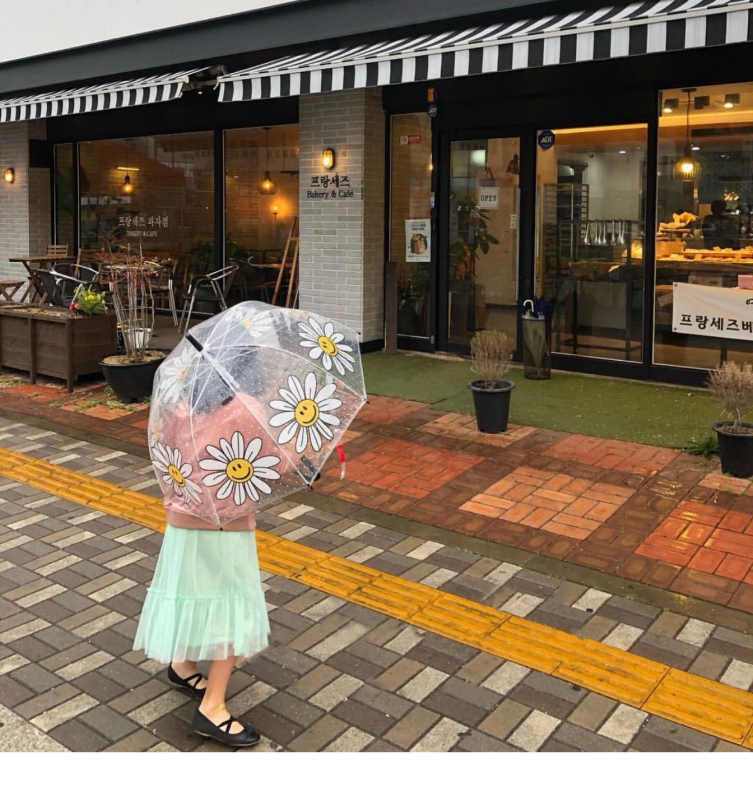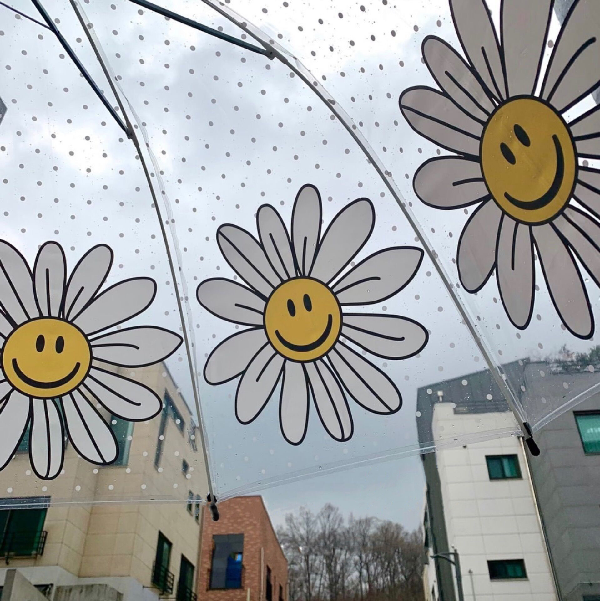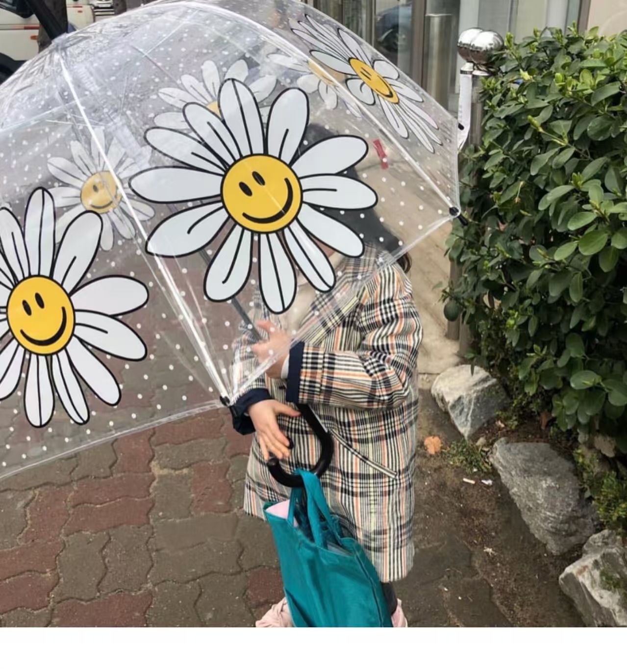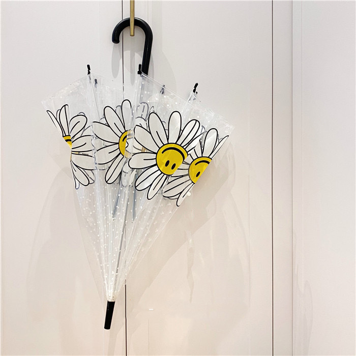 Ins 새로운 한국 오리지널 싱글 Wiggle 아치형 깊은 새장 부모-자식 우산 8본 투명 웃는 얼굴 꽃 우산스토어 가기