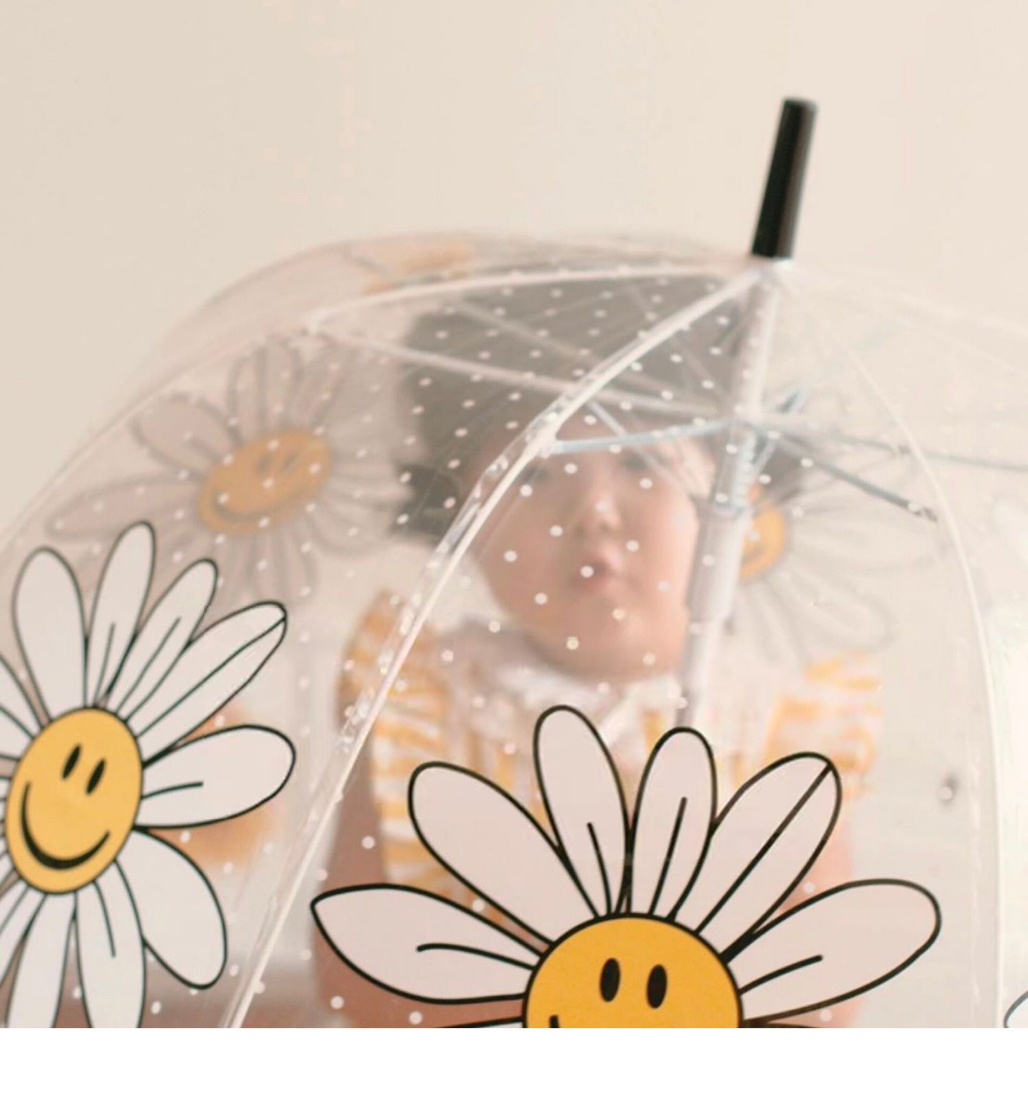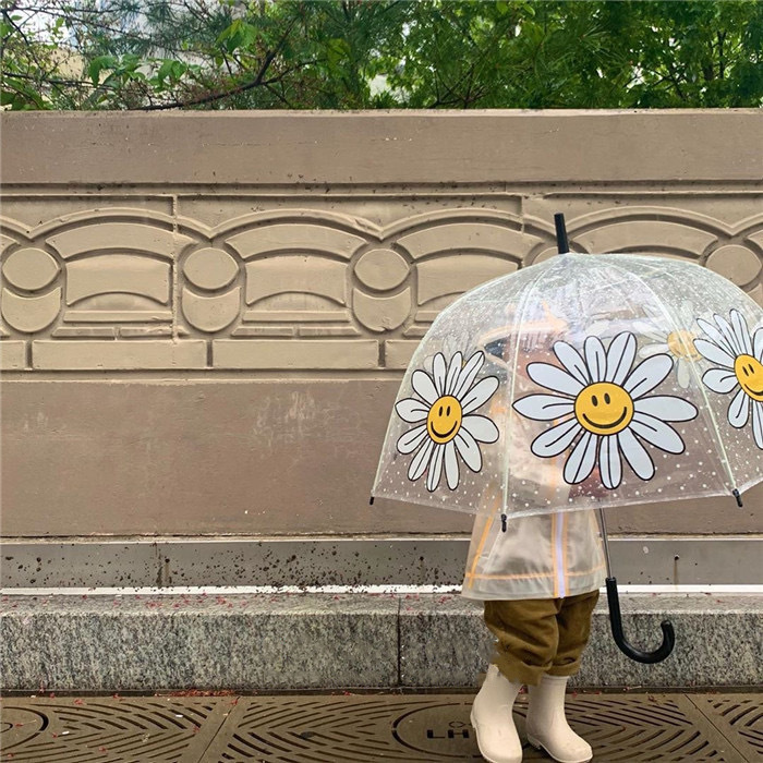 ins新款韩国原单伞拱形加深鸟笼亲子雨伞八骨透明笑脸花儿童伞