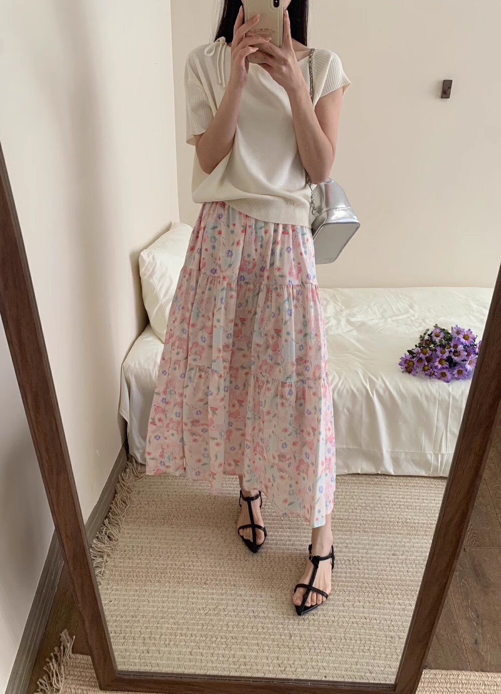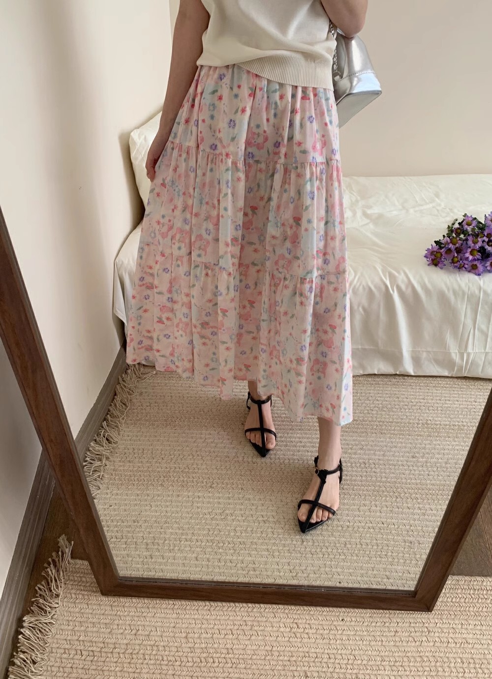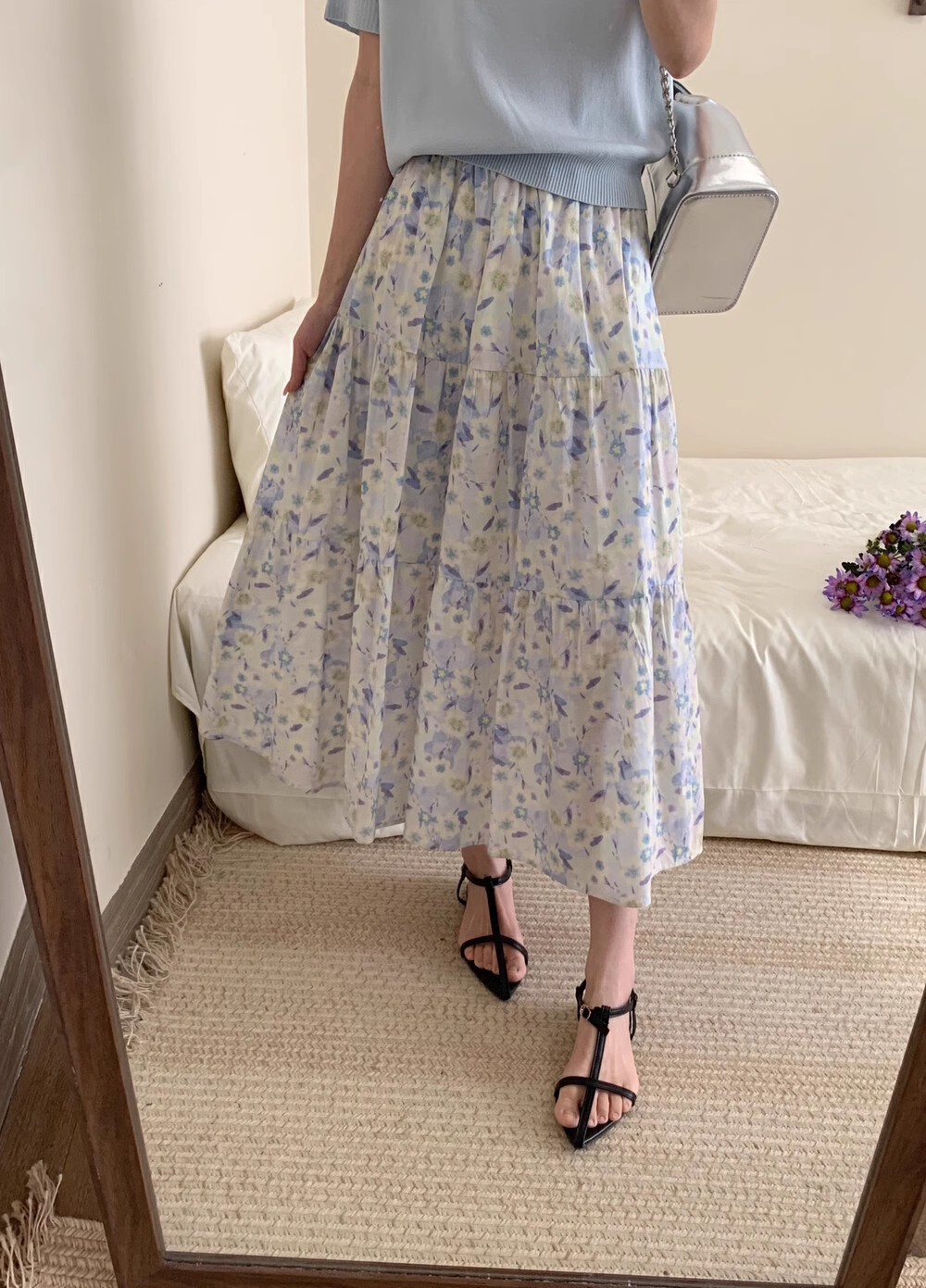 포켓이 있어요~ 여성용 유화 꽃무늬 젠틀 스타일 스커트, 신상 꽃무늬 롱 스커트, 코튼 캐주얼 프레쉬 우산 스커트스토어 가기