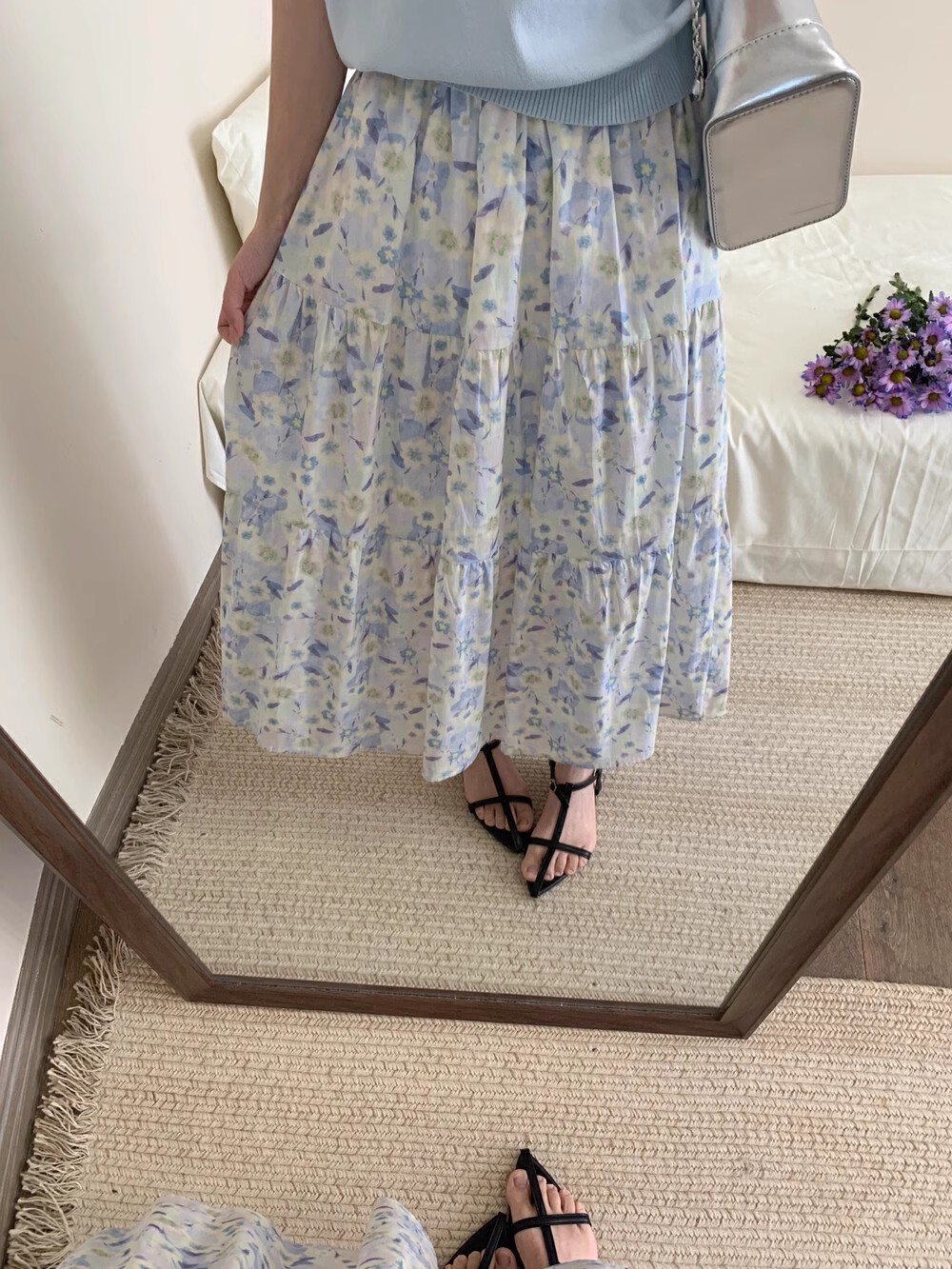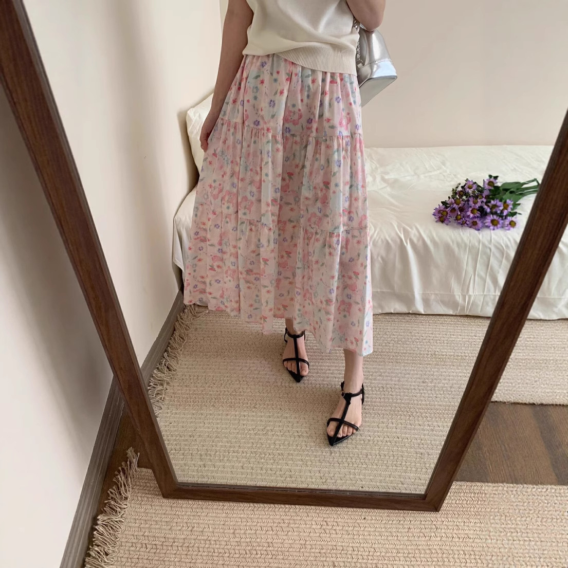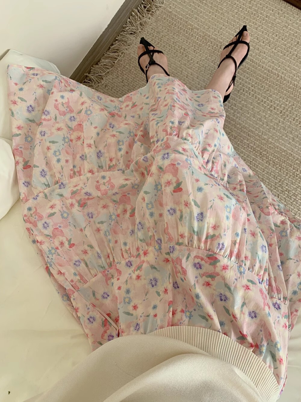 有口袋~油画繁花温柔风半身裙女新款碎花长裙棉质休闲清新伞裙