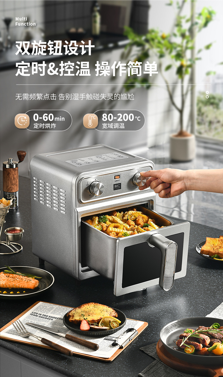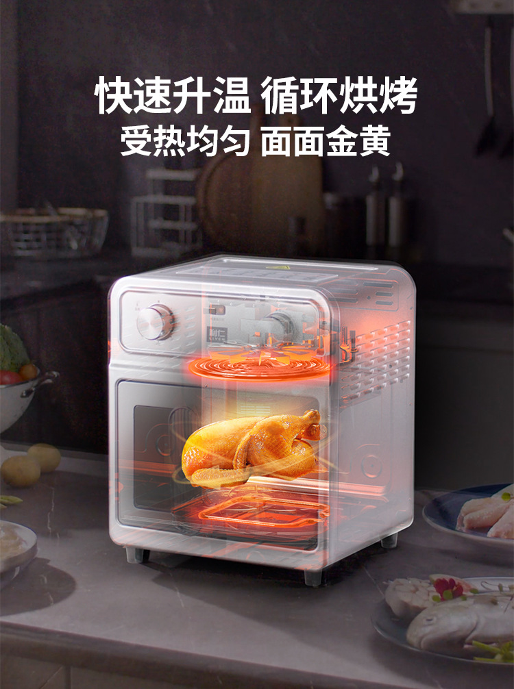 [무역] 리렌 에어프라이어 KZ-J6569/70/97 듀얼 열원 소형 스틸 뷰어블 케이스 오븐