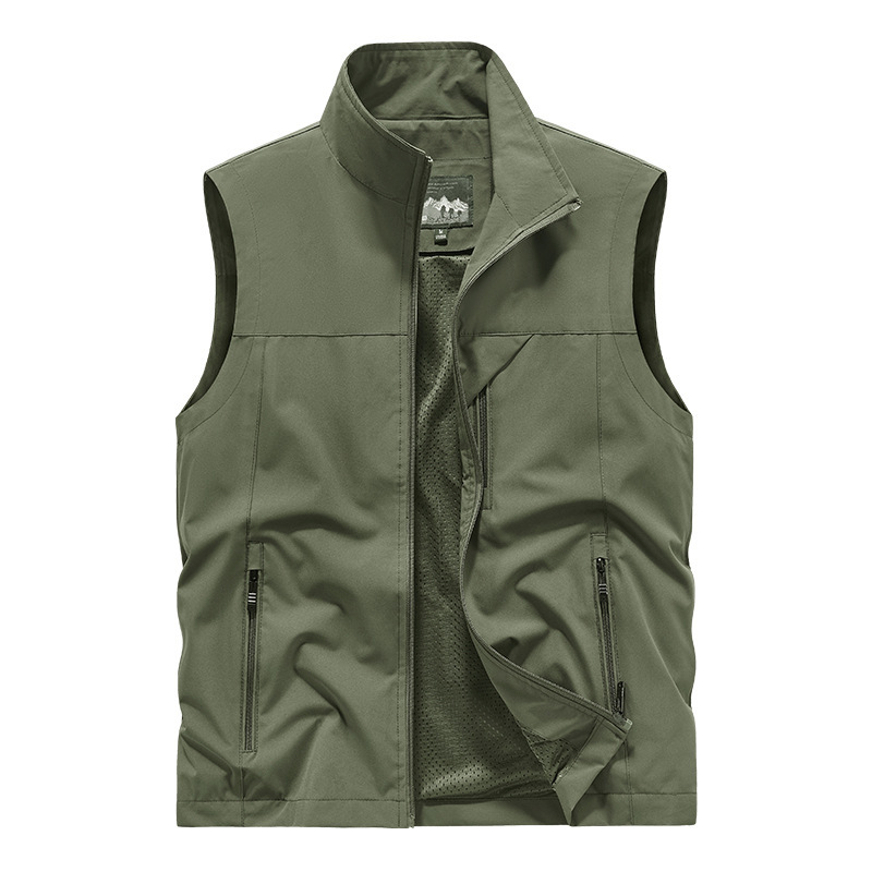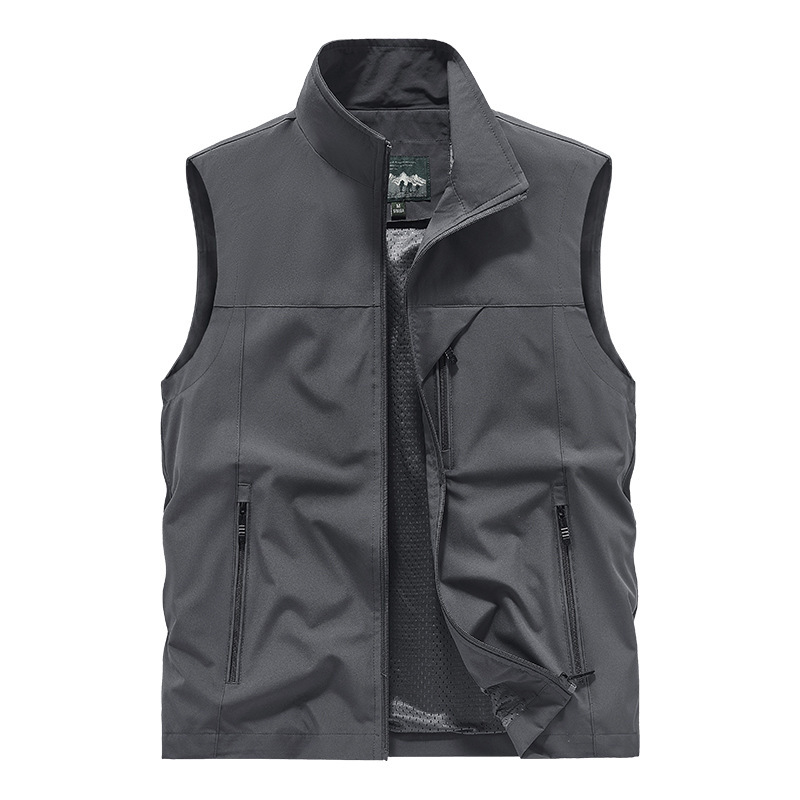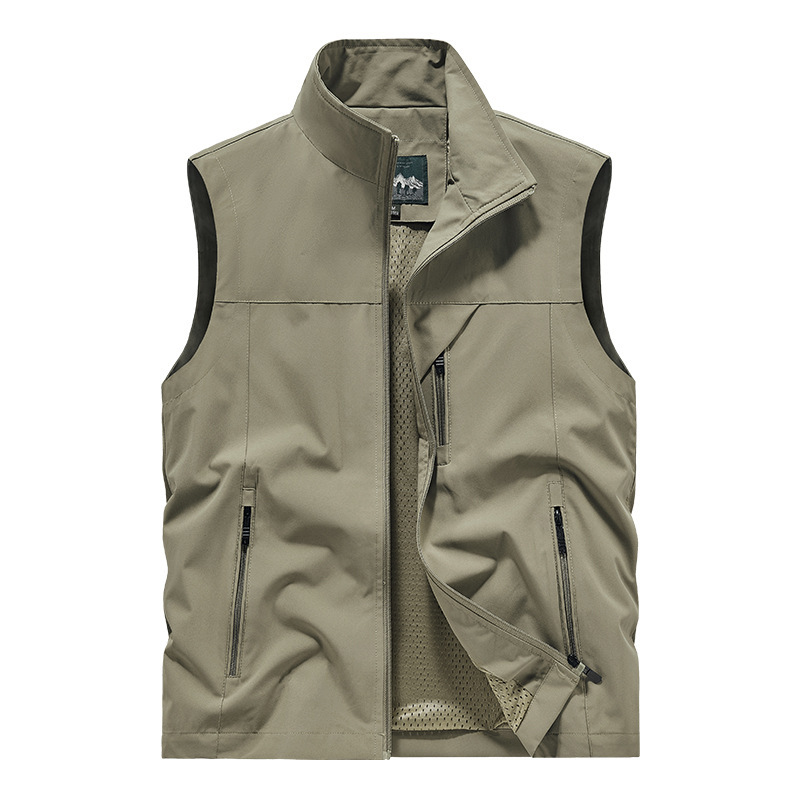 봄과 여름 폴리 에스터 크로스 보더 조끼 캐주얼 남성 스탠드 칼라 멀티 포켓 작업복 탑 야외 사진 낚시 조끼 재킷