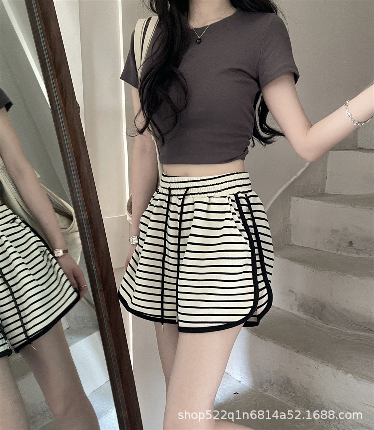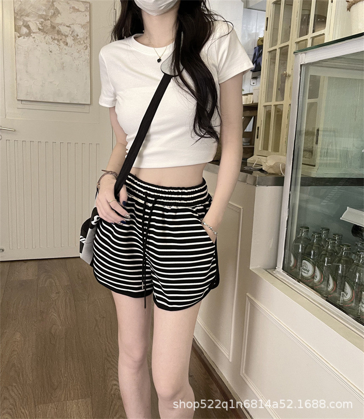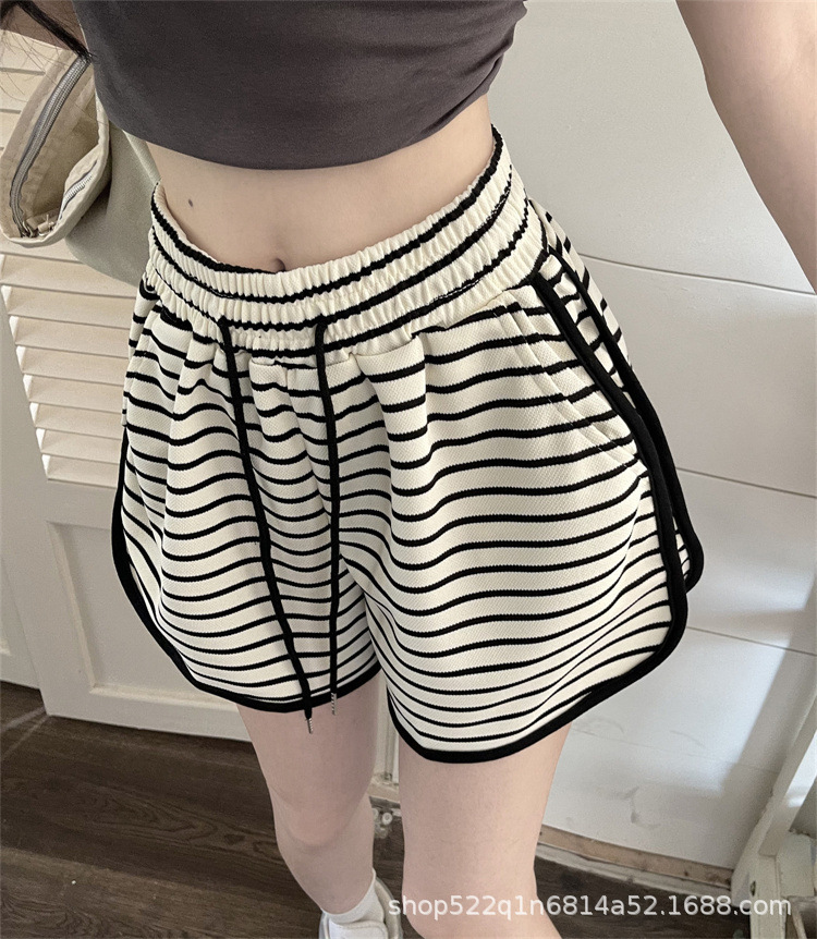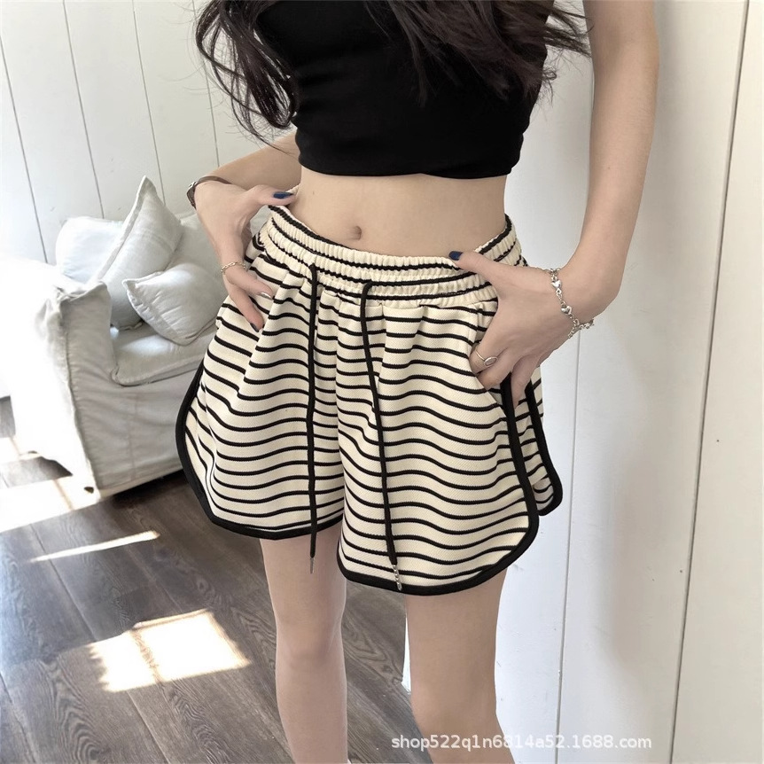 스트라이프 스포츠 반바지 여자 여름 새로운 높은 허리 느슨한 슬리밍 통통녀 플러스 사이즈 트리플 바지 캐주얼 핫 팬츠