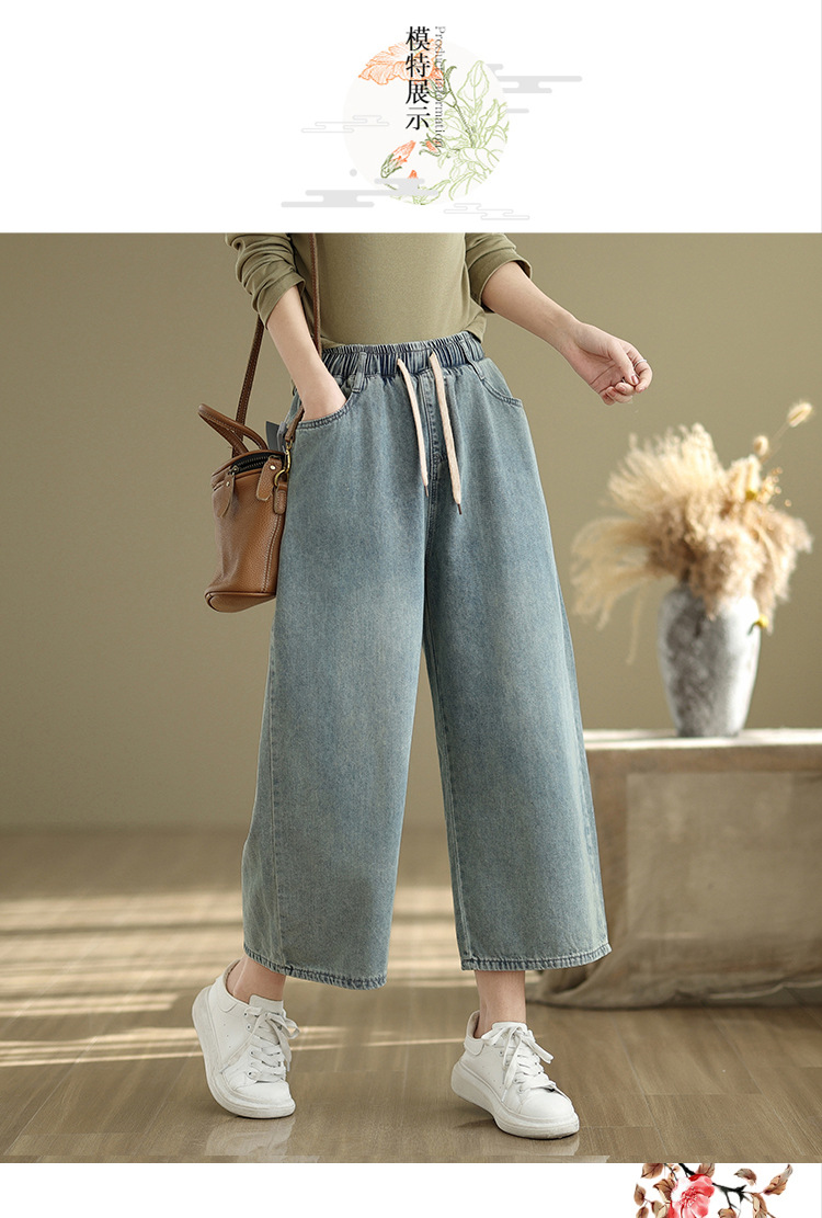 2025 봄 여름 신상 대형 루즈 캐주얼 데님 와이드 팬츠 여성복스토어 가기
