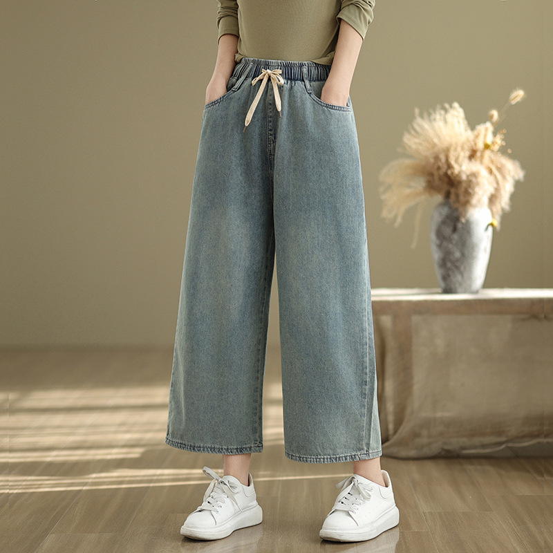 2025 봄 여름 신상 대형 루즈 캐주얼 데님 와이드 팬츠 여성복