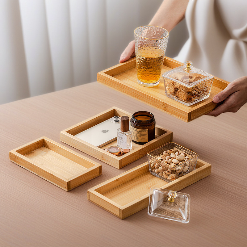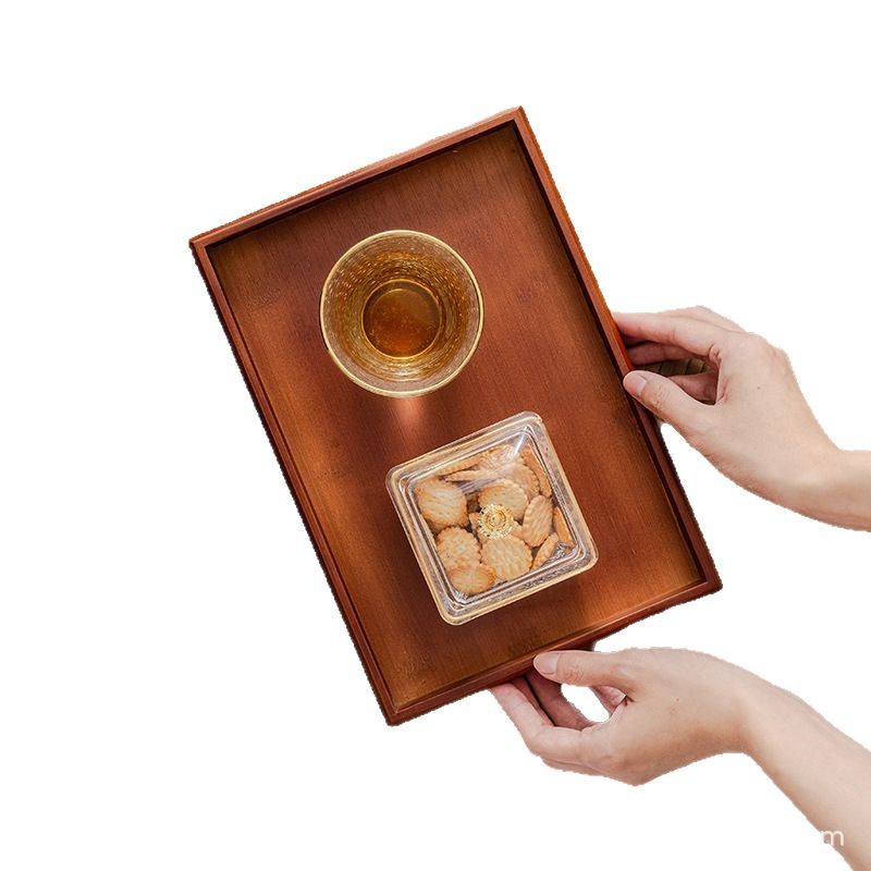 대나무 차 트레이 직사각형 상업용 가정용 차 컵 대나무 물 컵 보관 일본식 간단한 대형 접시