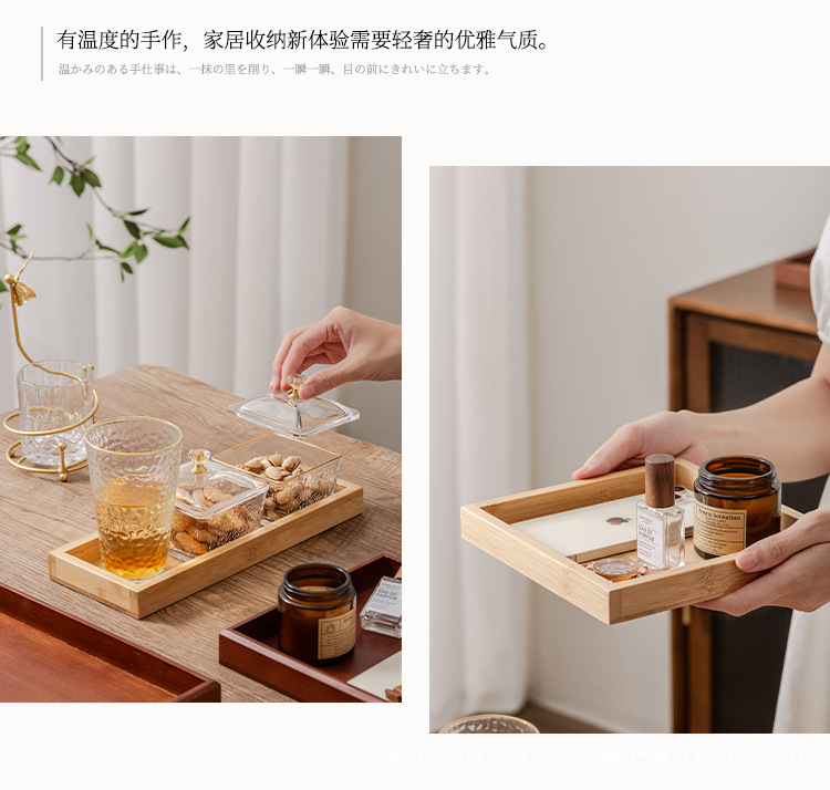 대나무 차 트레이 직사각형 상업용 가정용 차 컵 대나무 물 컵 보관 일본식 간단한 대형 접시스토어 가기