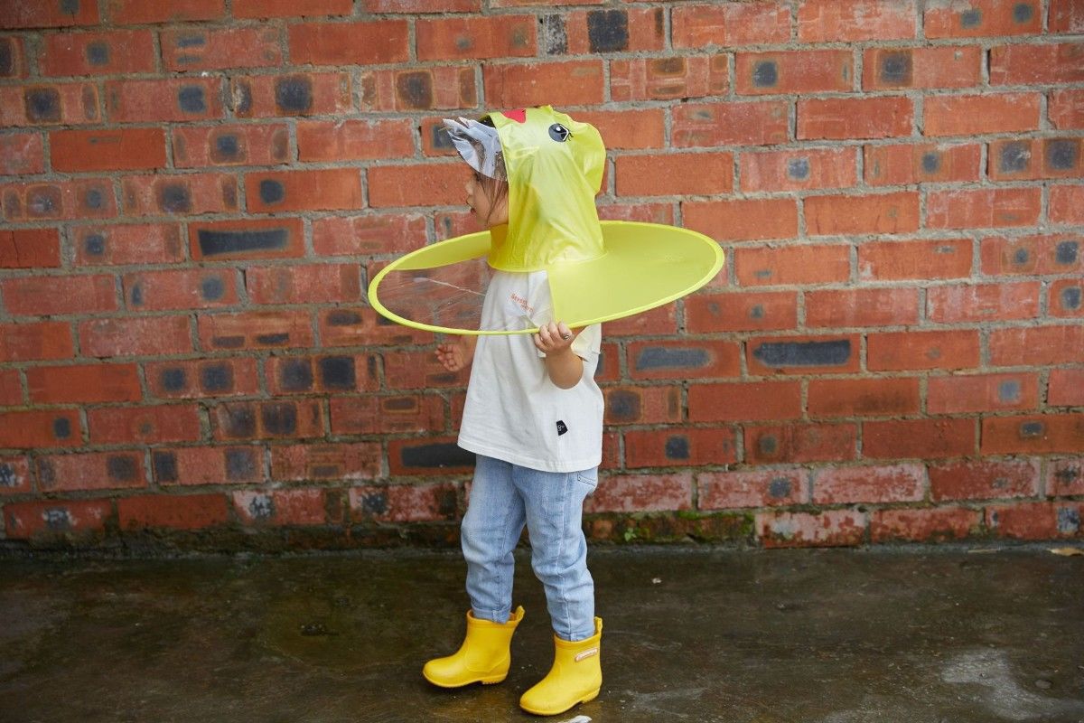 작은 노란색 오리 비옷 어린이 비행 접시 만화 아기의 케이프 우산 어린이 비 신발 세트 판초 학생 리스토어 가기