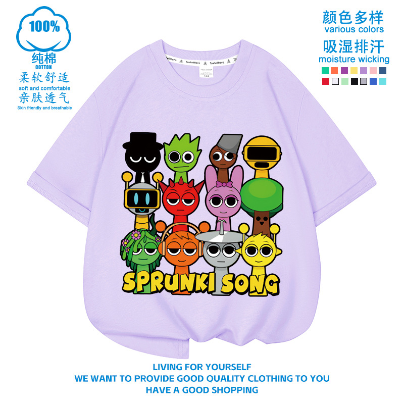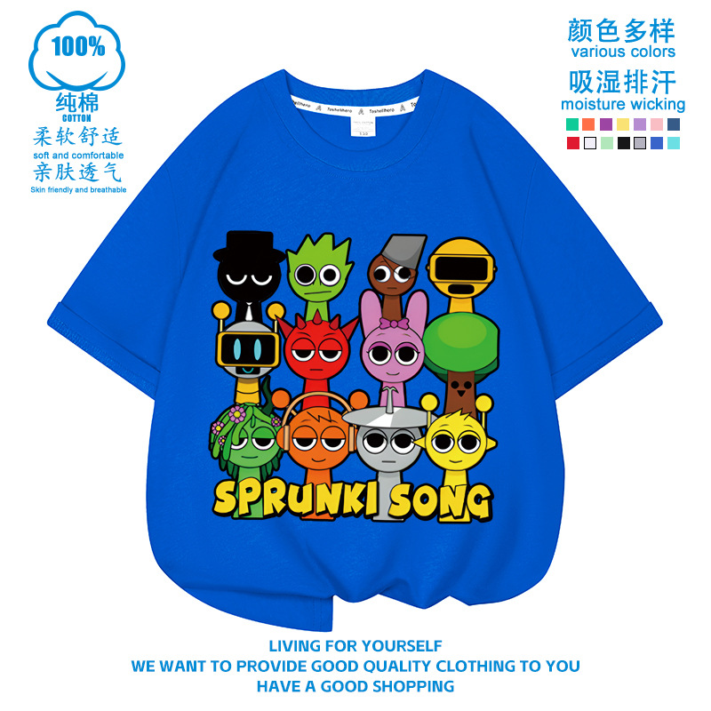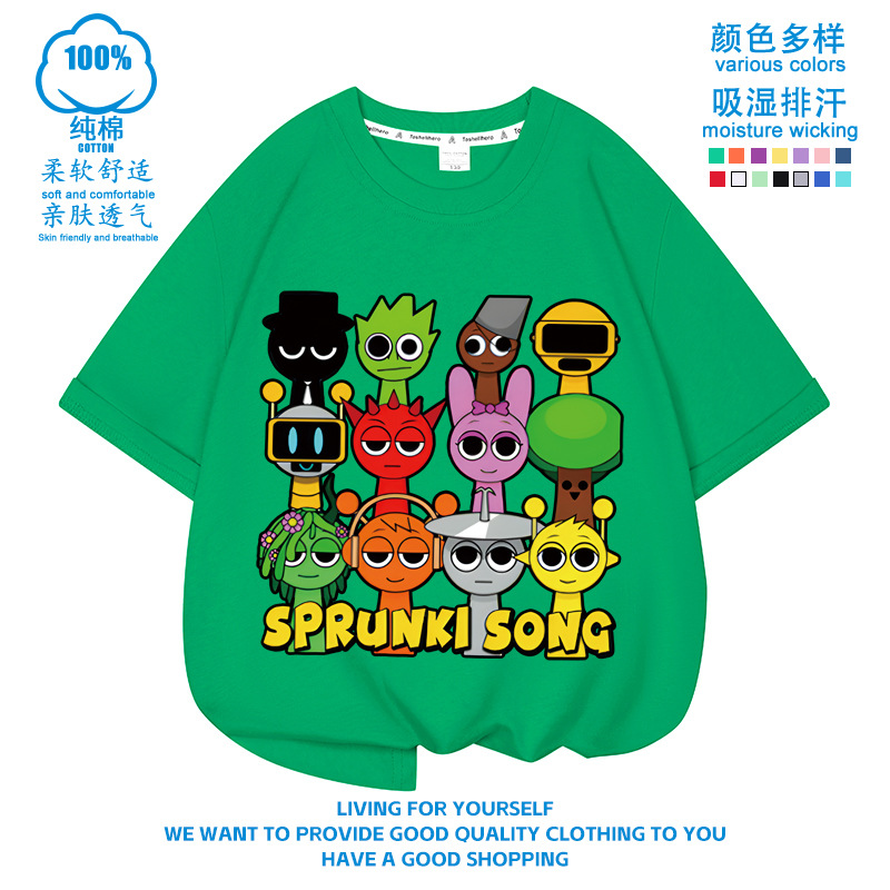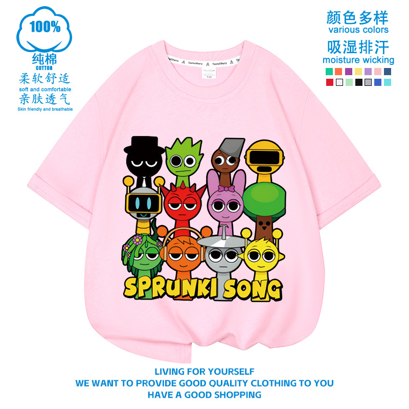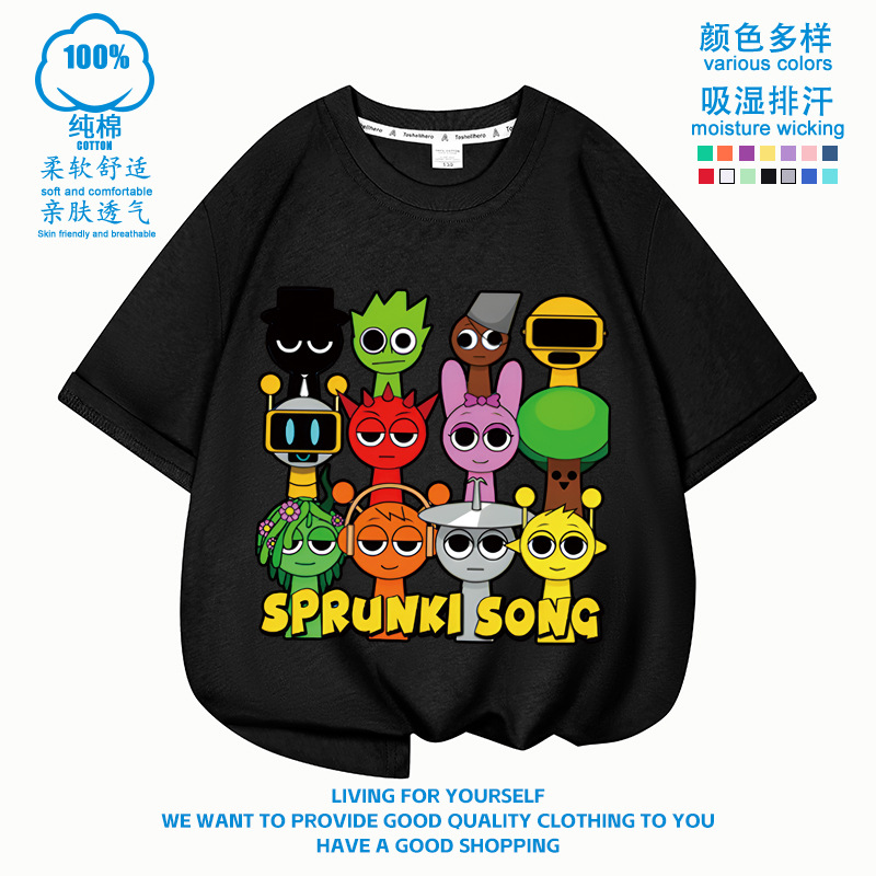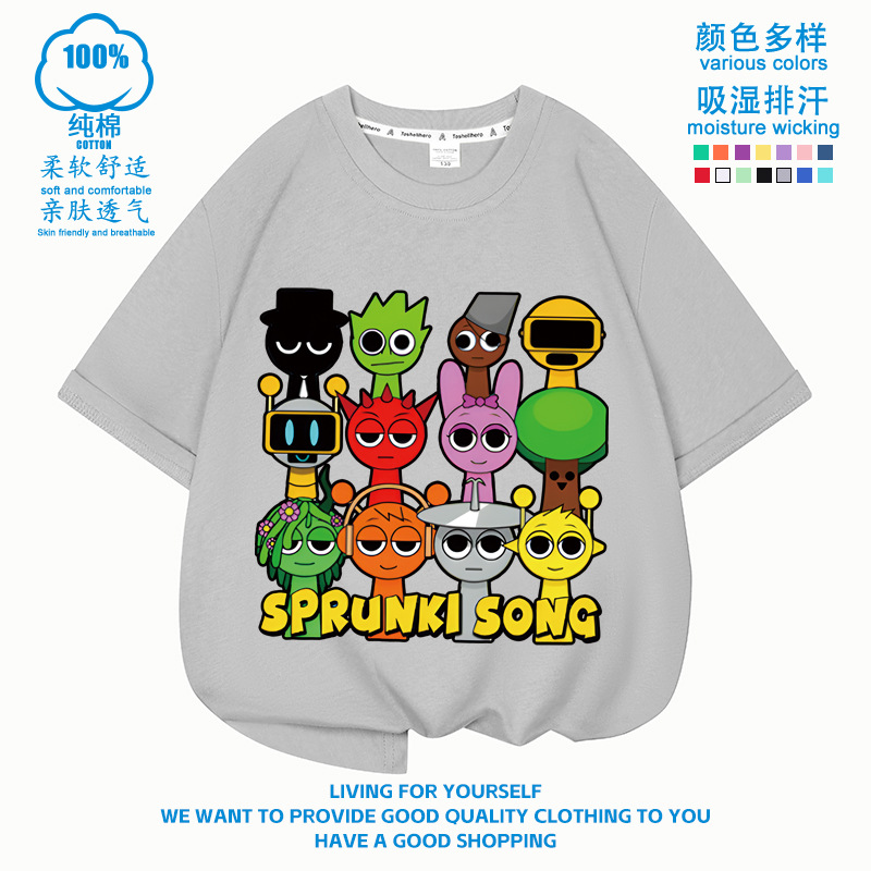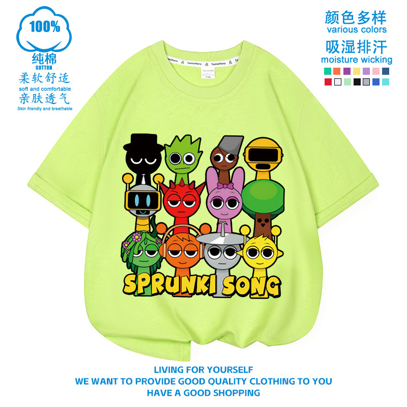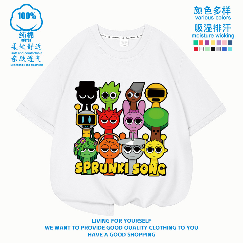 스프런키 리듬박스 아동용 반팔! 순면 트렌디 프린트 여름 티셔츠(남아 및 여아용)스토어 가기