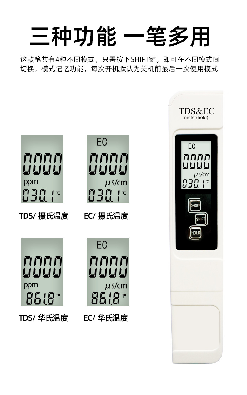 대외 무역 3-in-one tds 펜 ec 전도도 검출기 수질 테스트 펜 가정용 Wanbang tds 수질 테스트 펜