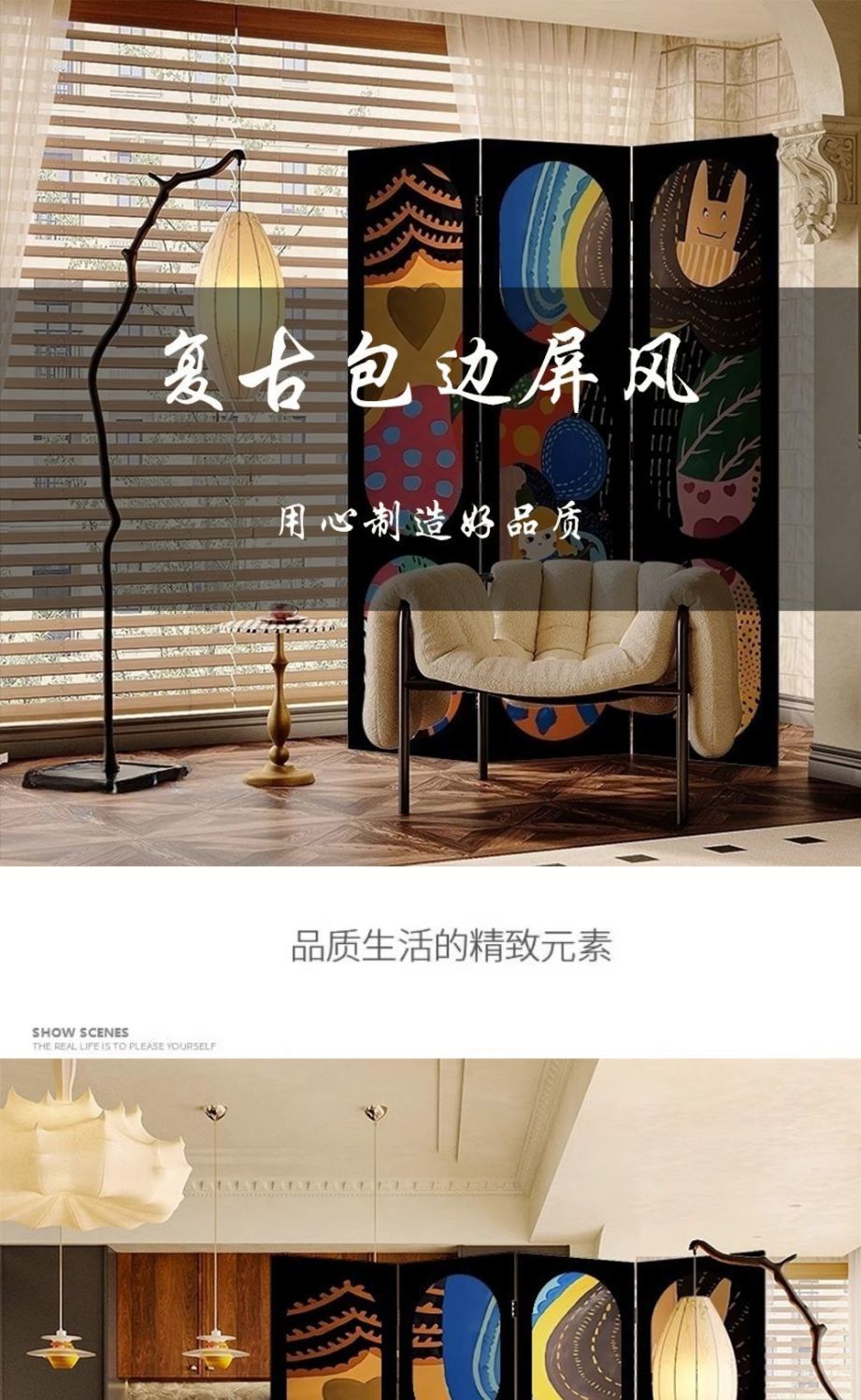 도파민 프렌치 레트로 라이트 럭셔리 스크린 파티션 거실 침실 입구 작은 아파트 대피소 모바일 장식 접이식 화면스토어 가기