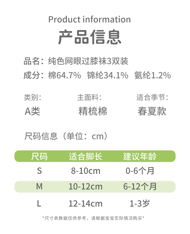 아기 스타킹 봄 단색 신생아 무릎 위 뼈없는 여름 얇은 아기 긴 다리면 양말 카테고리 A