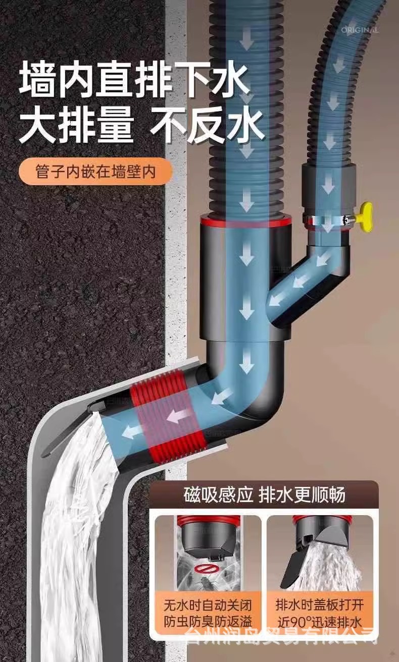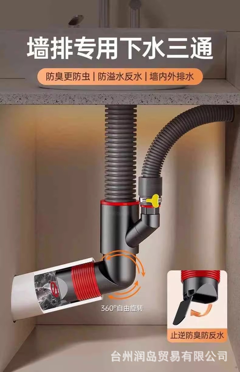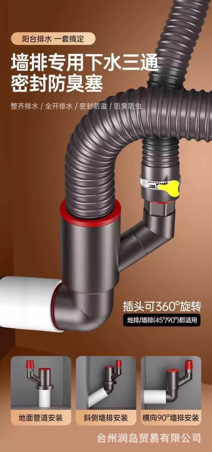 범용 45도 벽 배수 3방향 특수 배수관 세탁기 탈취제 커넥터 2-in-1 밀봉 역방향 밸브