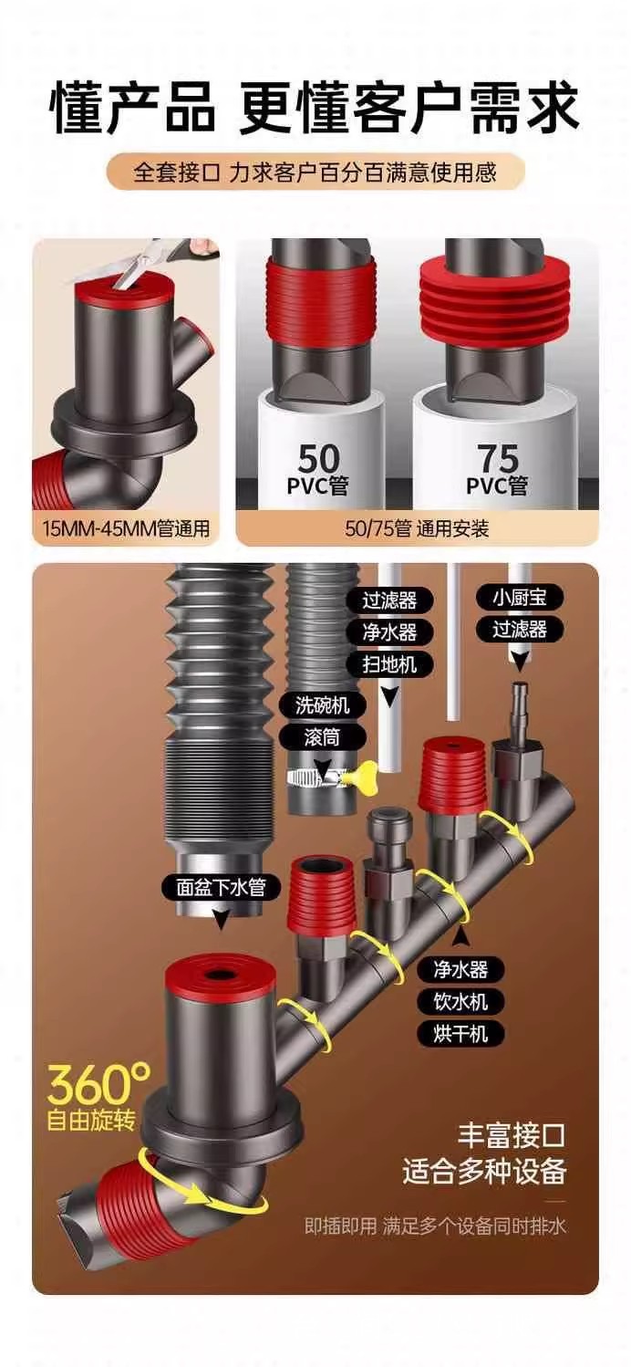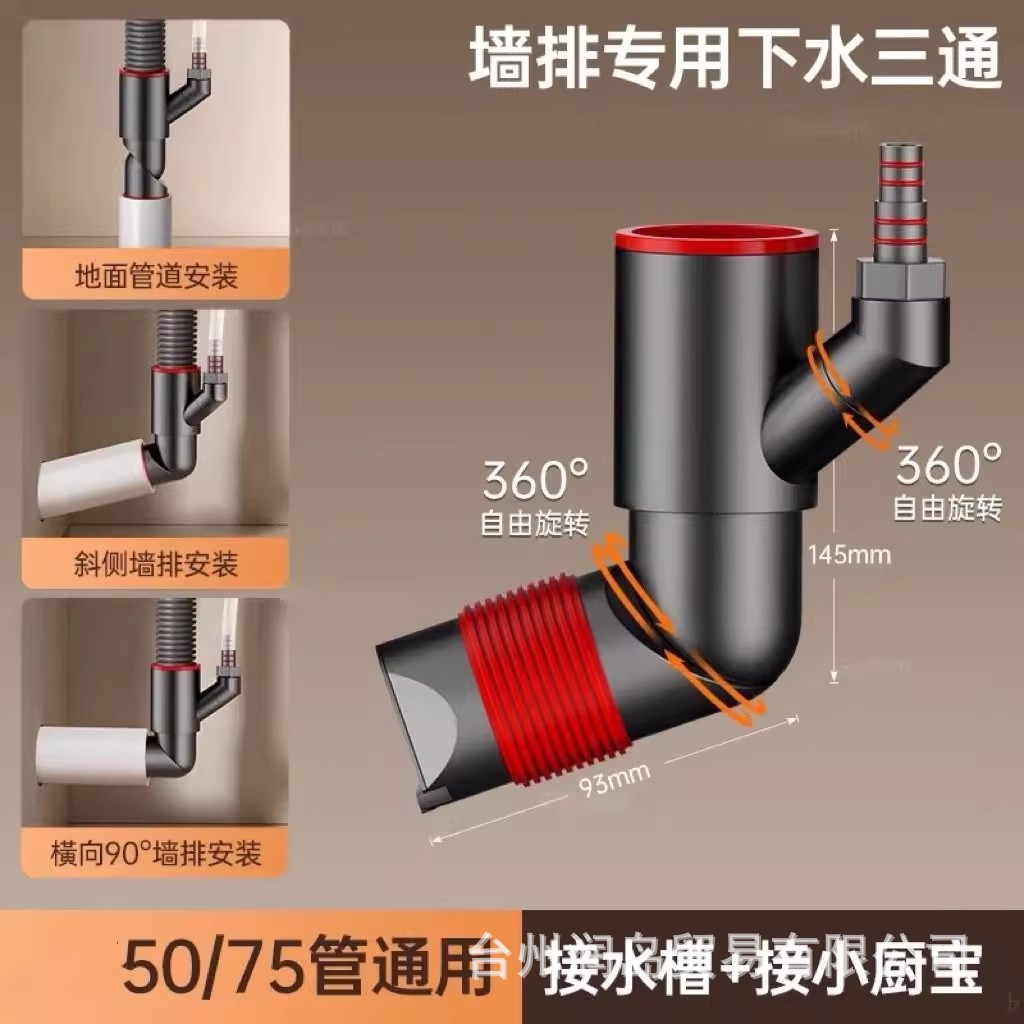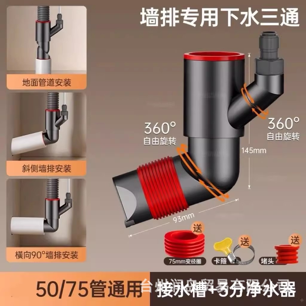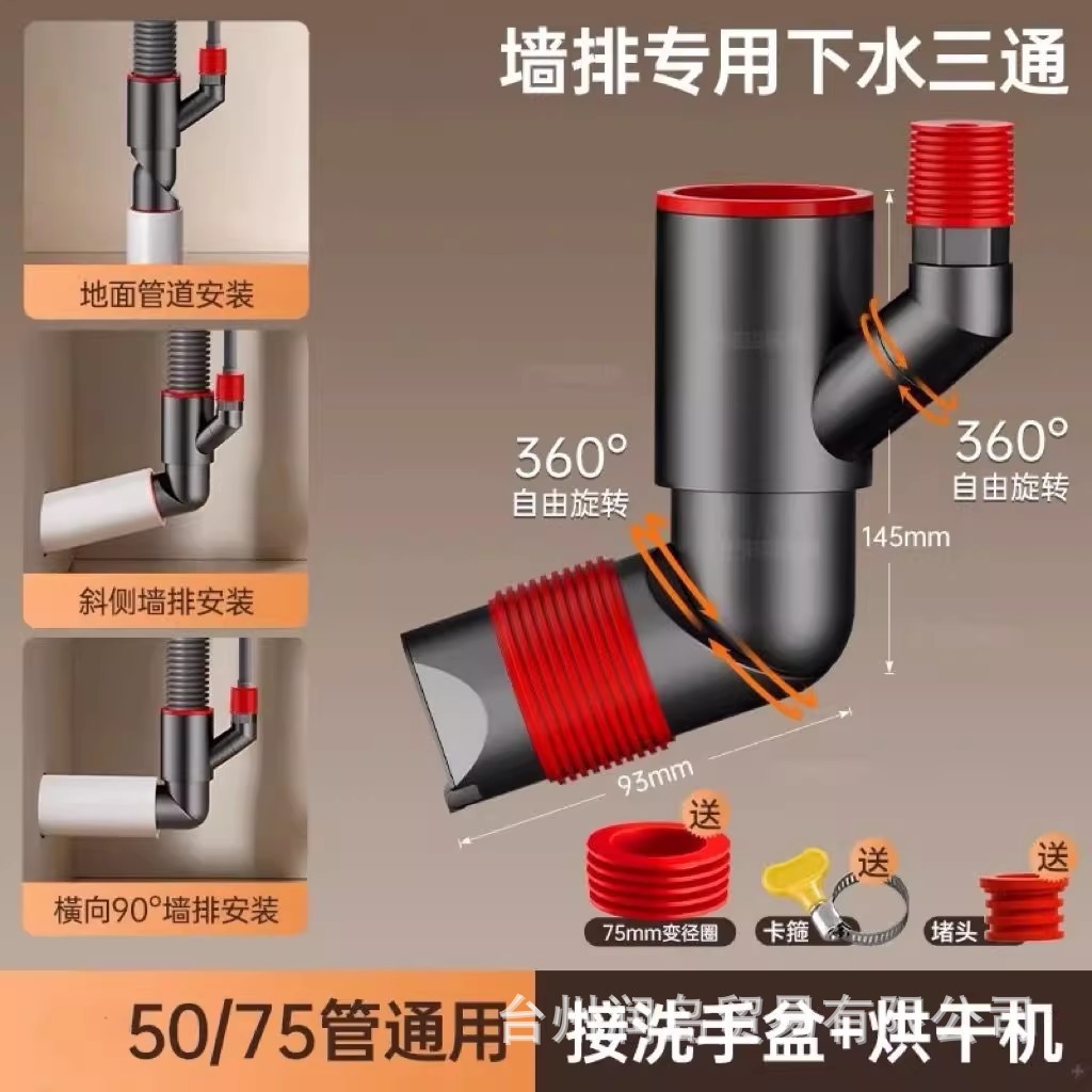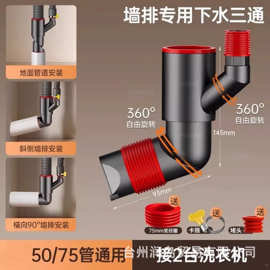 범용 45도 벽 배수 3방향 특수 배수관 세탁기 탈취제 커넥터 2-in-1 밀봉 역방향 밸브스토어 가기