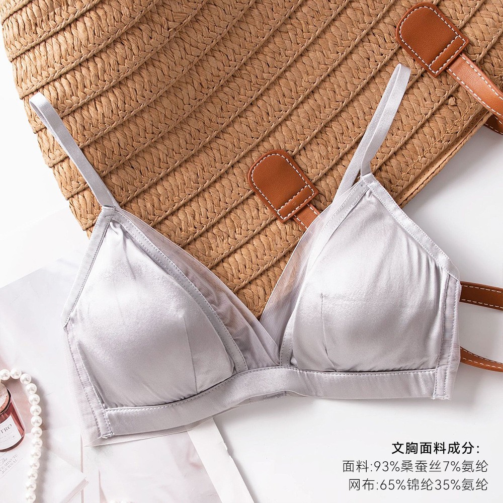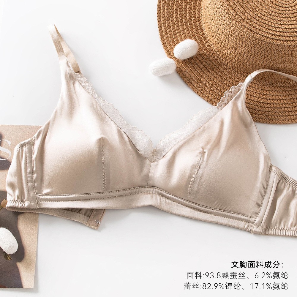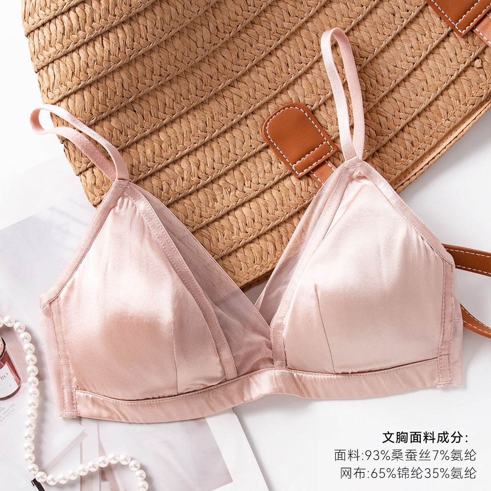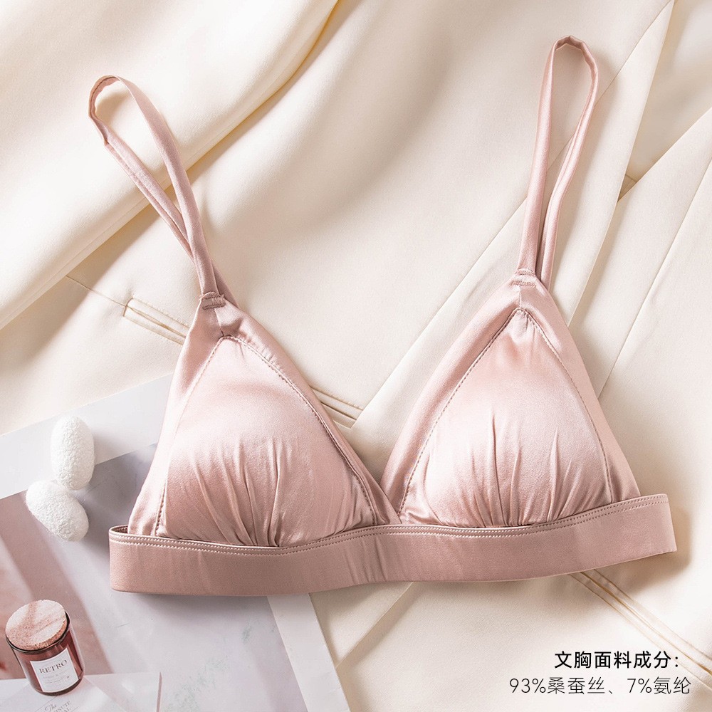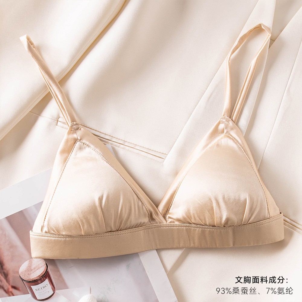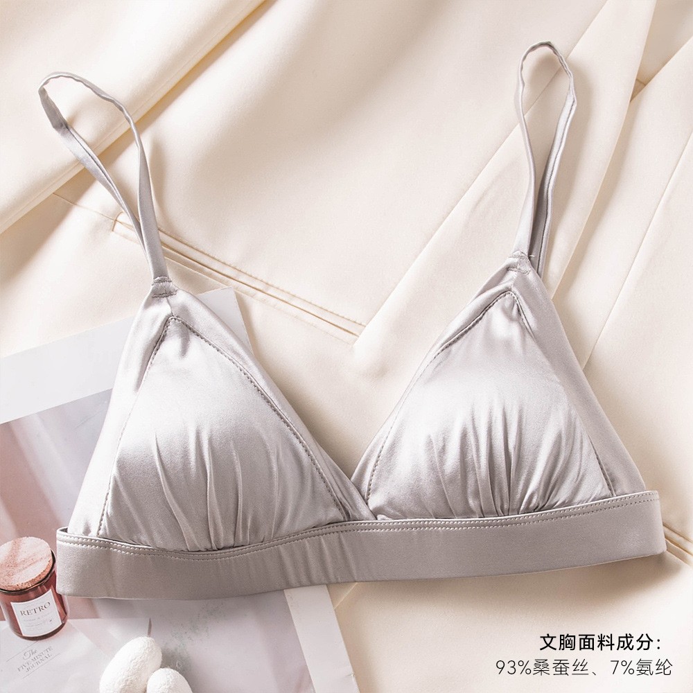실크 플로잉 트라이앵글 컵 브라, 새틴 19mm 뽕나무 실크, 편안한 푸쉬업, 봄여름 누드 느낌, 노와이어