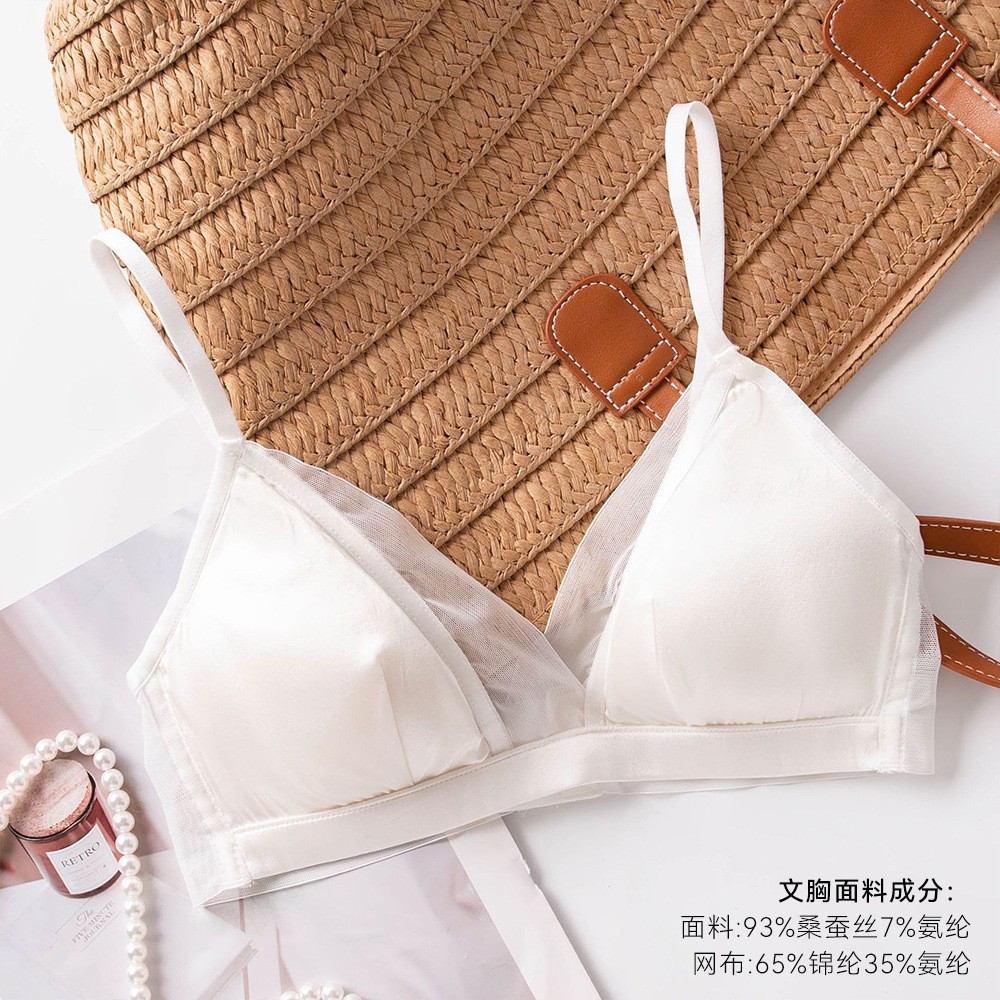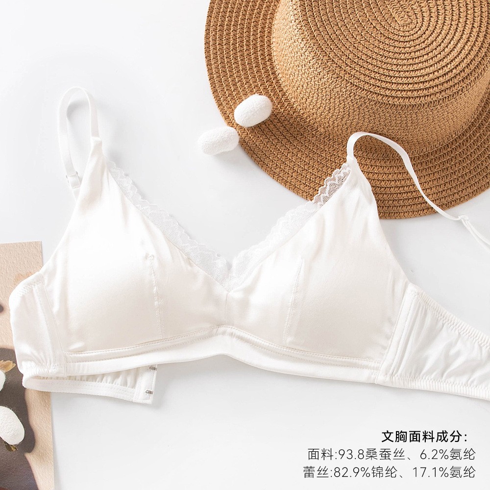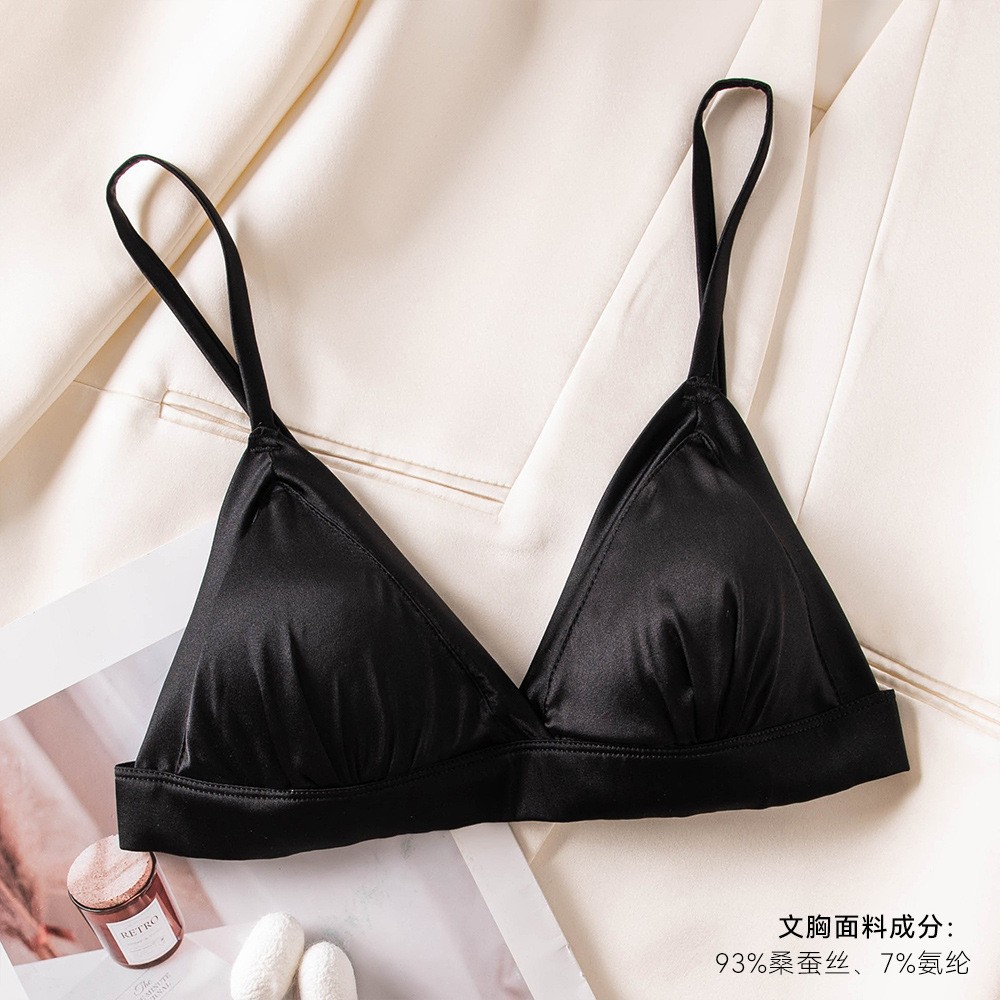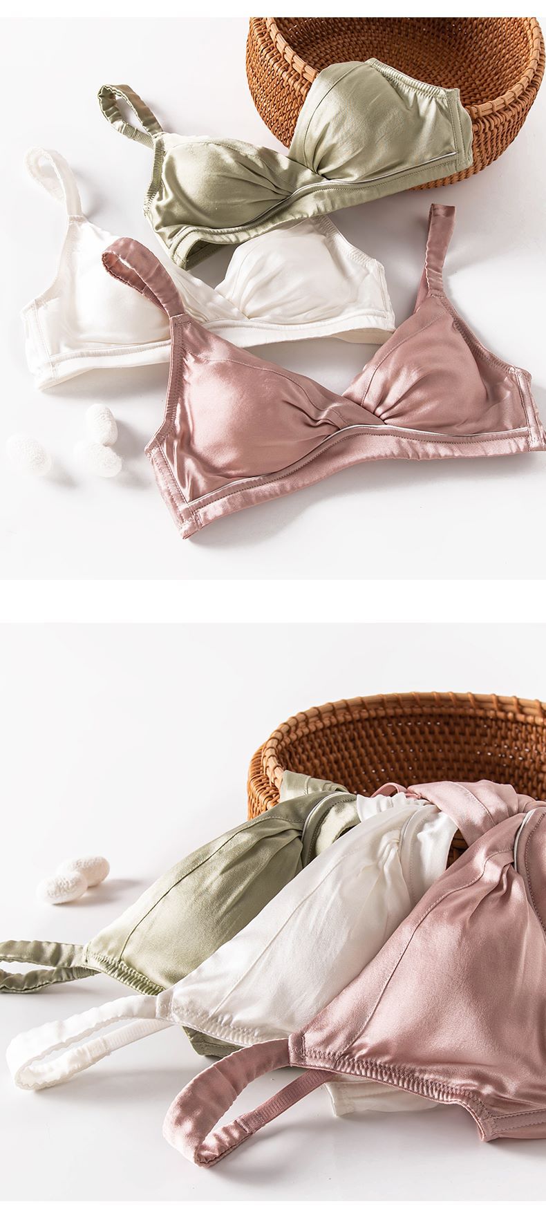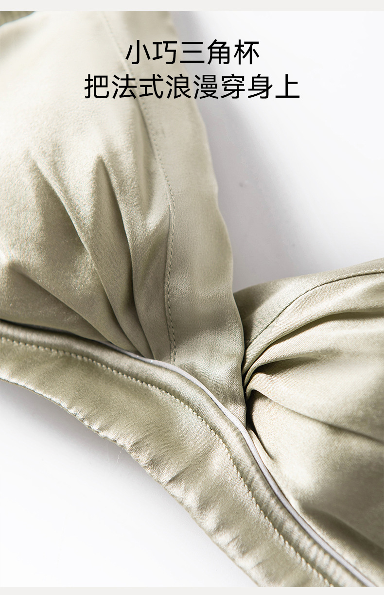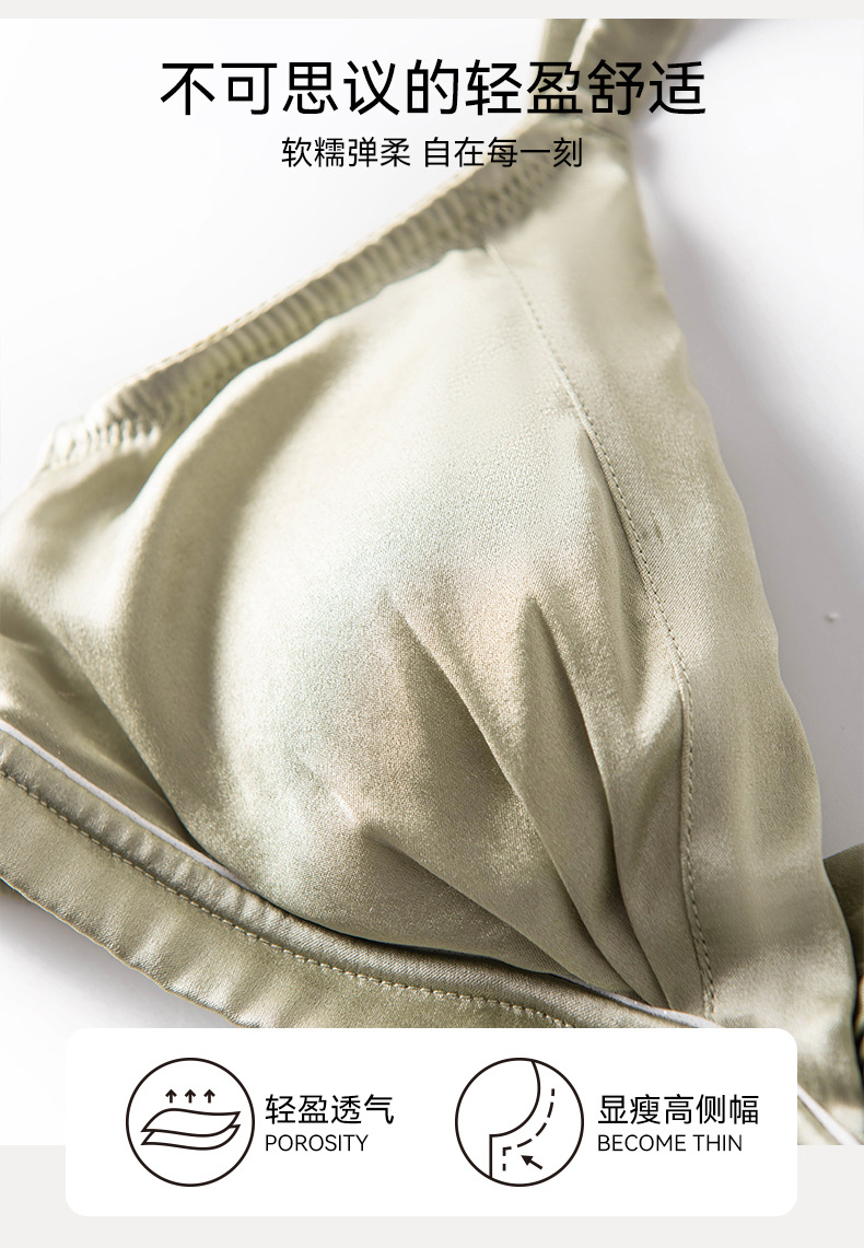 실크 플로잉 트라이앵글 컵 브라, 새틴 19mm 뽕나무 실크, 편안한 푸쉬업, 봄여름 누드 느낌, 노와이어