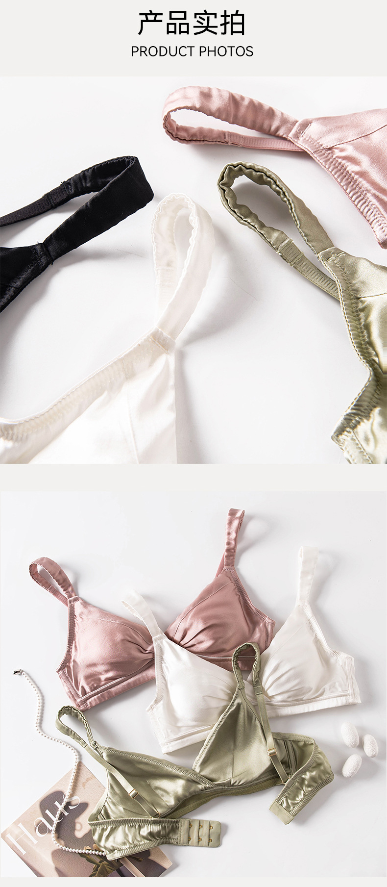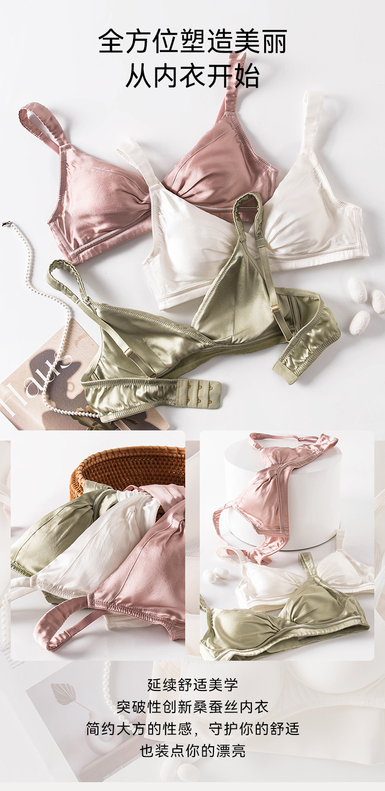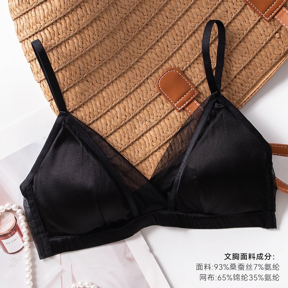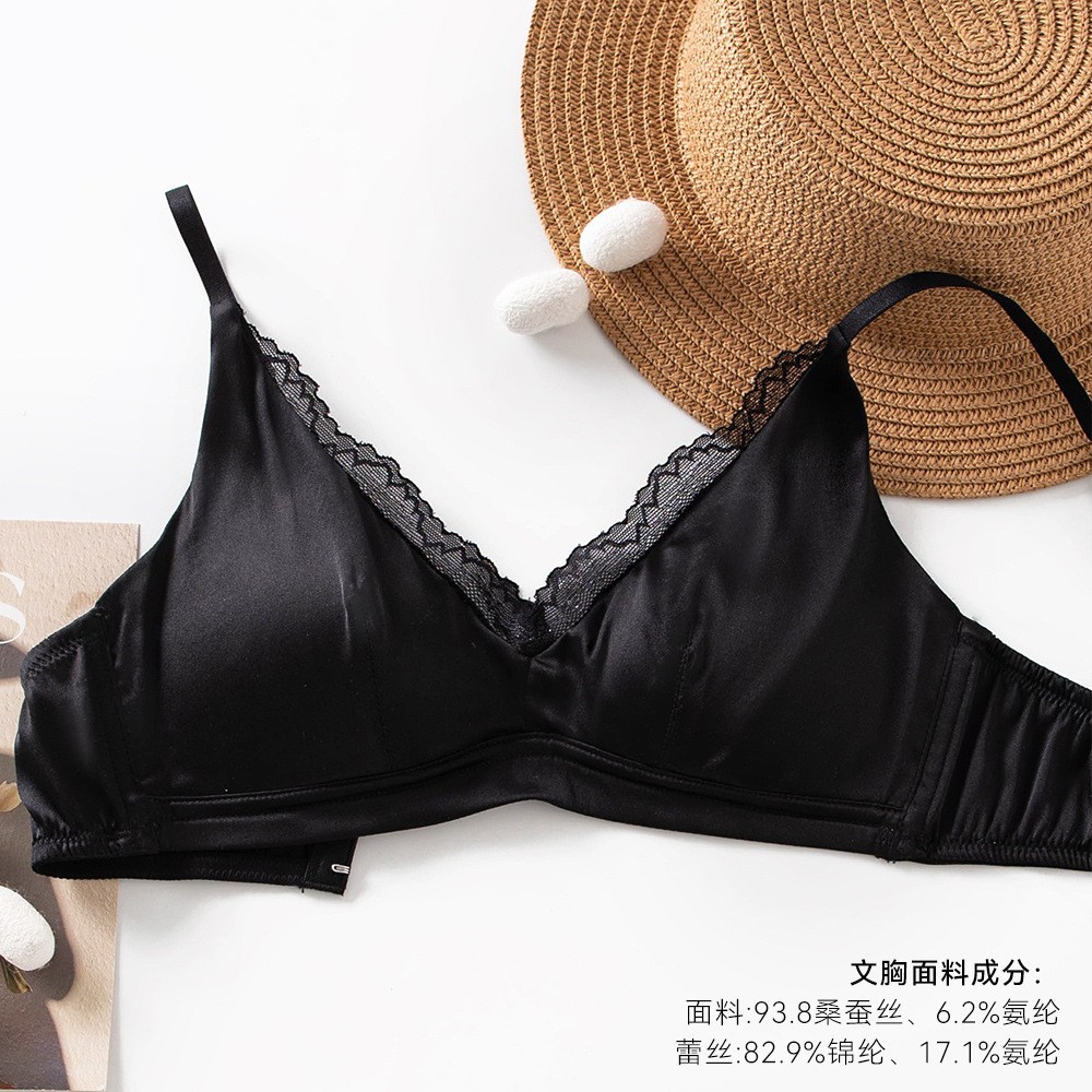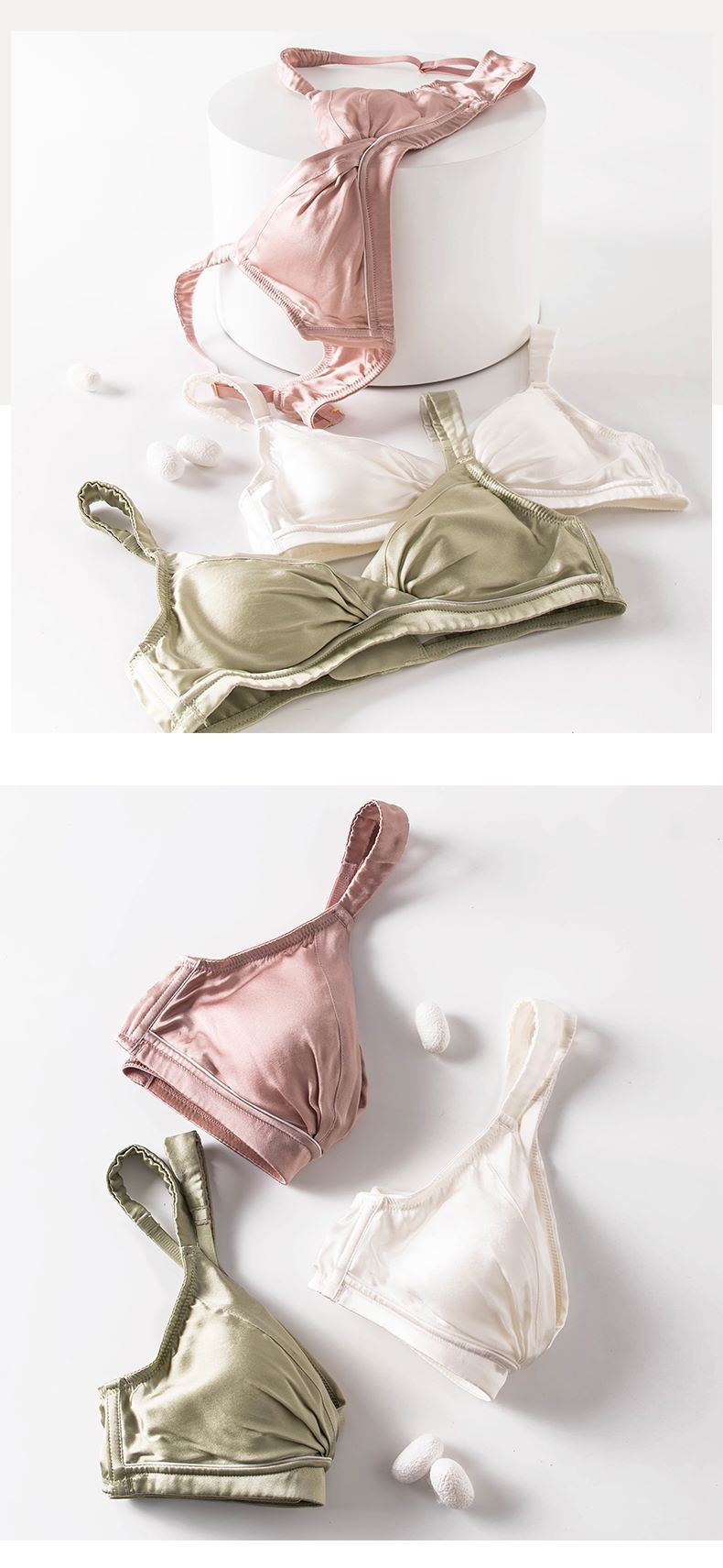 실크 플로잉 트라이앵글 컵 브라, 새틴 19mm 뽕나무 실크, 편안한 푸쉬업, 봄여름 누드 느낌, 노와이어