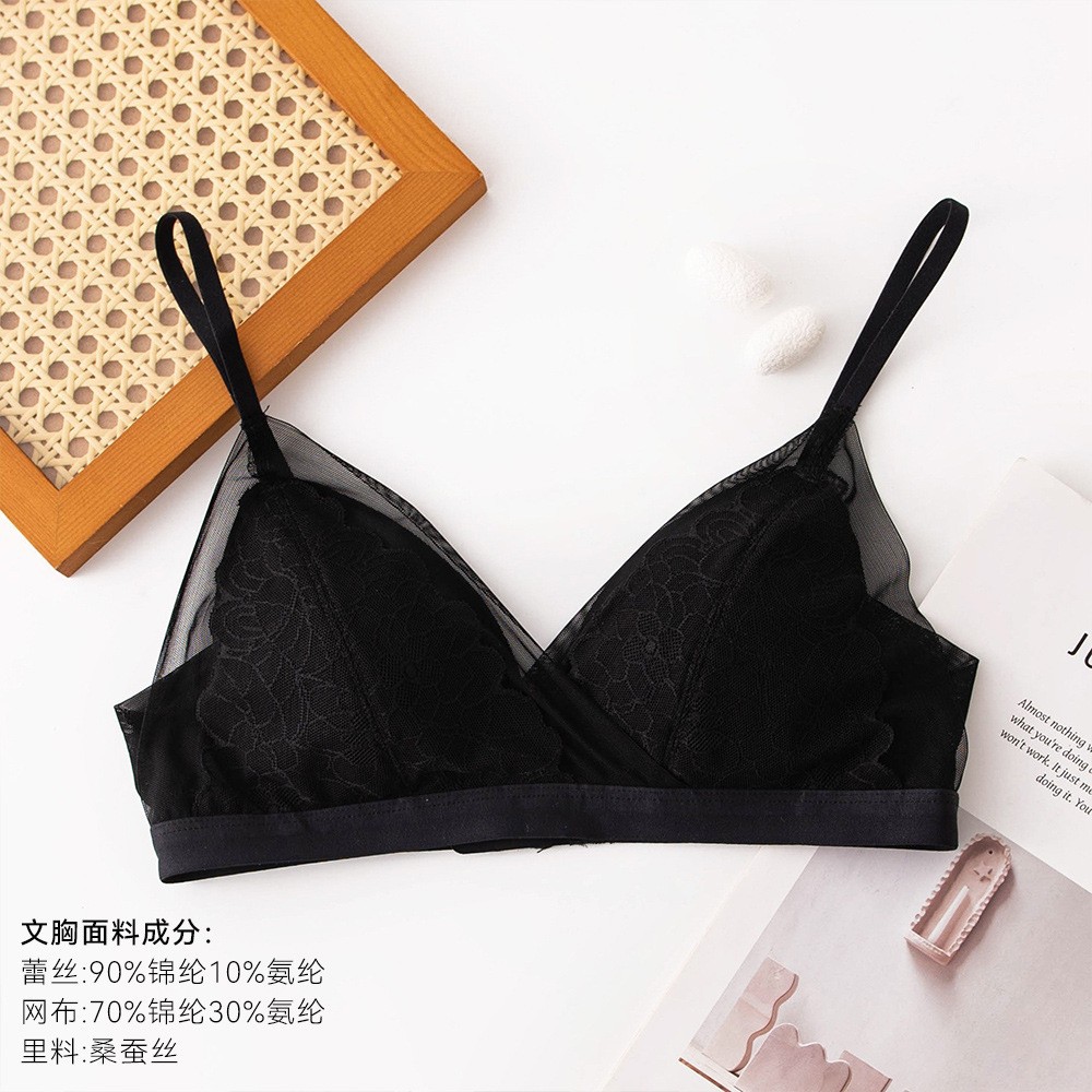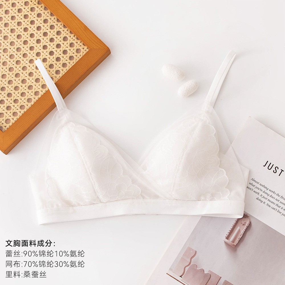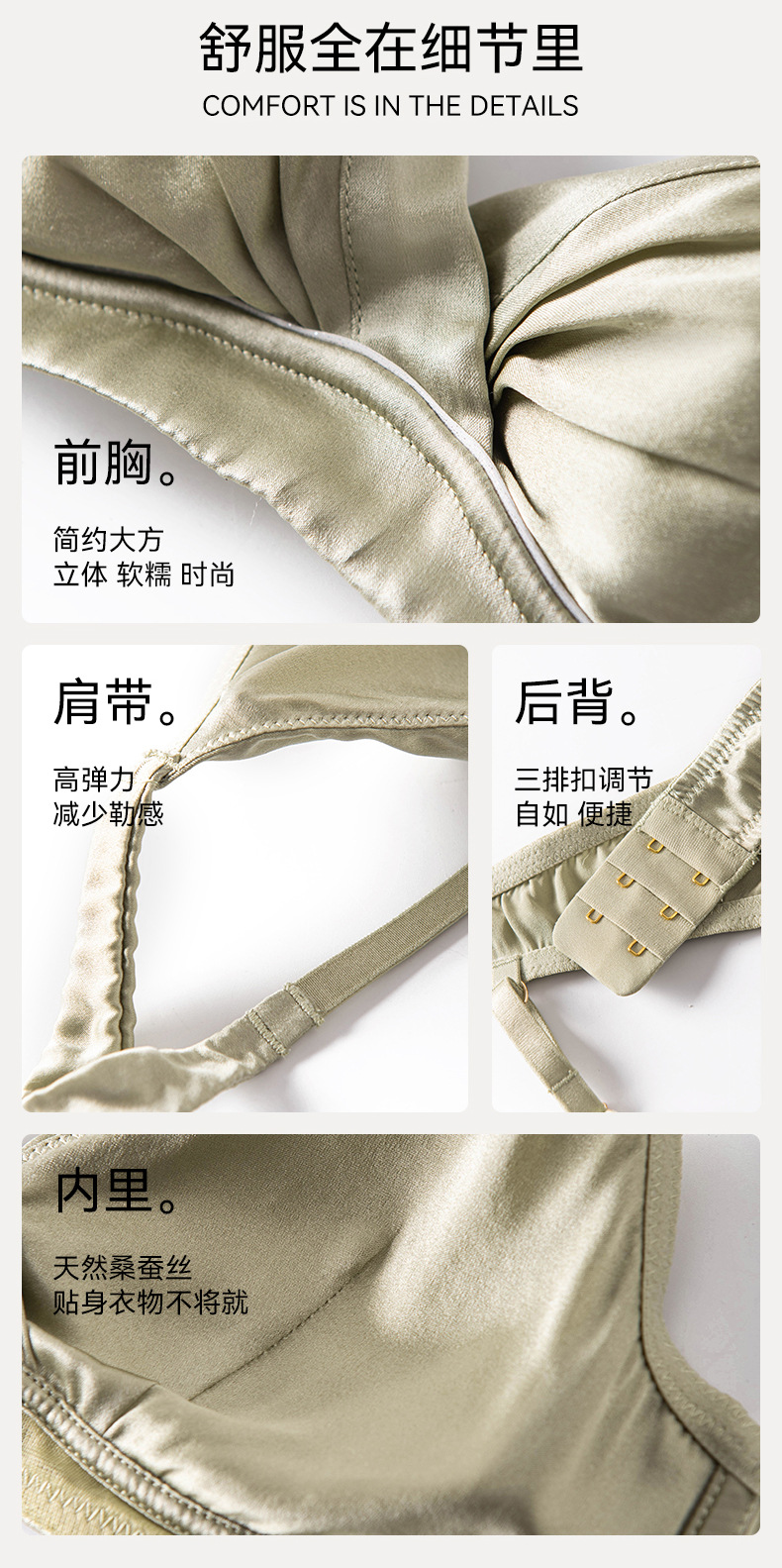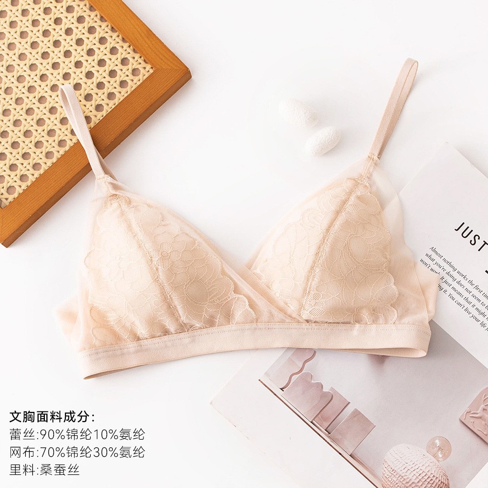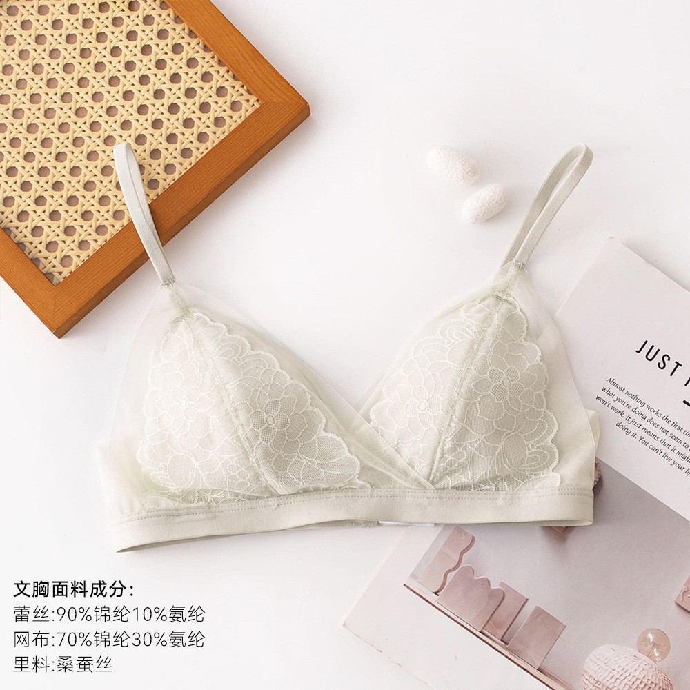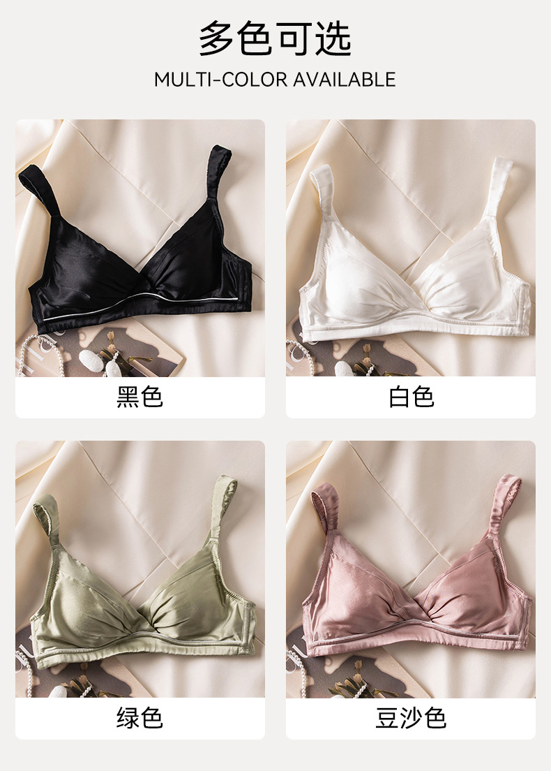 실크 플로잉 트라이앵글 컵 브라, 새틴 19mm 뽕나무 실크, 편안한 푸쉬업, 봄여름 누드 느낌, 노와이어