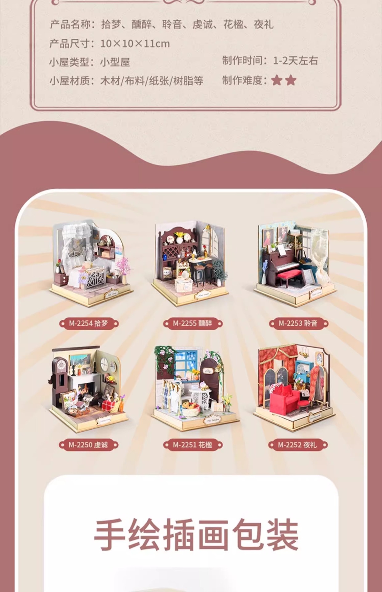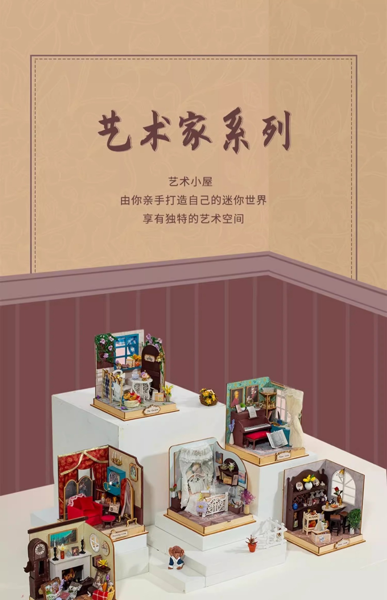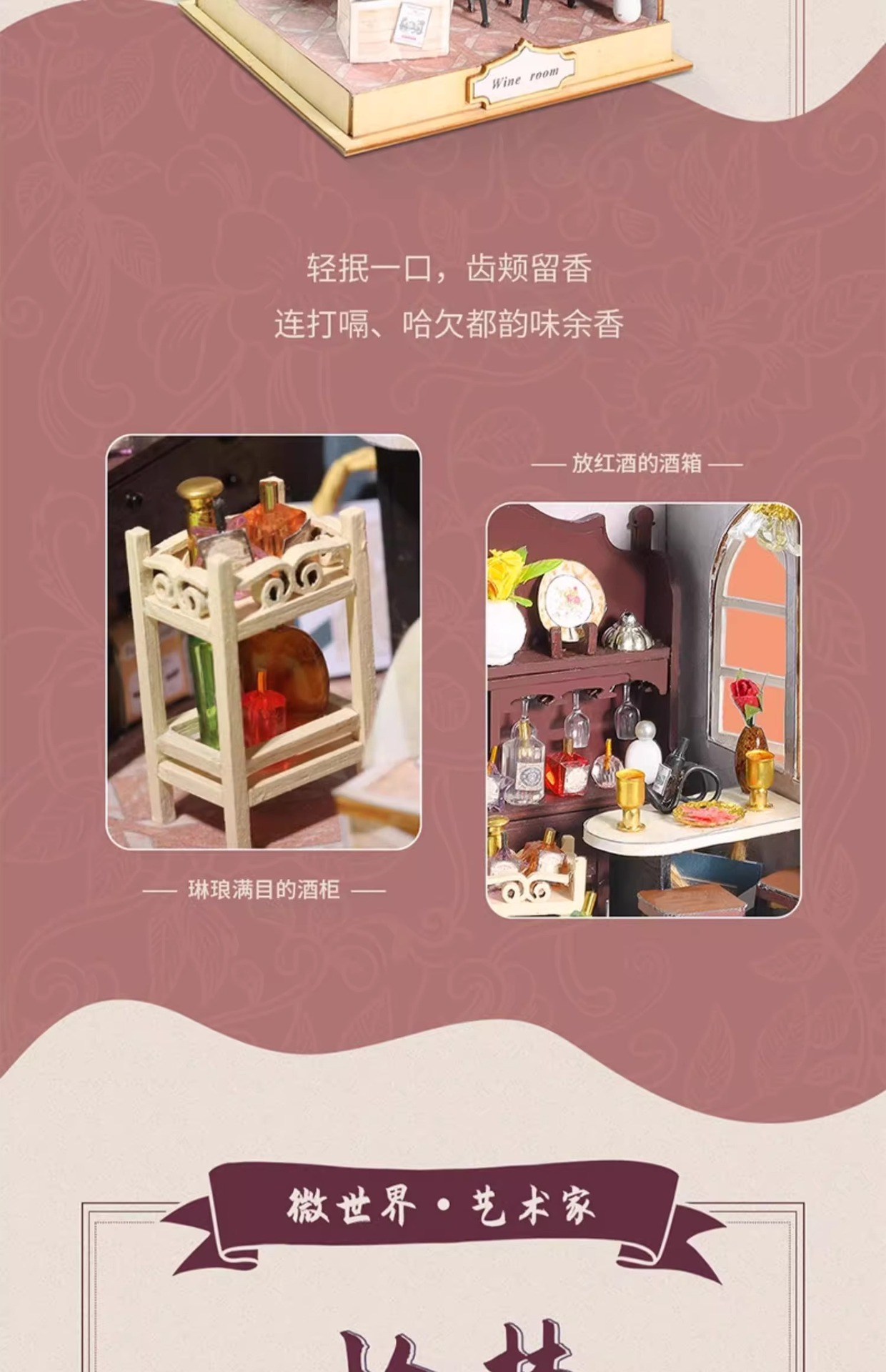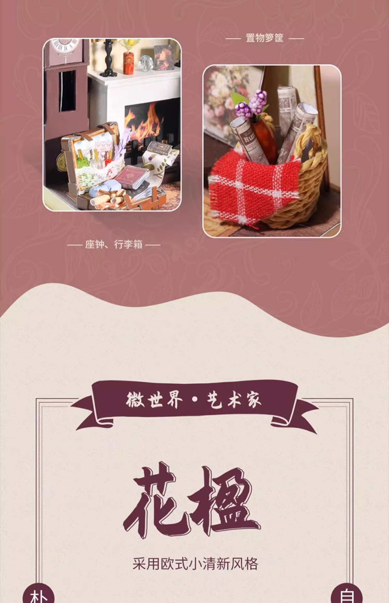 아티스트 유럽 클래식 diy 캐빈 미니 하우스 손으로 조립 된 소형 장면 모델 소녀 생일 선물