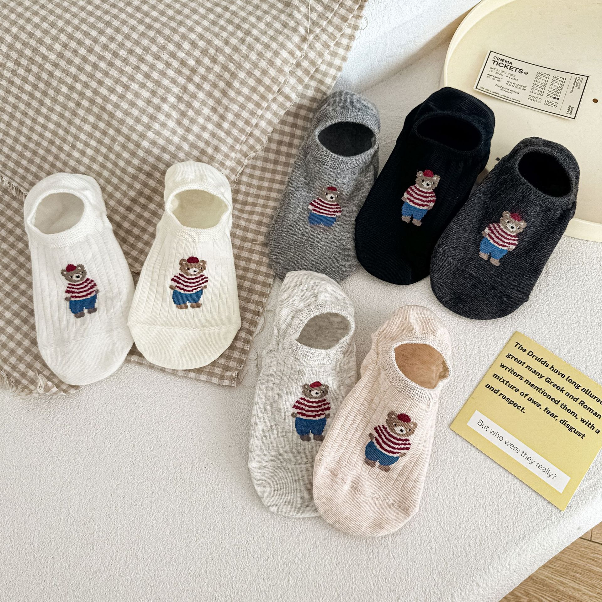 여성용 양말 보트삭스 여름 얇은 면 양말 얕은 입 양말 봄 가을 땀 흡수 방취 투명 실리콘 미끄럼 방지 만화 양말