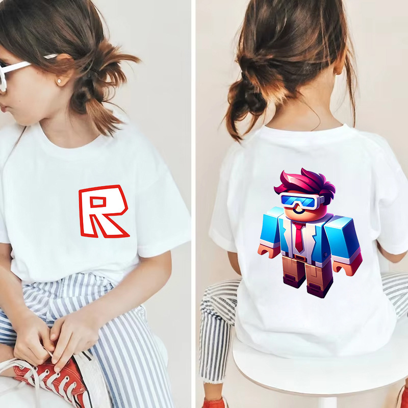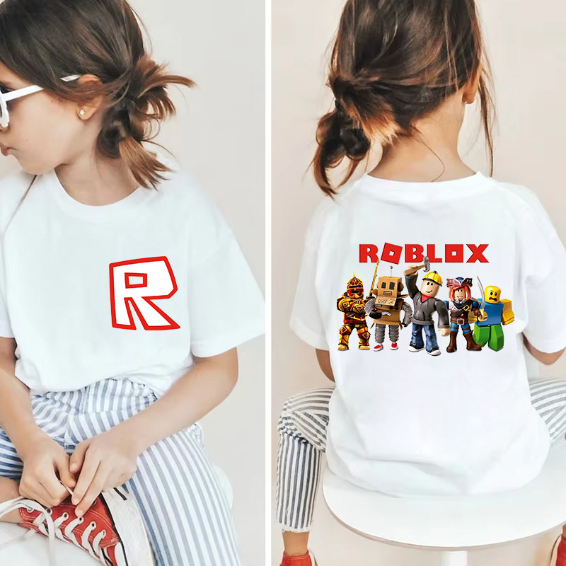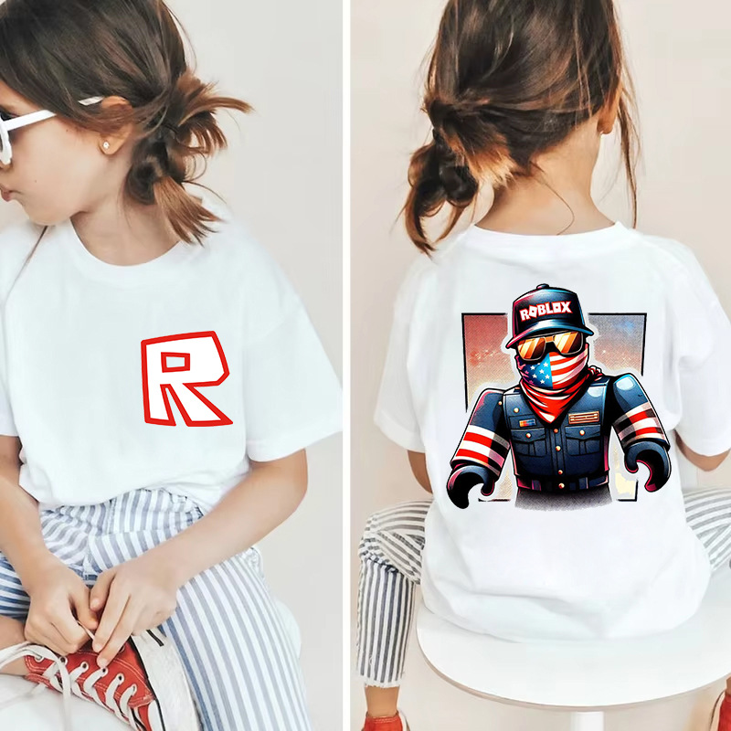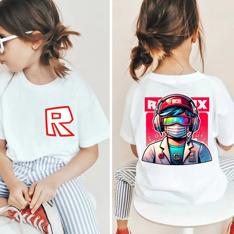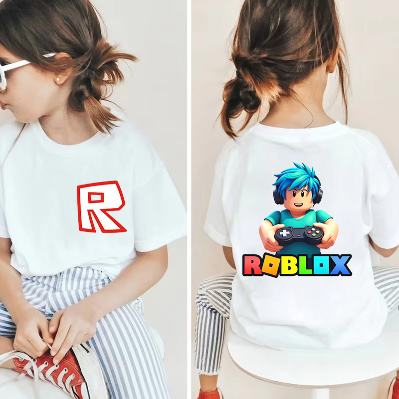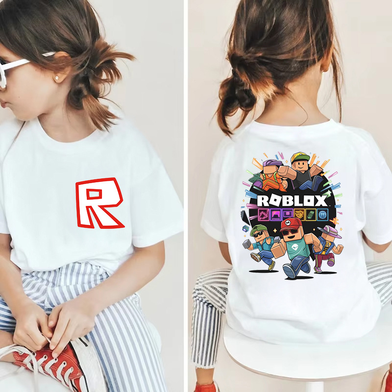 남성과 여성을 위한 국경 간 Roblox 게임 주변기기, 면 티셔츠, 캐주얼 라운드 넥 아동용 여름 상의, 중소형 아동용 반팔