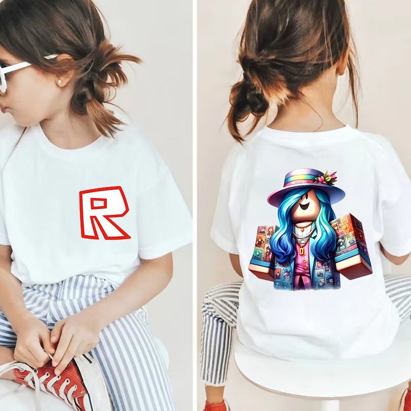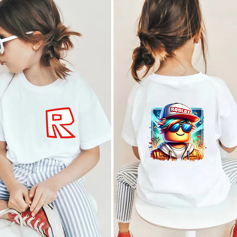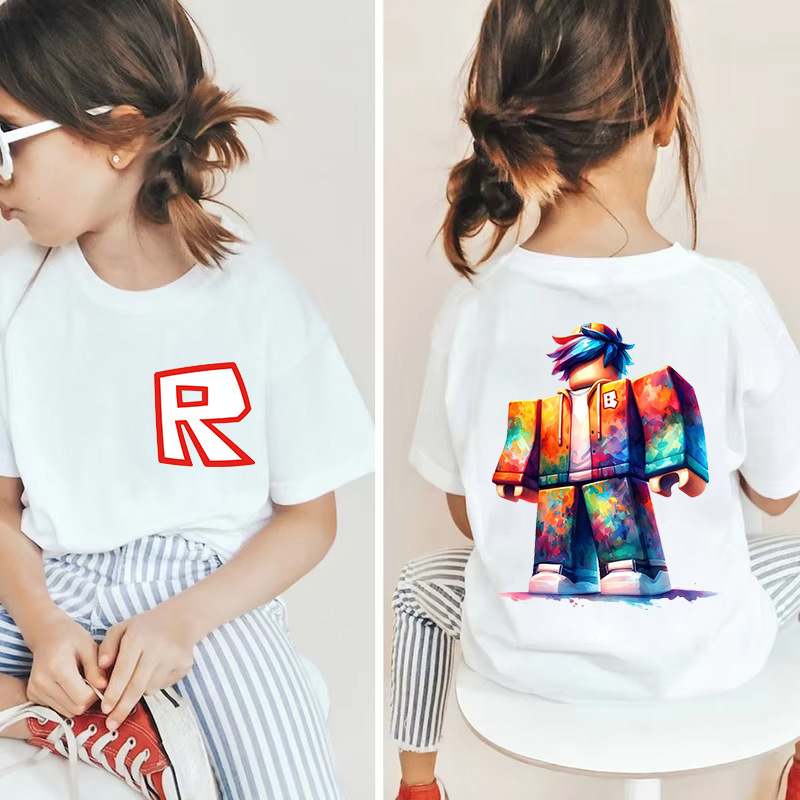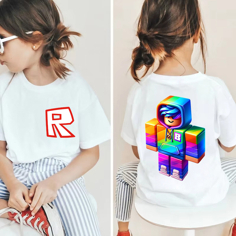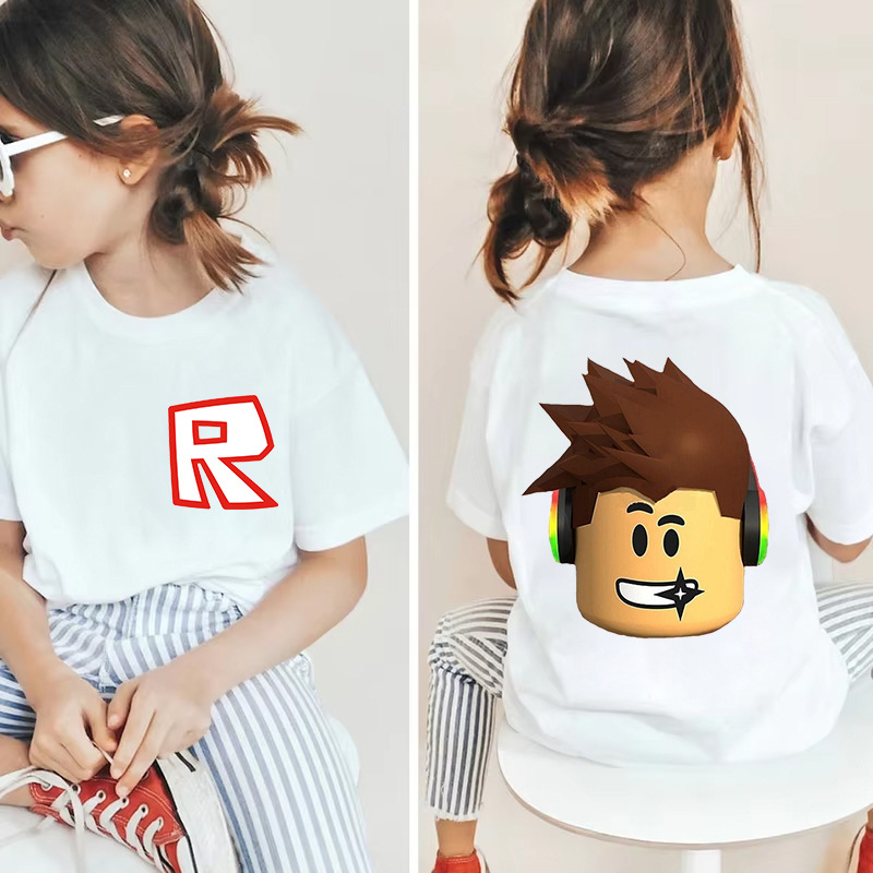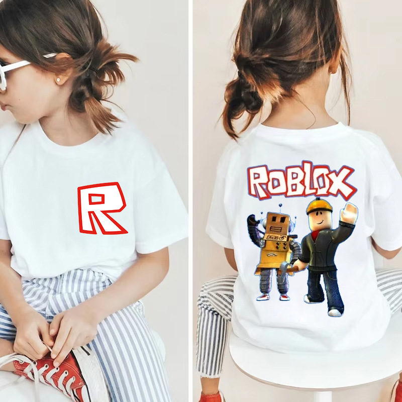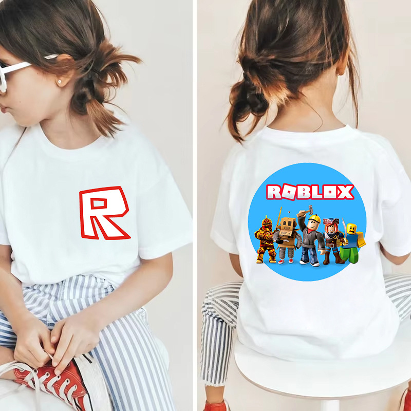 남성과 여성을 위한 국경 간 Roblox 게임 주변기기, 면 티셔츠, 캐주얼 라운드 넥 아동용 여름 상의, 중소형 아동용 반팔