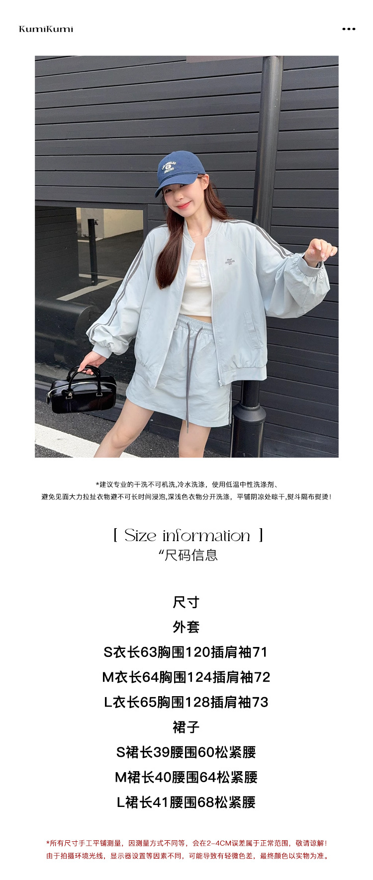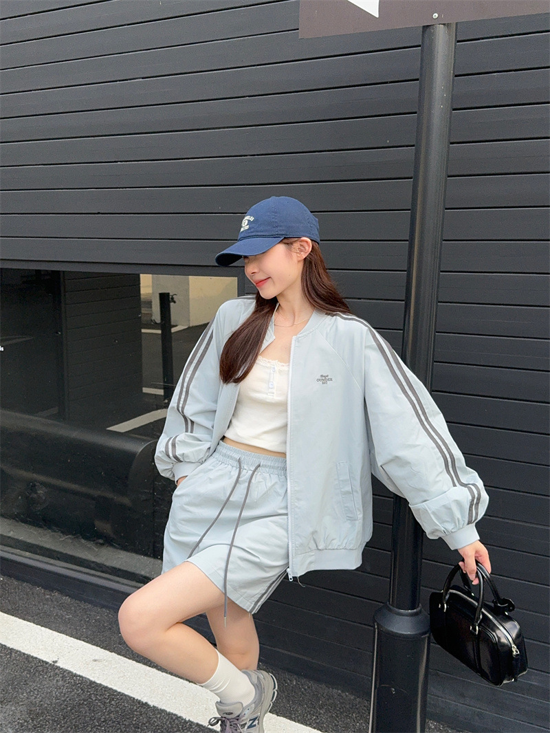 2025 새로운 캐주얼 스포츠 세트 여자 레트로 콘트라스트 야구 세트 재킷 봄 드로스트링 스커트 투피스 세트스토어 가기