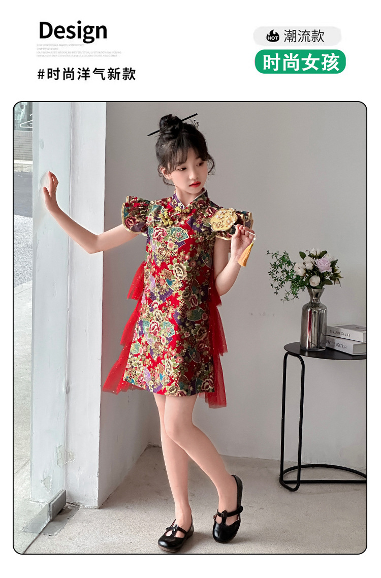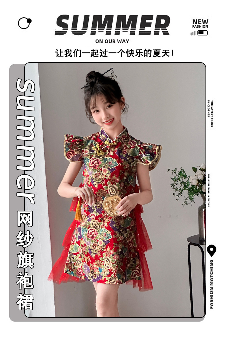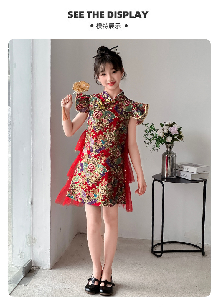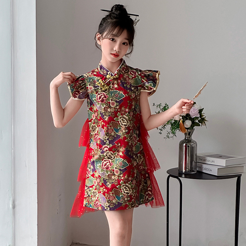 여자 치파오 드레스 여름 중국 스타일 공주 드레스 여자 부자 딸 국가 패션 공연 드레스스토어 가기
