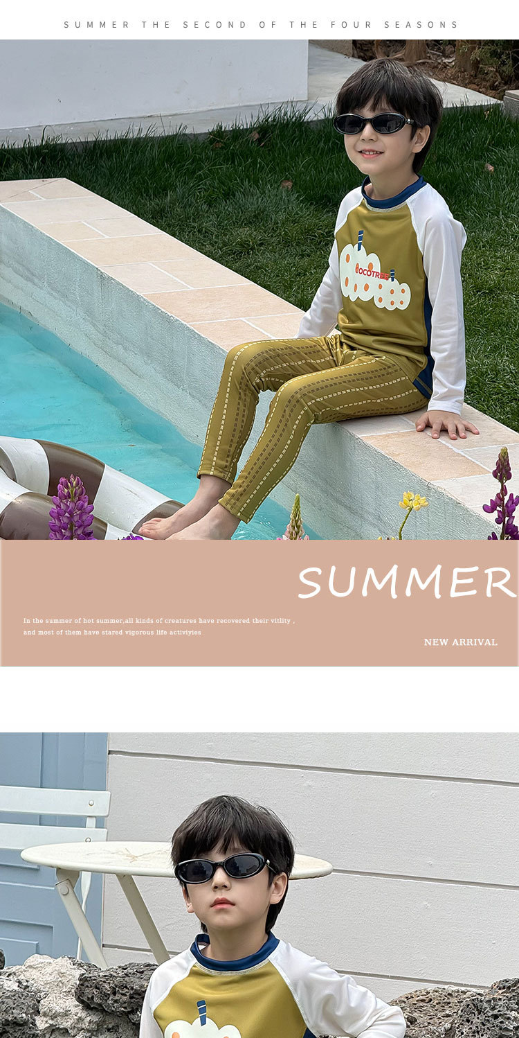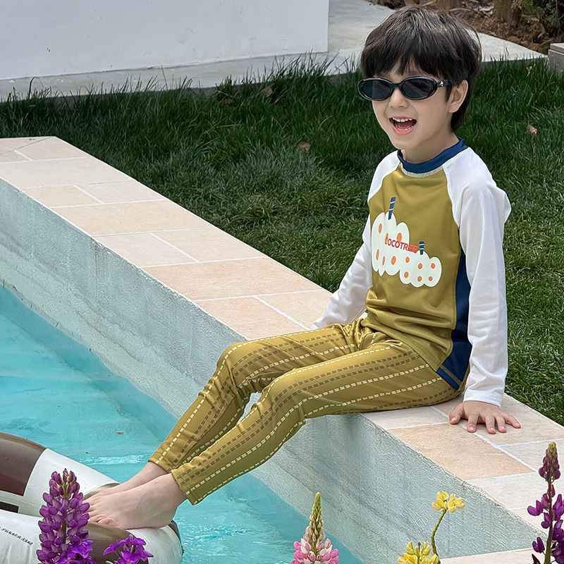 2025 새로운 어린이 수영복 소년 소녀 분할 긴 소매 바지 태양 방지 수영복 빠른 건조 봄 휴일 세트