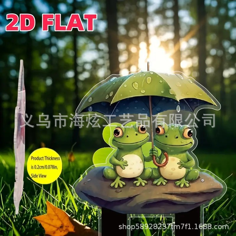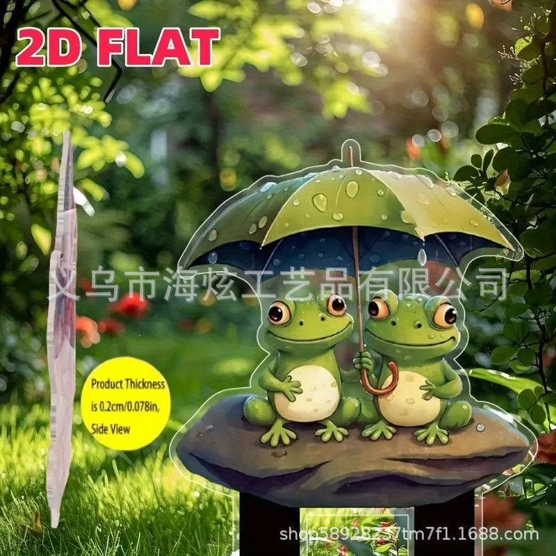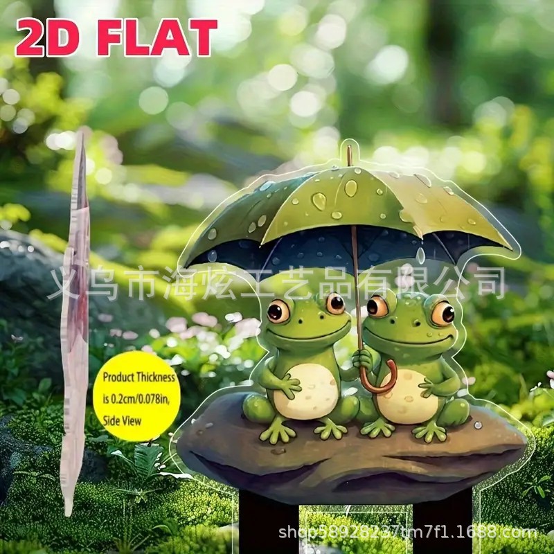 2D 창조적 인 새로운 귀여운 우산 개구리 정원 평면 장식 카드 야외 잔디 화분 아크릴 바닥 플러그스토어 가기