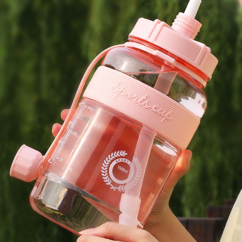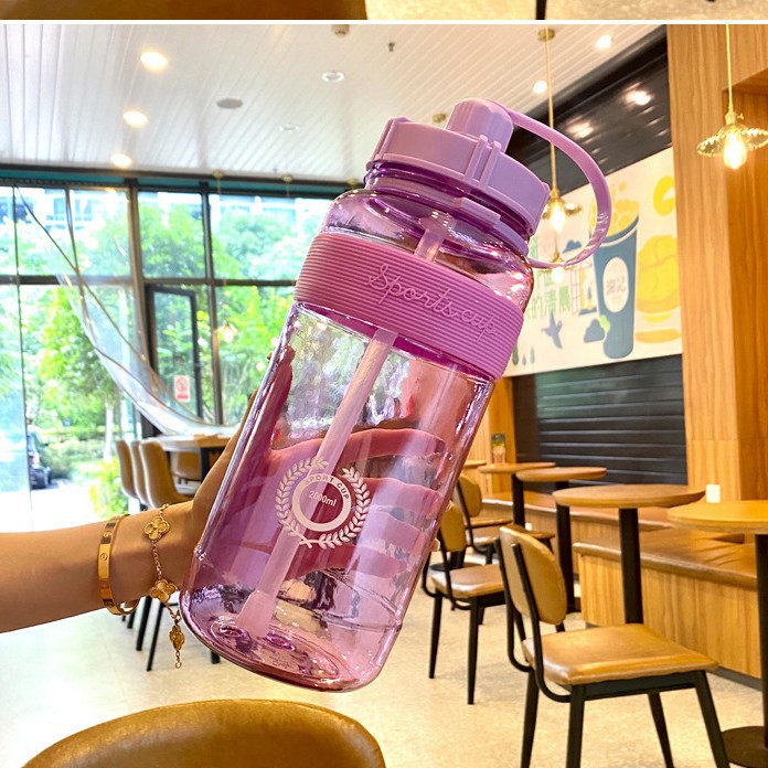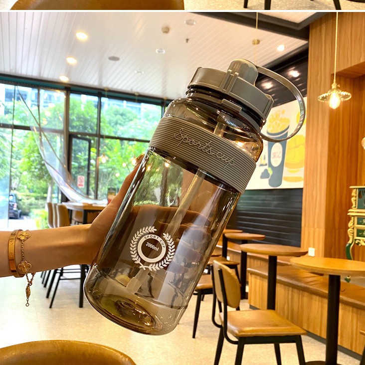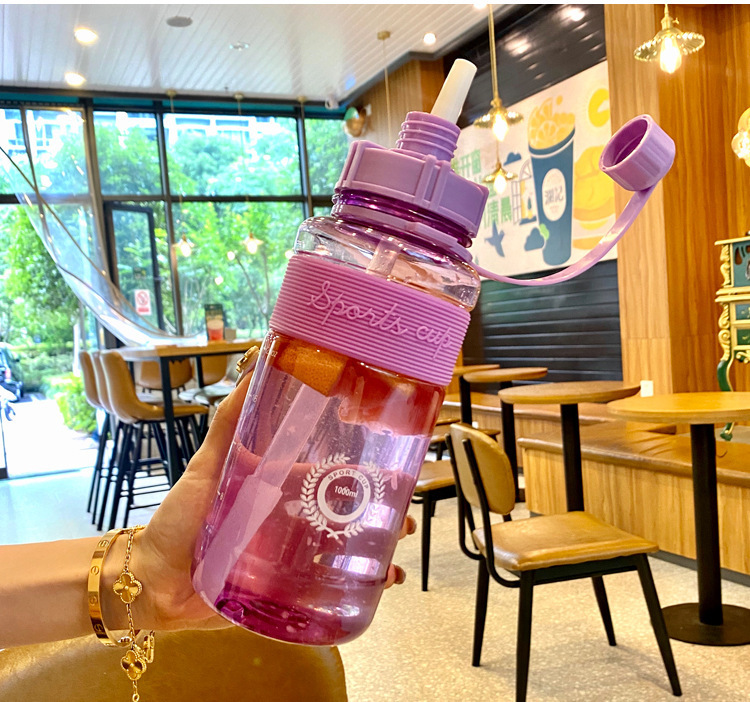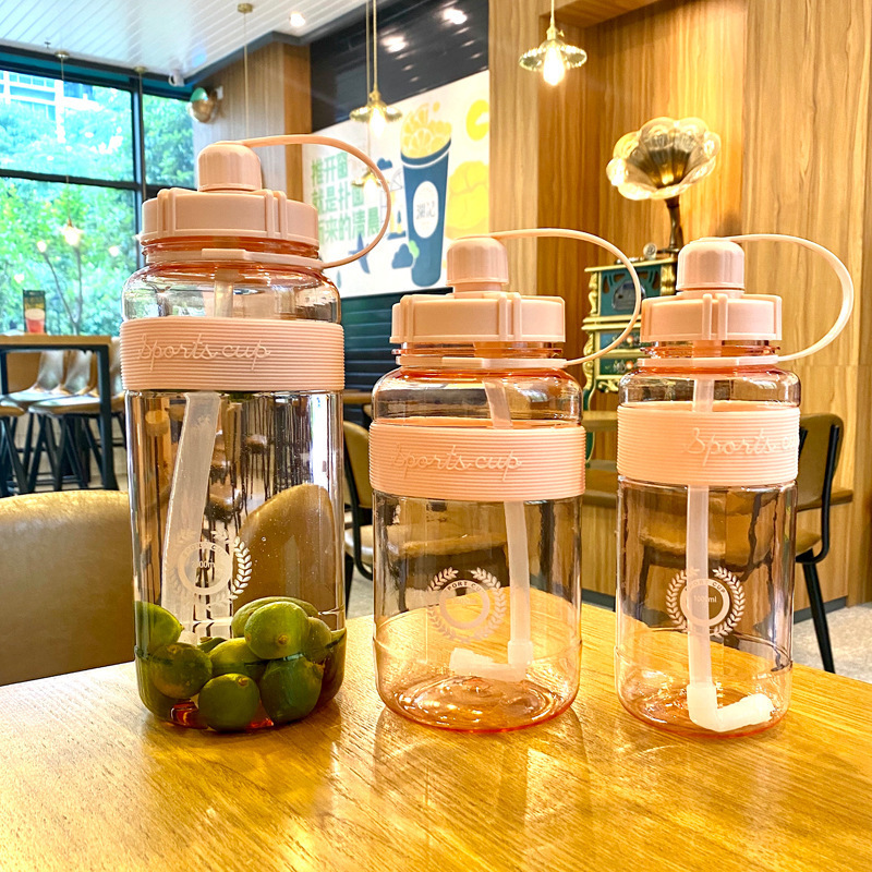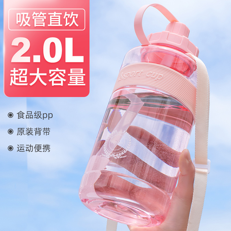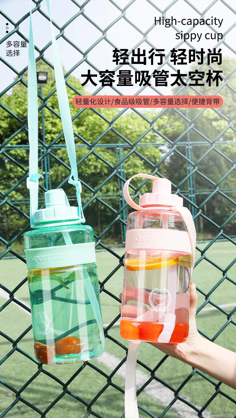 직접 판매 스트랩 밀짚 대용량 플라스틱 물 컵 휴대용 공간 컵 야외 피트니스 등산 스포츠 물병스토어 가기
