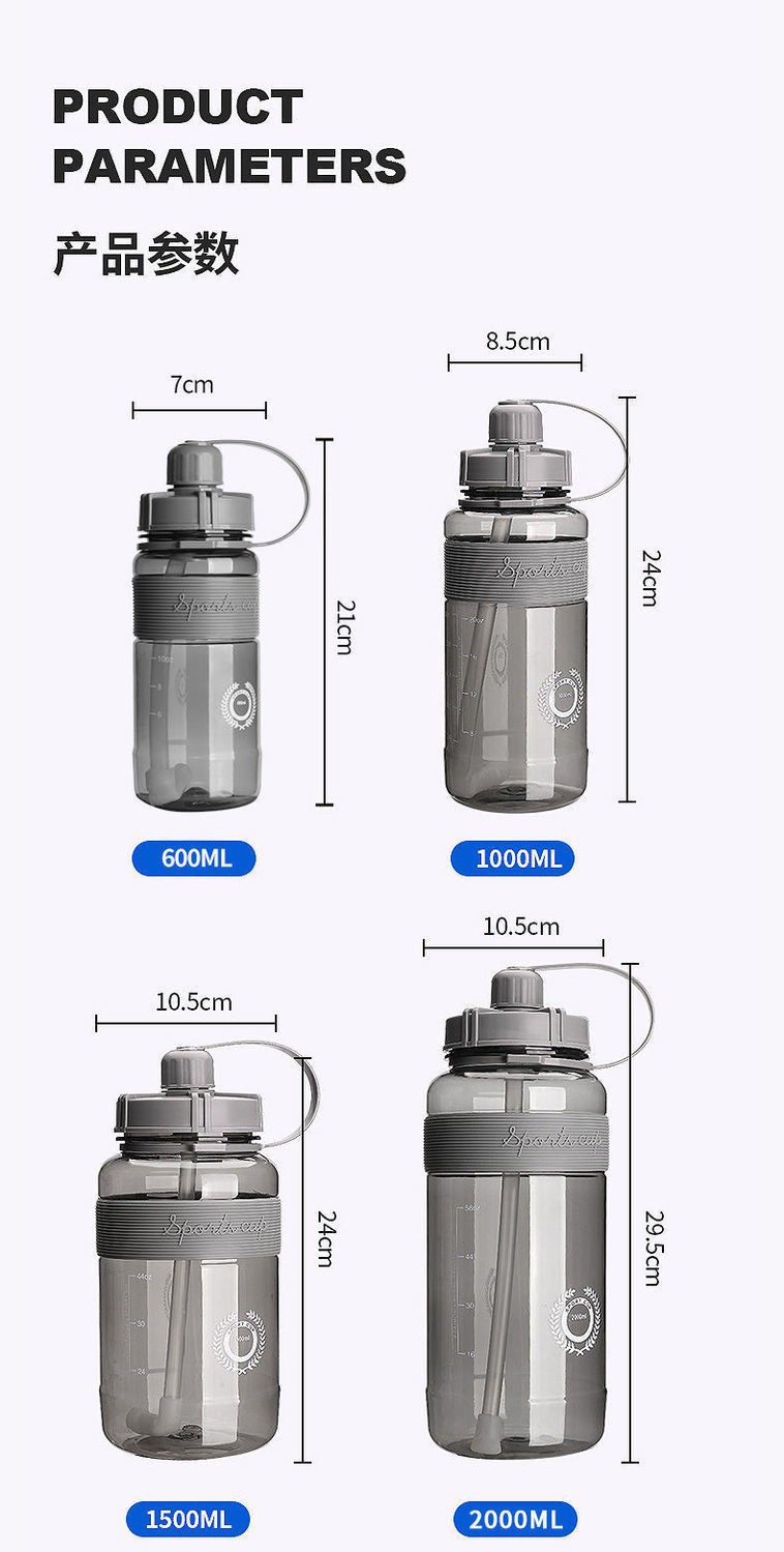 직접 판매 스트랩 밀짚 대용량 플라스틱 물 컵 휴대용 공간 컵 야외 피트니스 등산 스포츠 물병