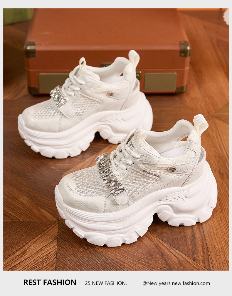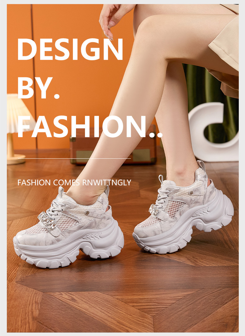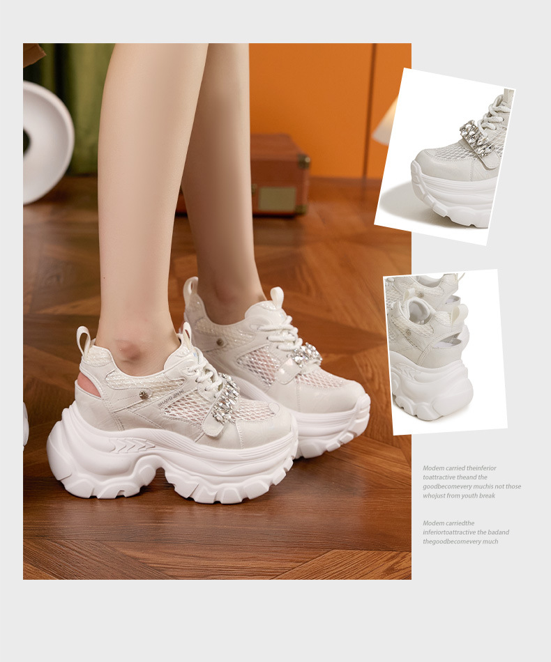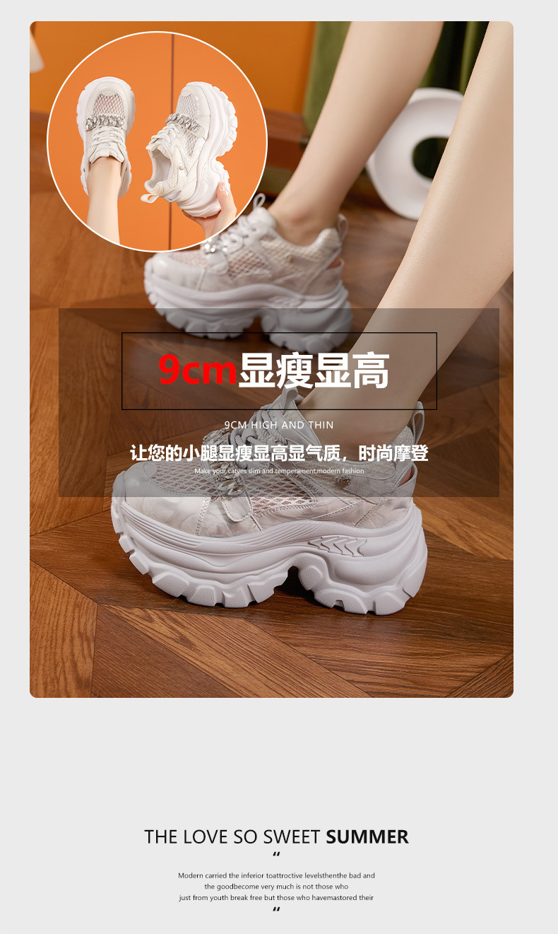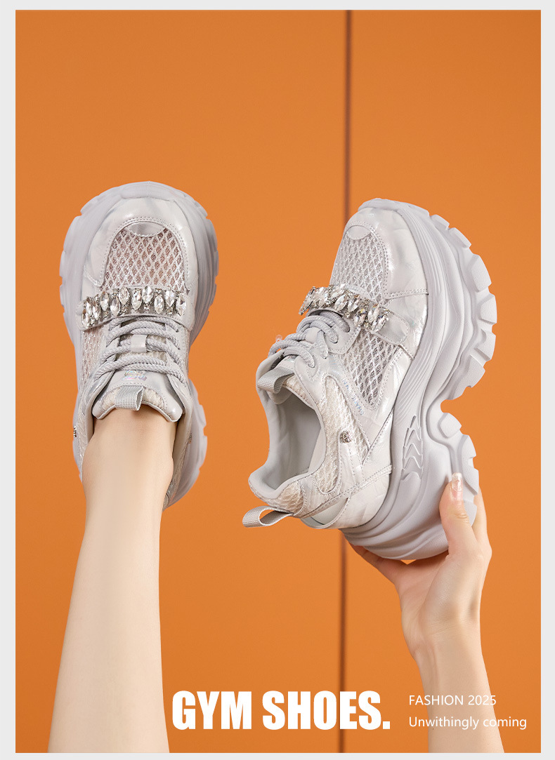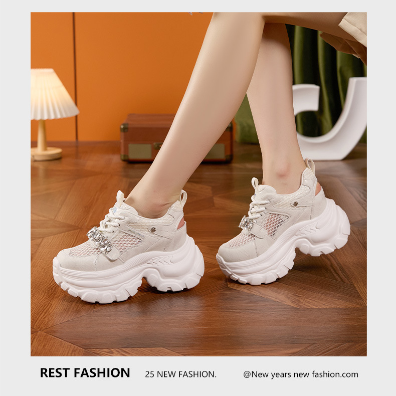 토레 신발 여성 봄과 여름 2025 새로운 할로우 메쉬 통기성 캐주얼 신발 올매치 9CM 두꺼운 단독 높이 증가 여성 신발스토어 가기