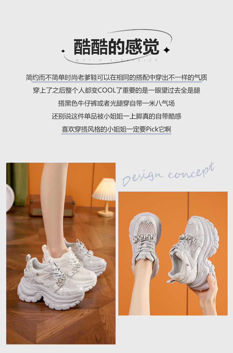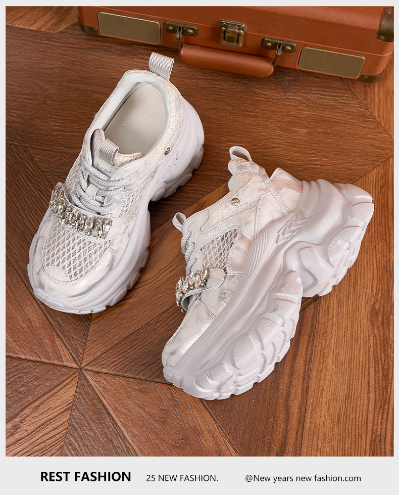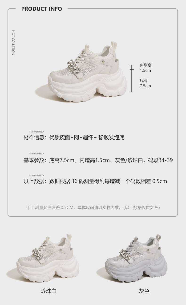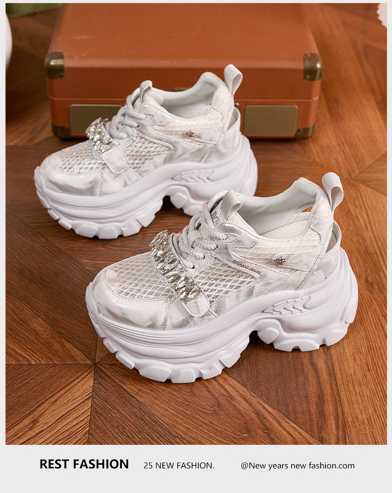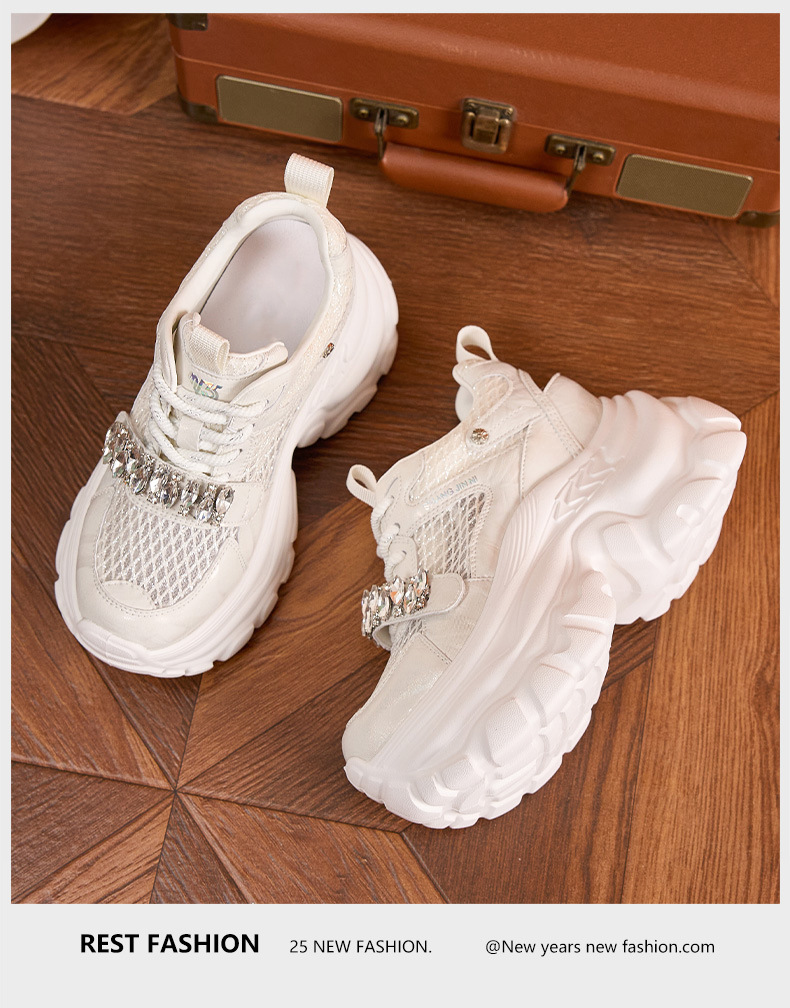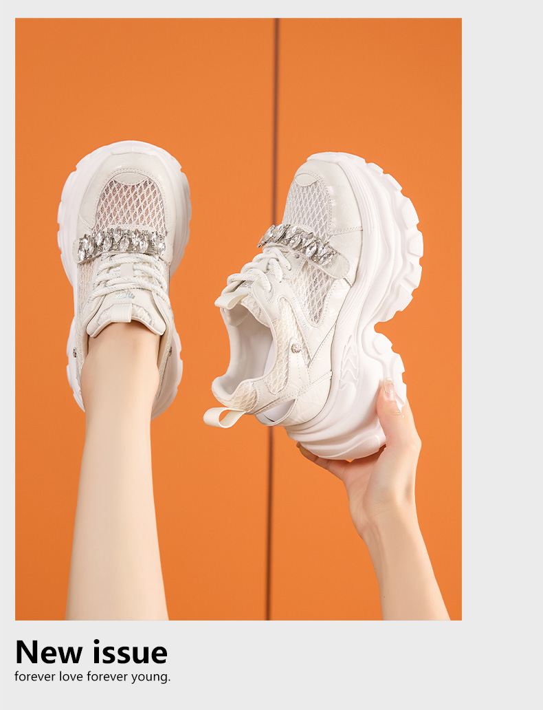 토레 신발 여성 봄과 여름 2025 새로운 할로우 메쉬 통기성 캐주얼 신발 올매치 9CM 두꺼운 단독 높이 증가 여성 신발스토어 가기
