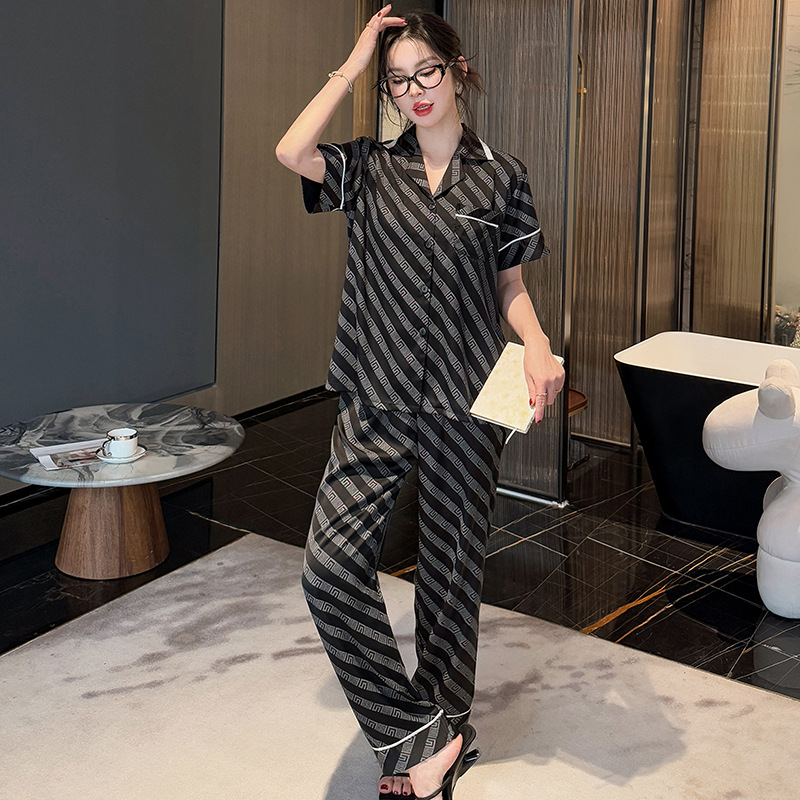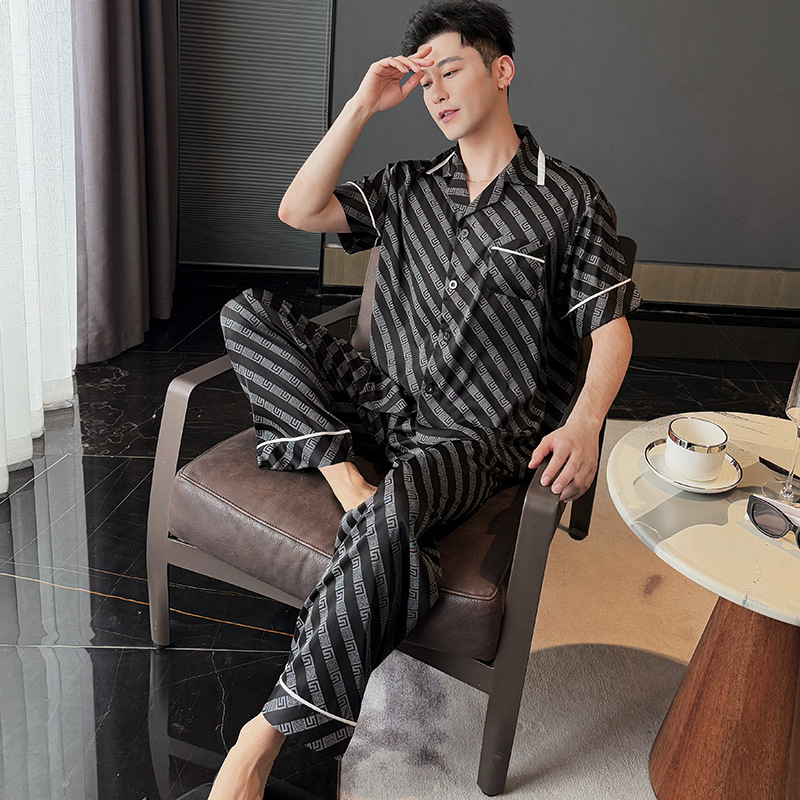 공장 커플 아이스 실크 파자마 여성의 봄 얇은 반팔 바지 세트 한국 스타일 플러스 사이즈 남성 누에 실크스토어 가기