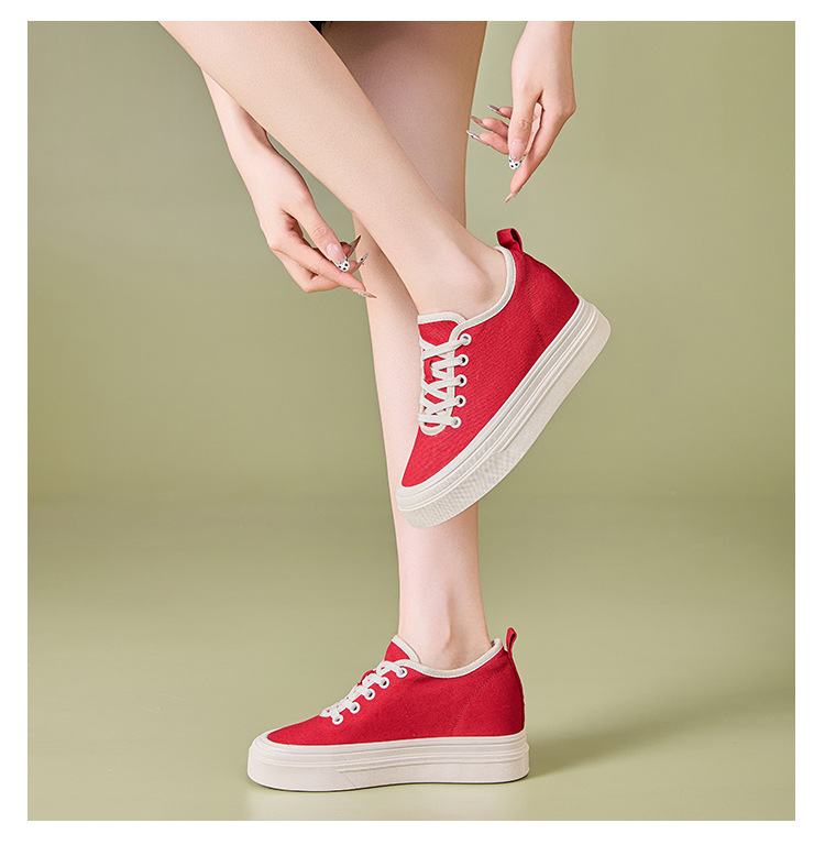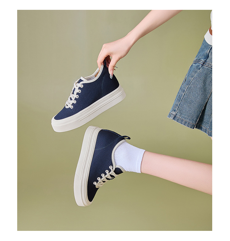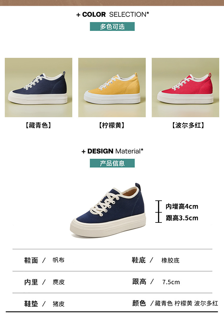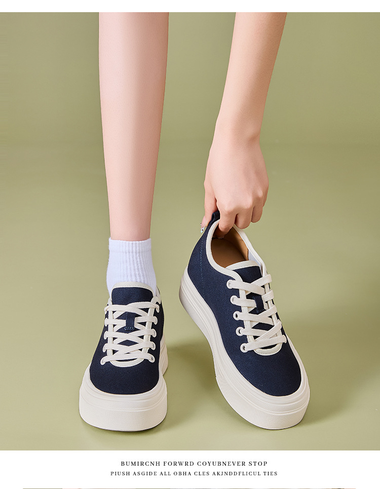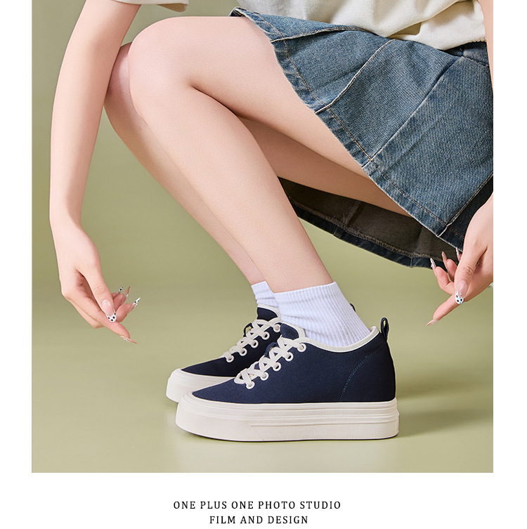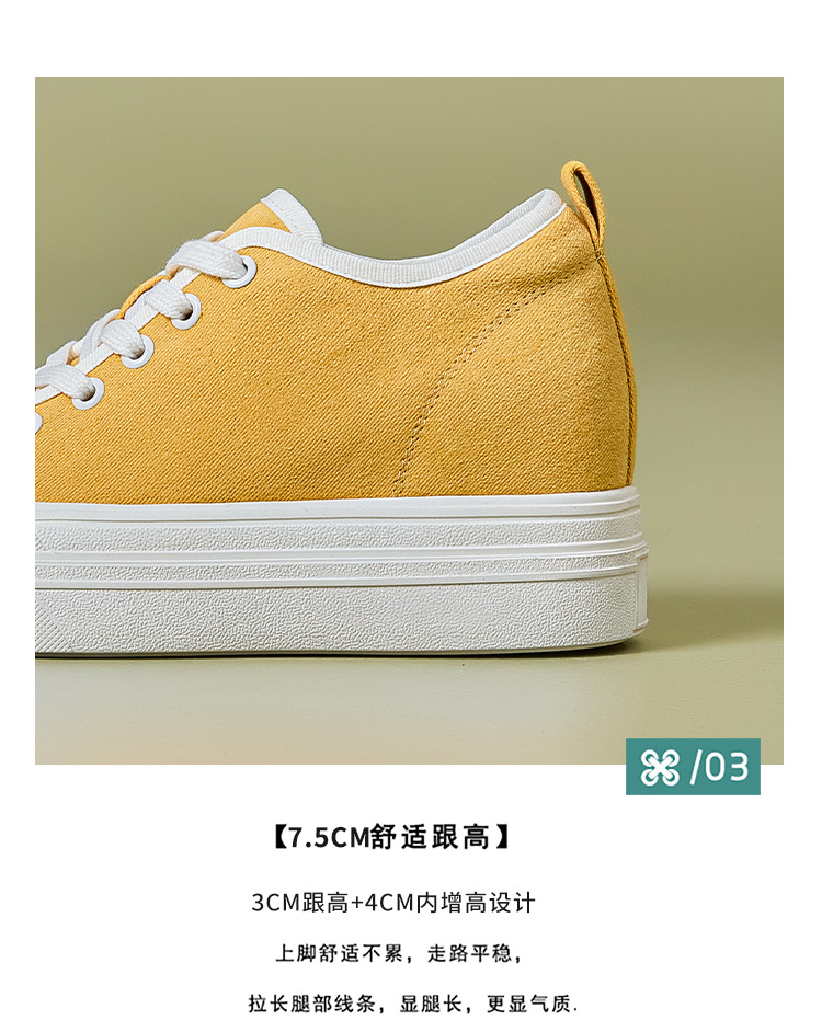7.5cm 키높이 캔버스화 여성용, 샤넬 스타일 두꺼운 밑창, 봄 가을 통기성 좋은 캐주얼 스니커즈, 키 작은 여성용스토어 가기