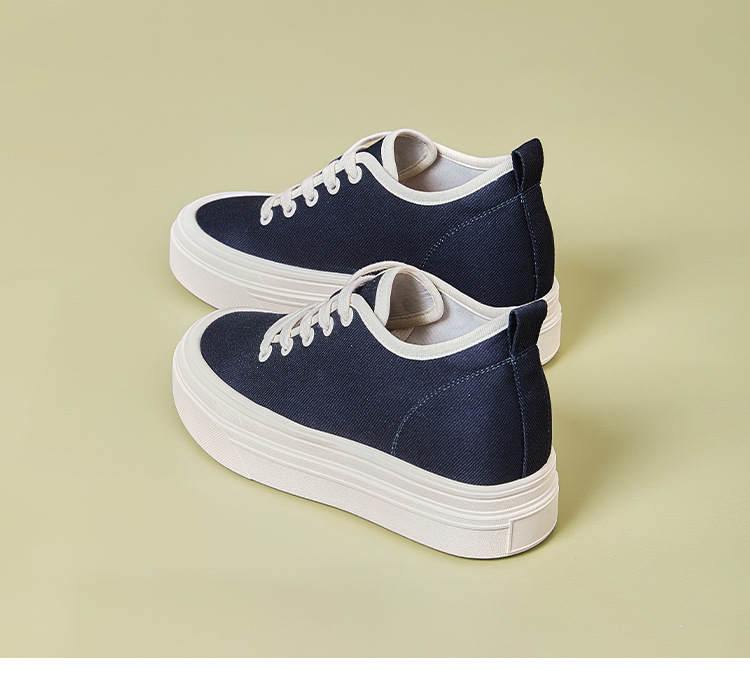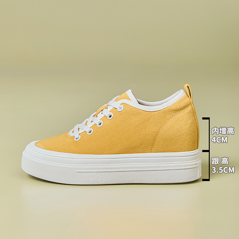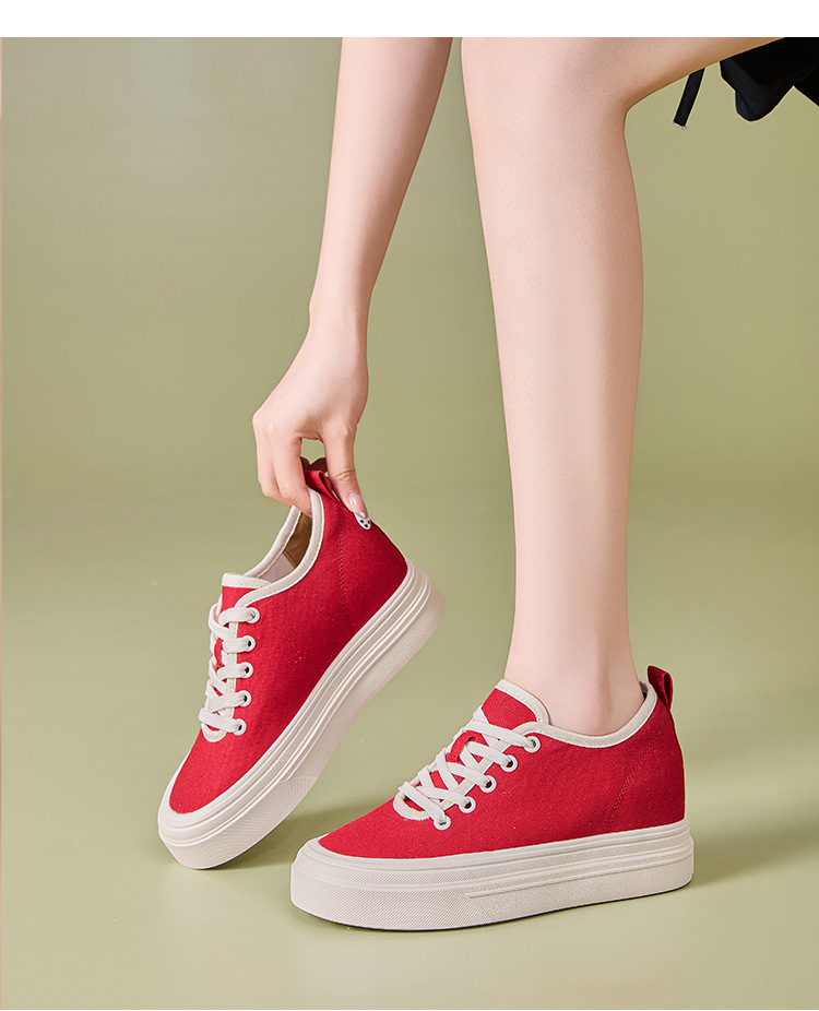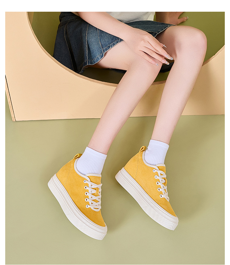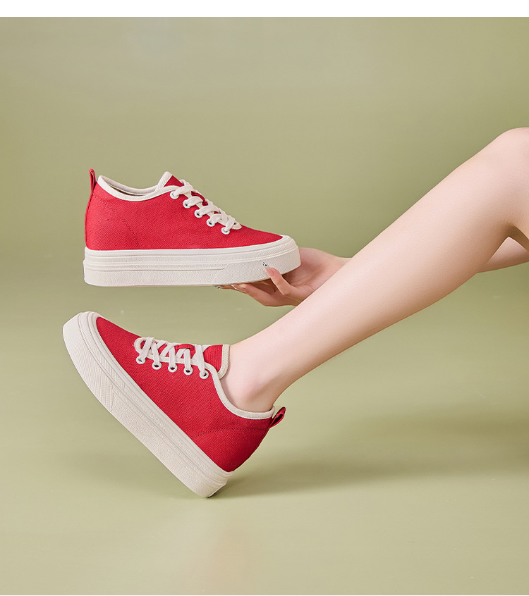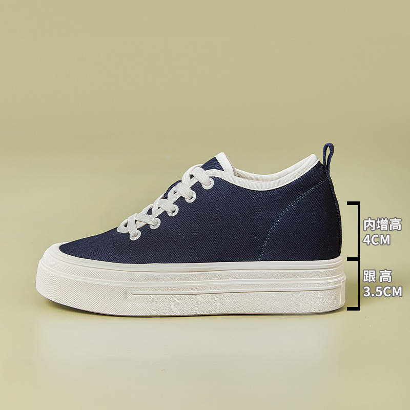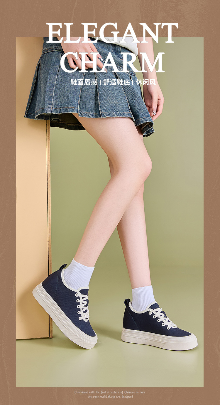 7.5cm 키높이 캔버스화 여성용, 샤넬 스타일 두꺼운 밑창, 봄 가을 통기성 좋은 캐주얼 스니커즈, 키 작은 여성용스토어 가기