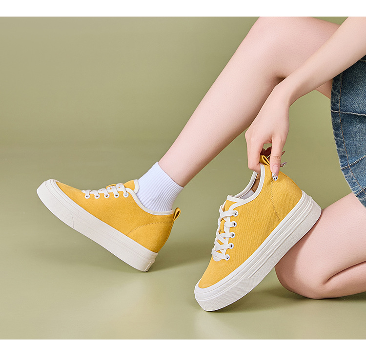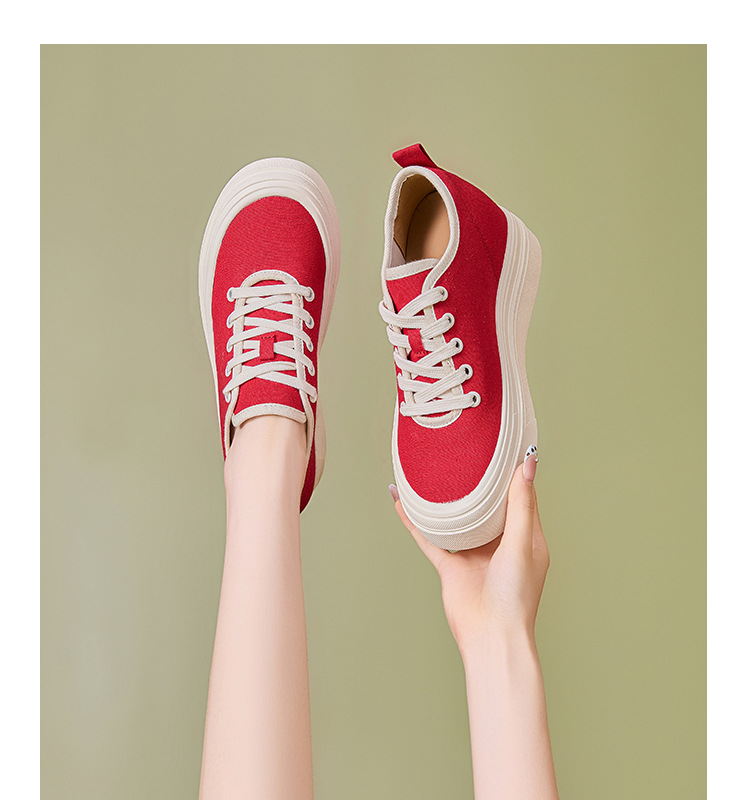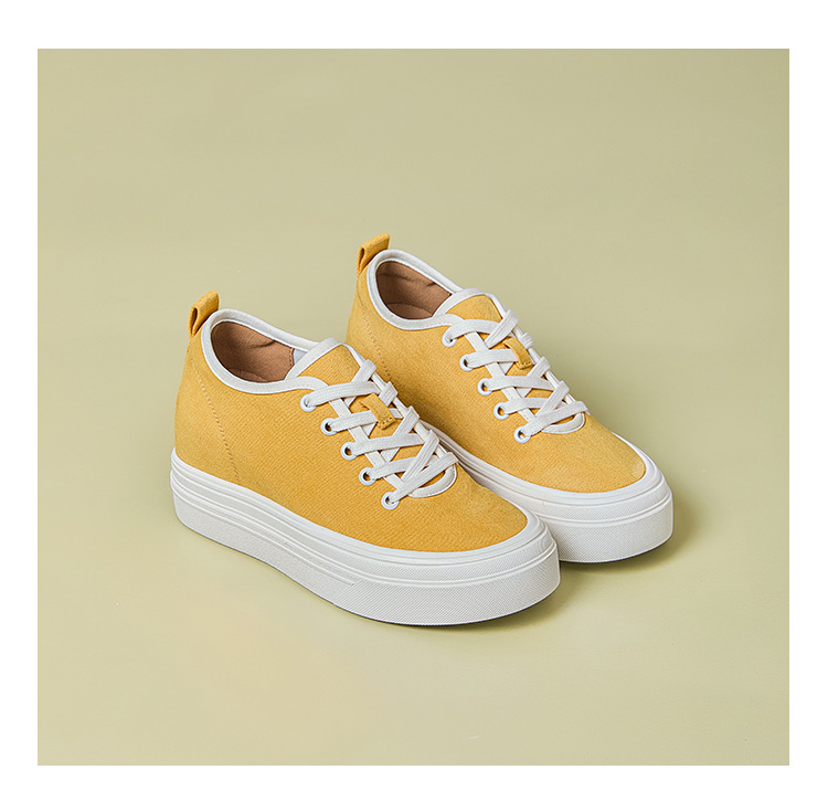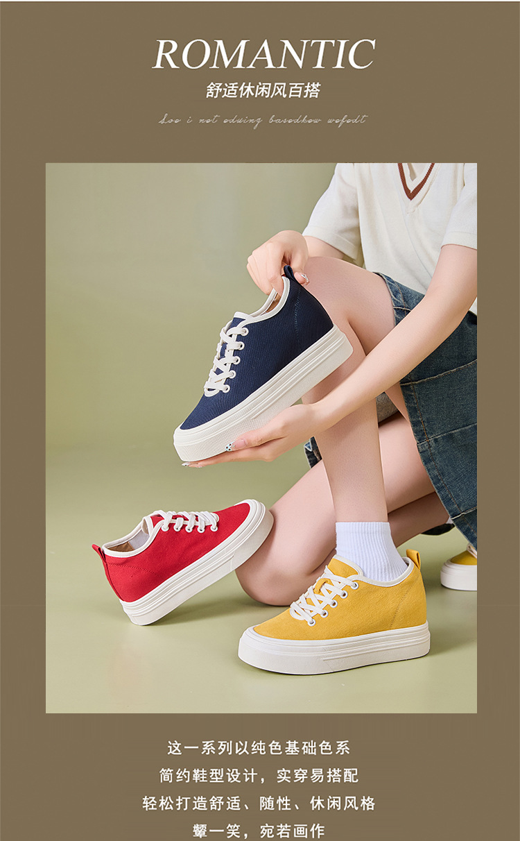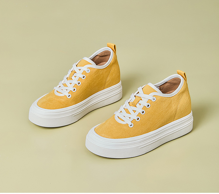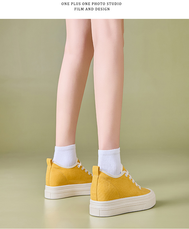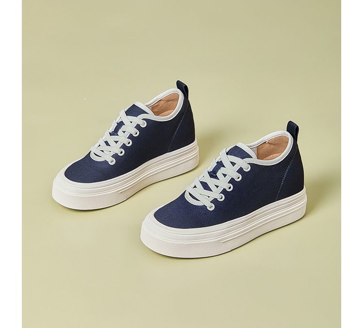 7.5cm 키높이 캔버스화 여성용, 샤넬 스타일 두꺼운 밑창, 봄 가을 통기성 좋은 캐주얼 스니커즈, 키 작은 여성용스토어 가기