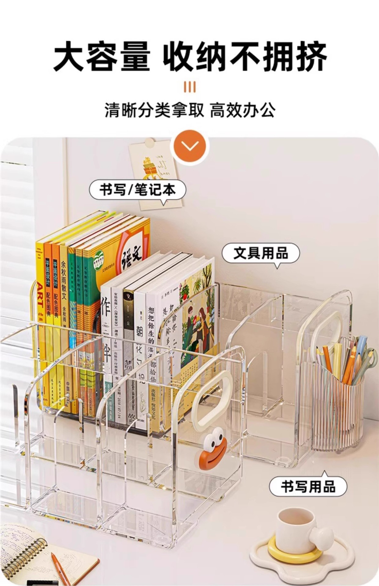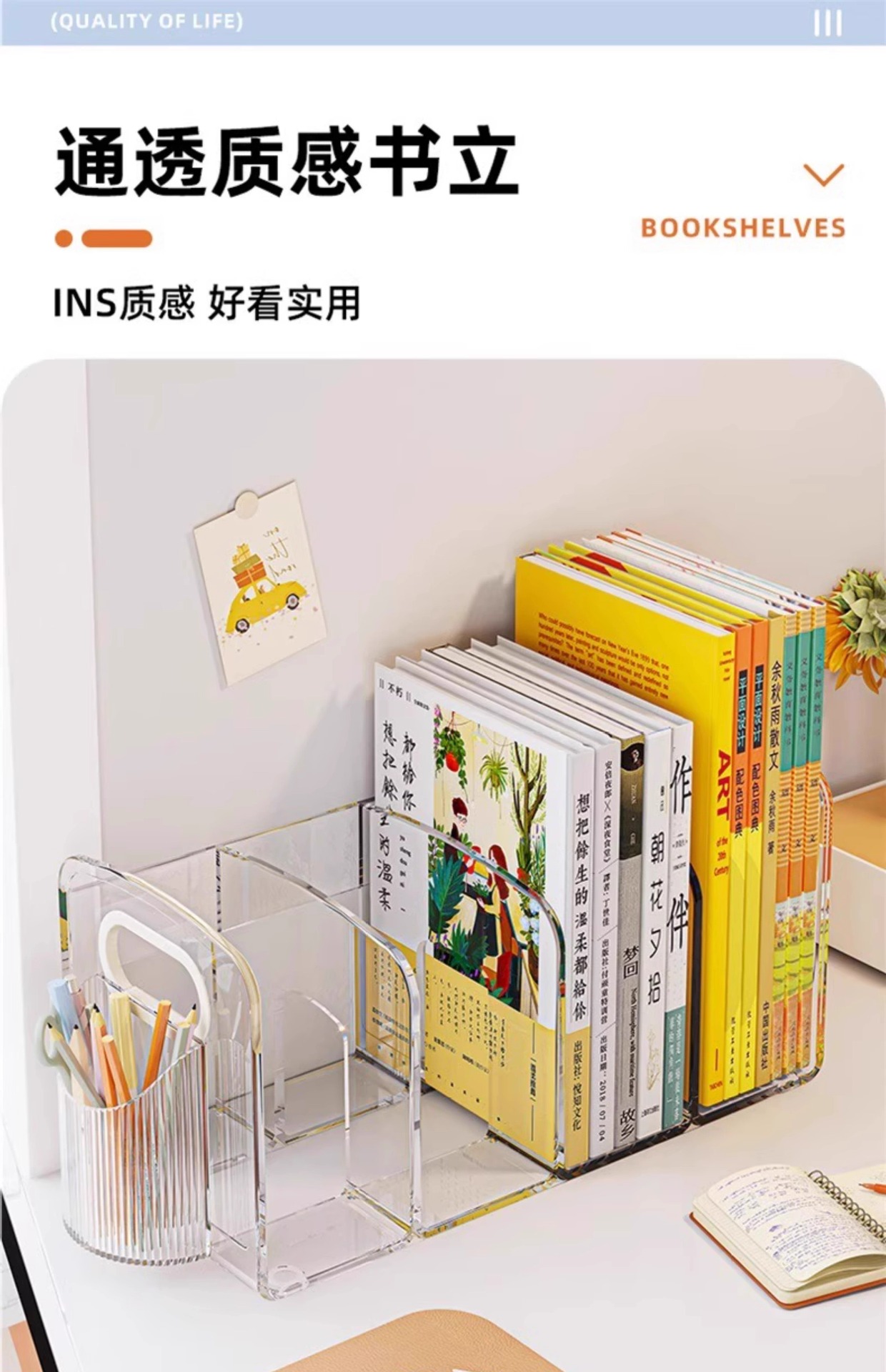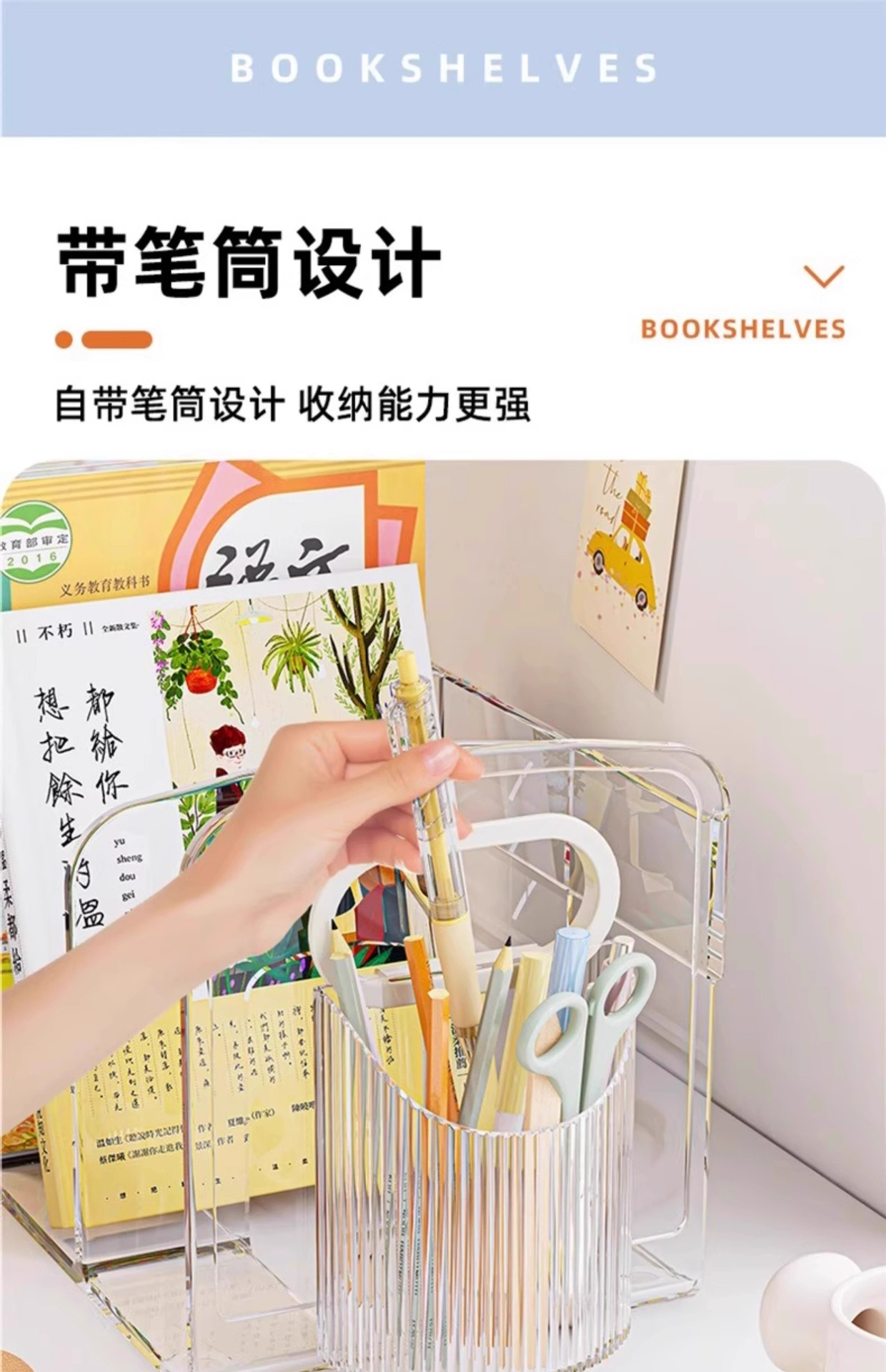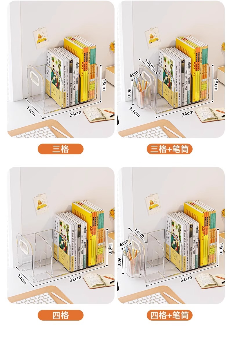 데스크탑 북 랙 데스크 아크릴 투명 스토리지 박스 펜 홀더 책장 사무실 파일 학생 도서 보관 랙스토어 가기