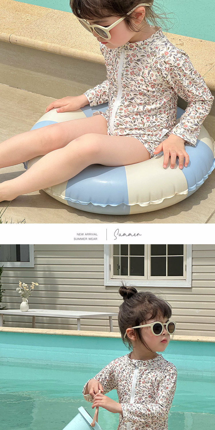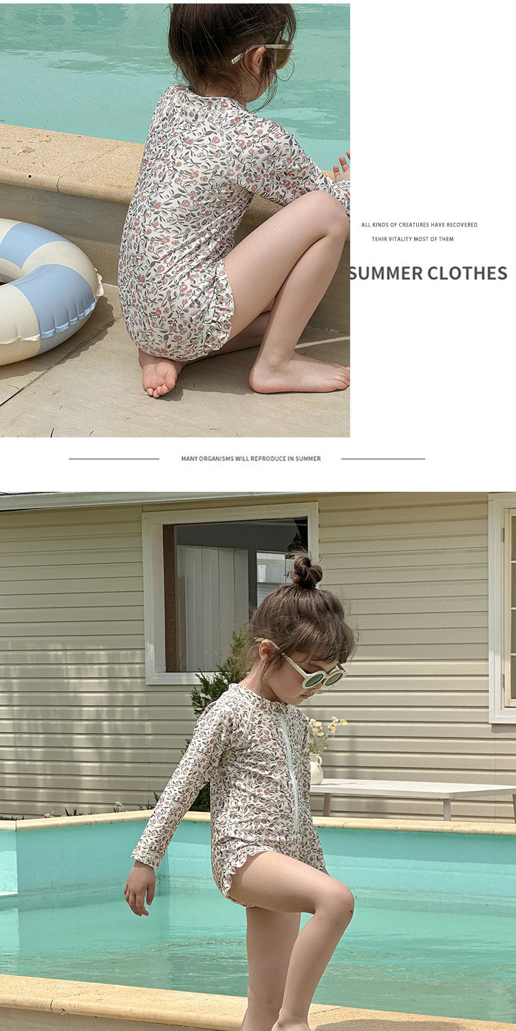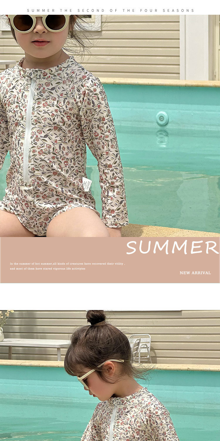 여름 새로운 어린이 수영복 아기 소녀의 Siomatic 긴 소매 태양 보호 수영복 작은 꽃 온천 해변 휴일 수영복스토어 가기