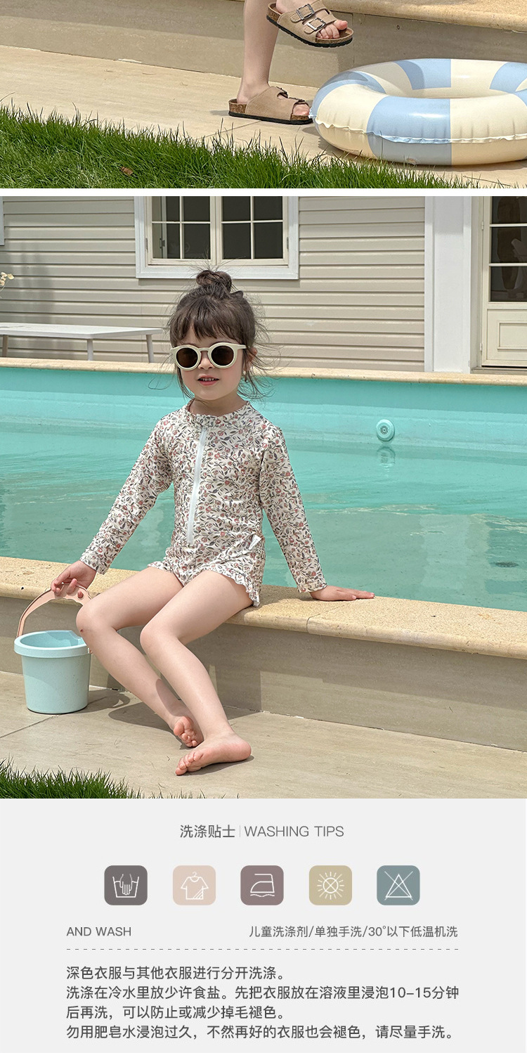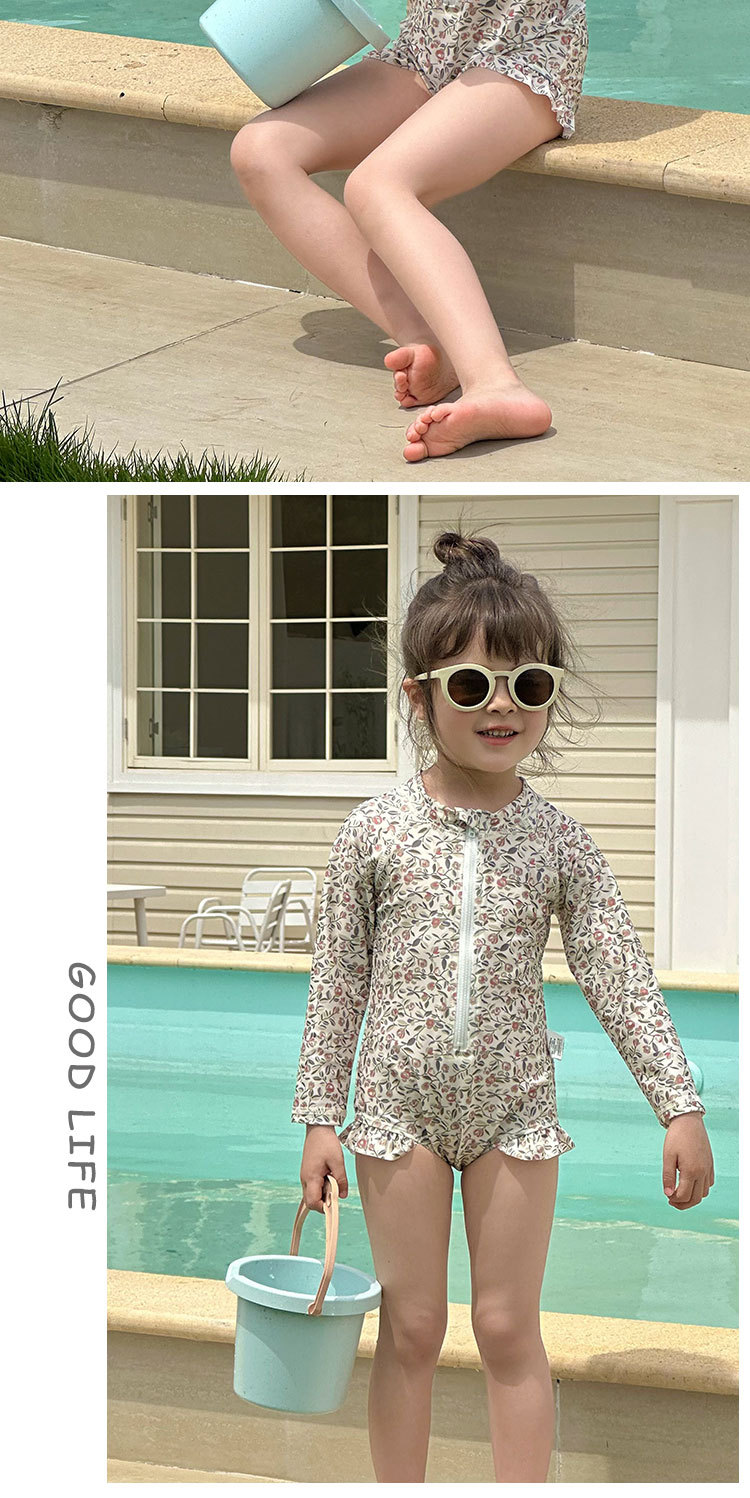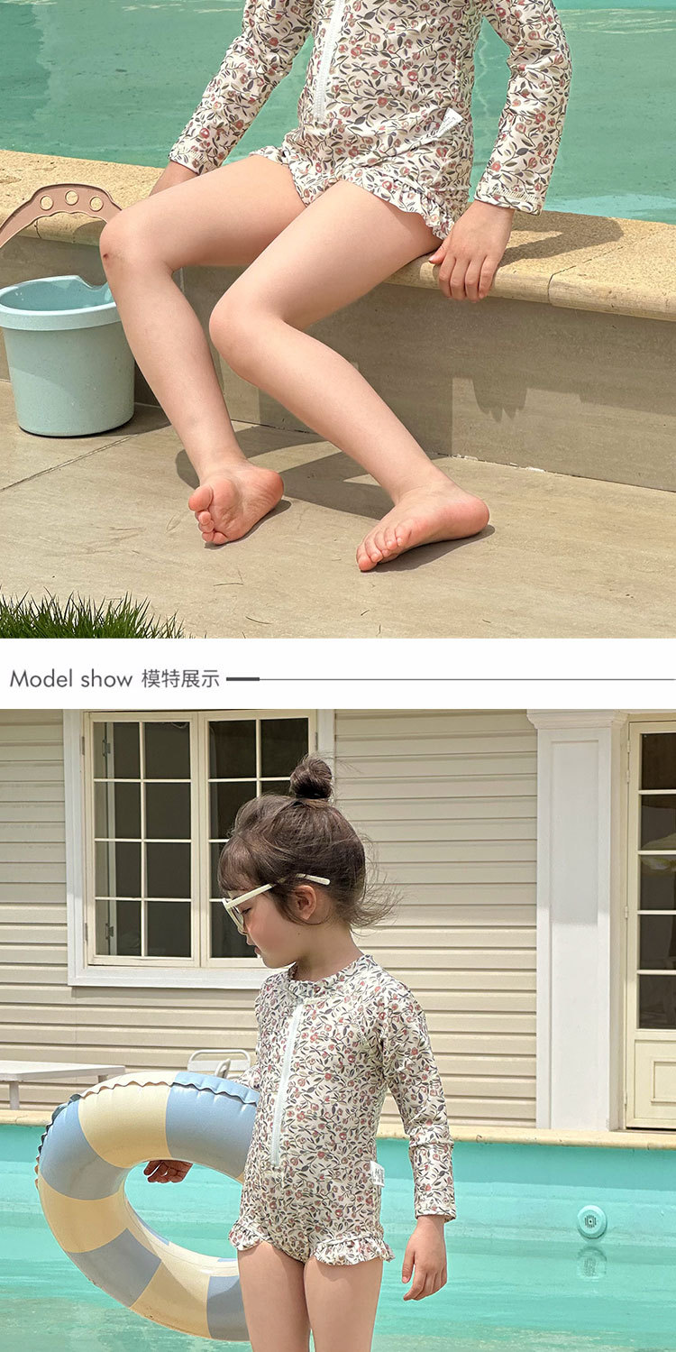 여름 새로운 어린이 수영복 아기 소녀의 Siomatic 긴 소매 태양 보호 수영복 작은 꽃 온천 해변 휴일 수영복스토어 가기