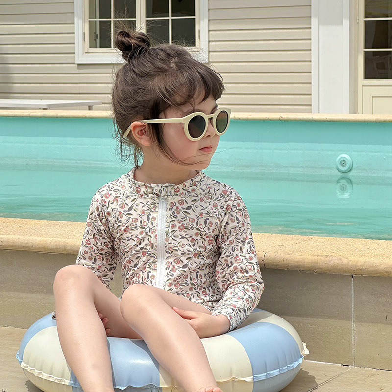 여름 새로운 어린이 수영복 아기 소녀의 Siomatic 긴 소매 태양 보호 수영복 작은 꽃 온천 해변 휴일 수영복