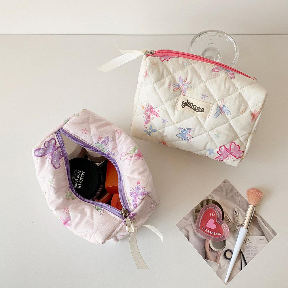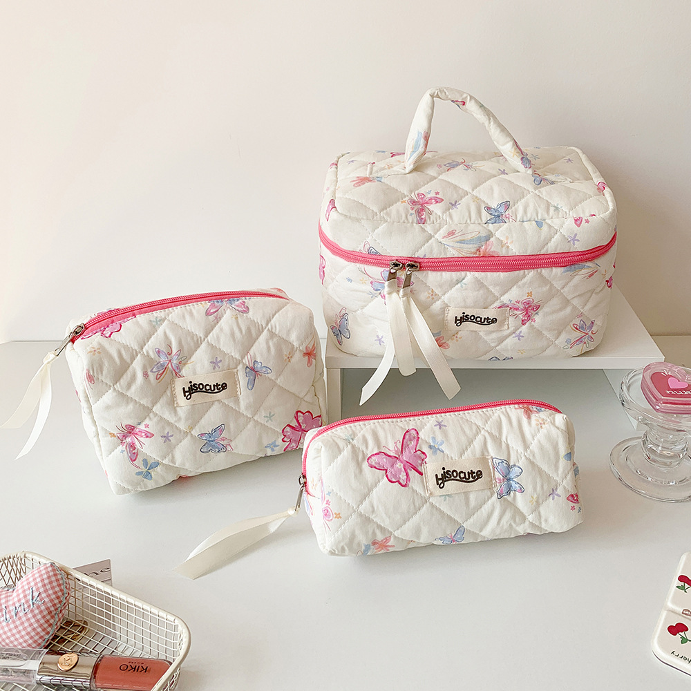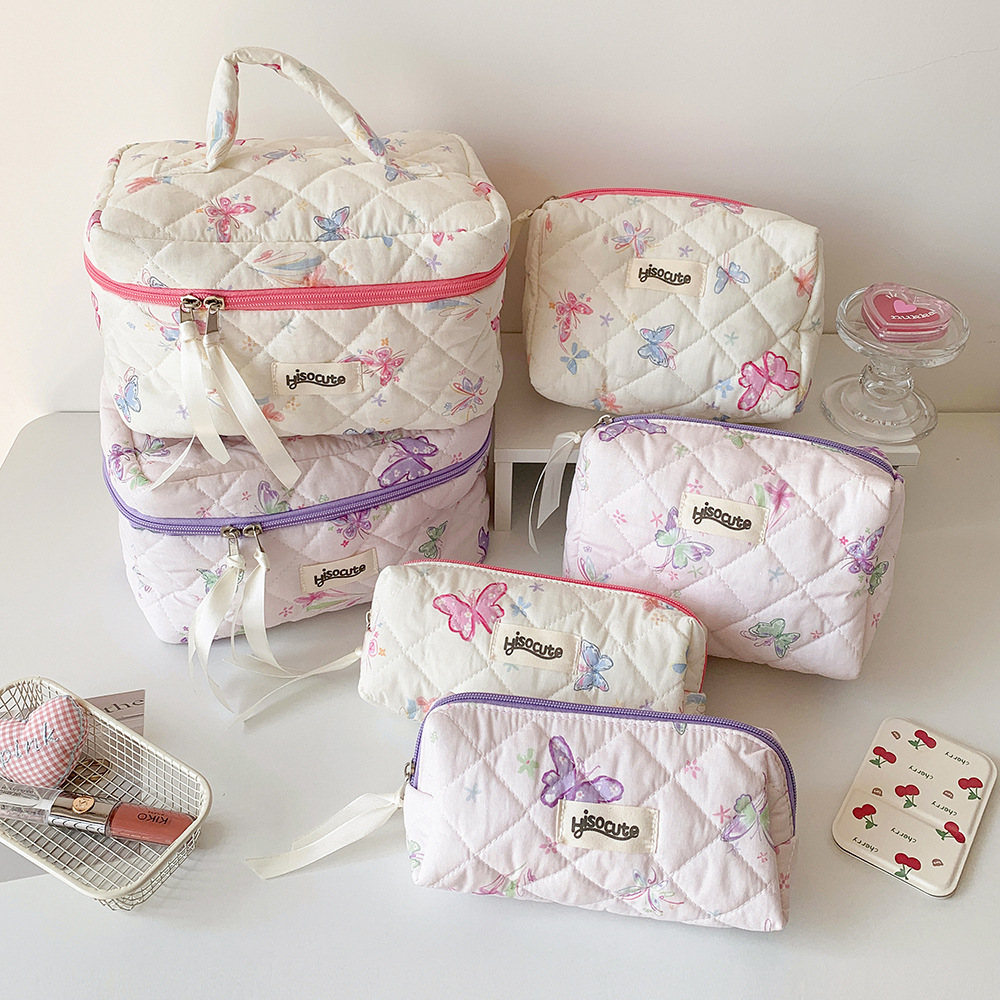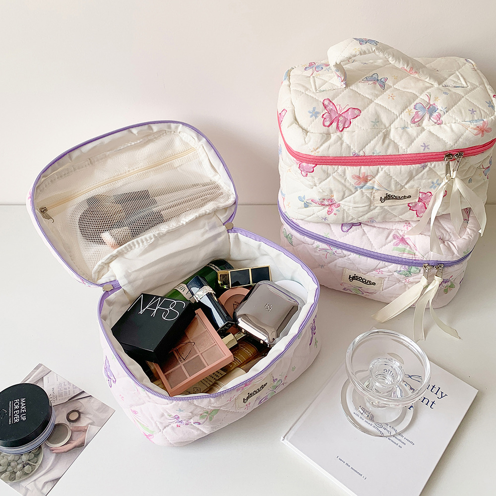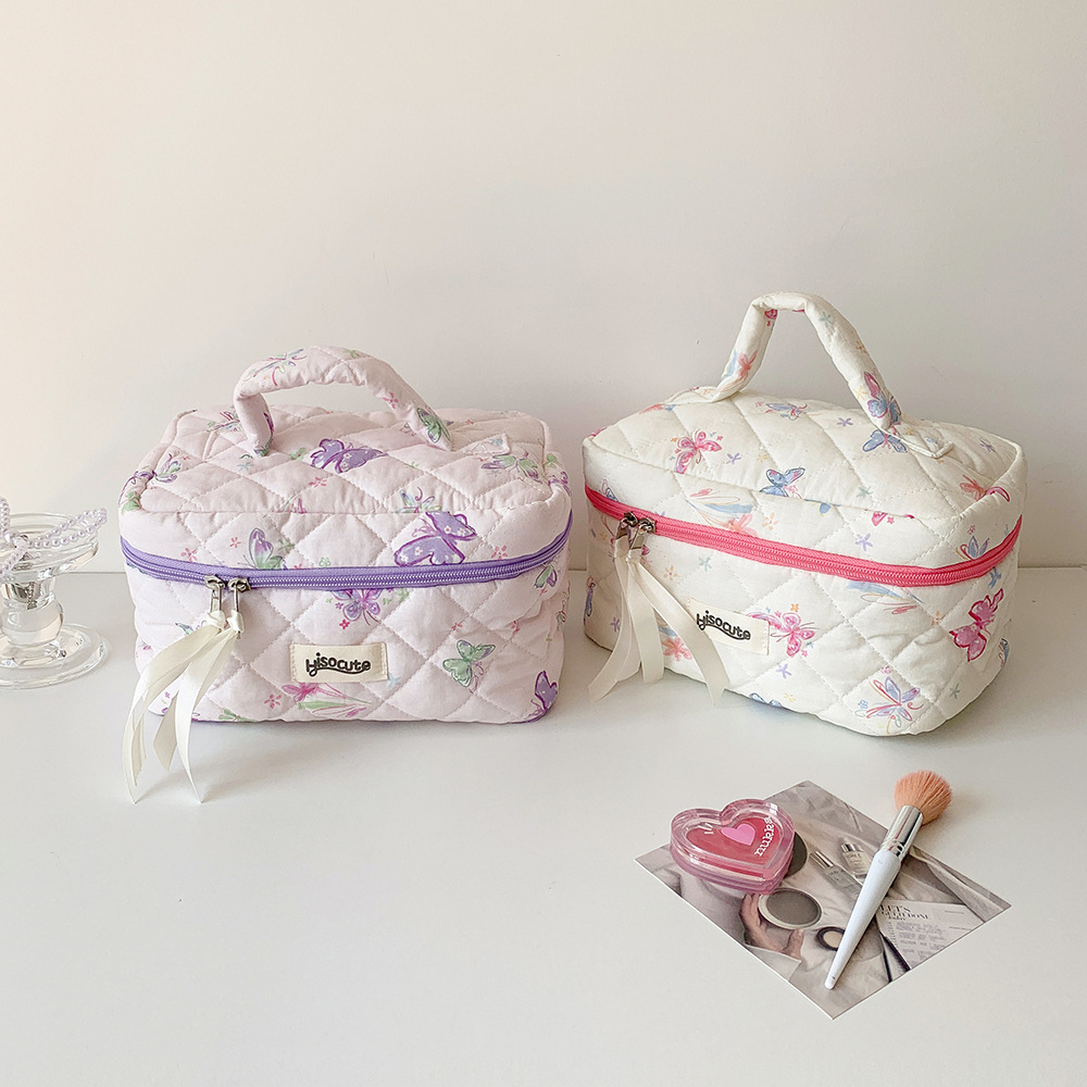 Ins 크림 스타일 나비 인쇄 화장품 가방 대용량 스킨 케어 제품 보관 가방 휴대용 세면 용품 가방 데스크탑 스토리지