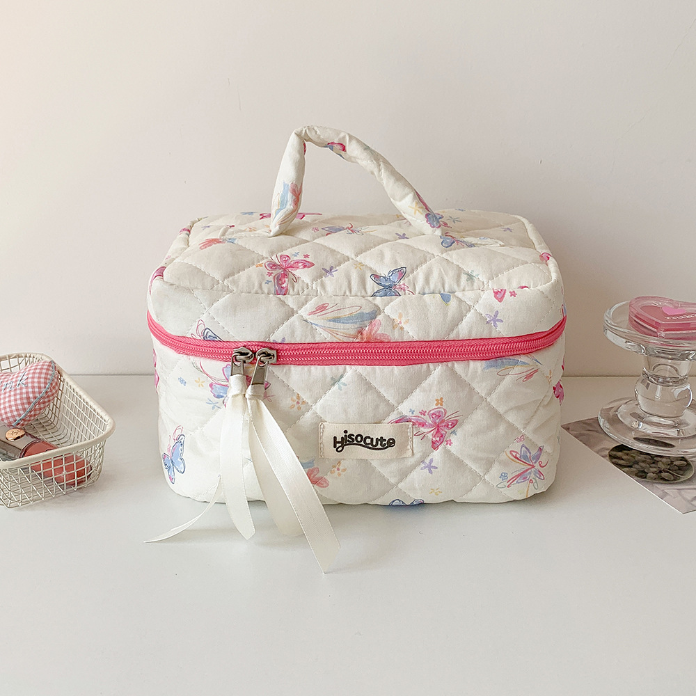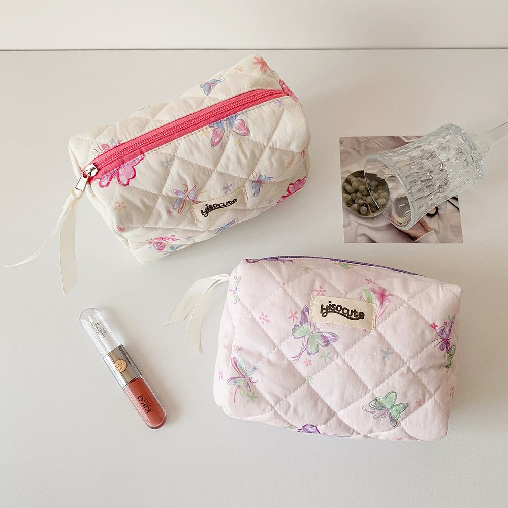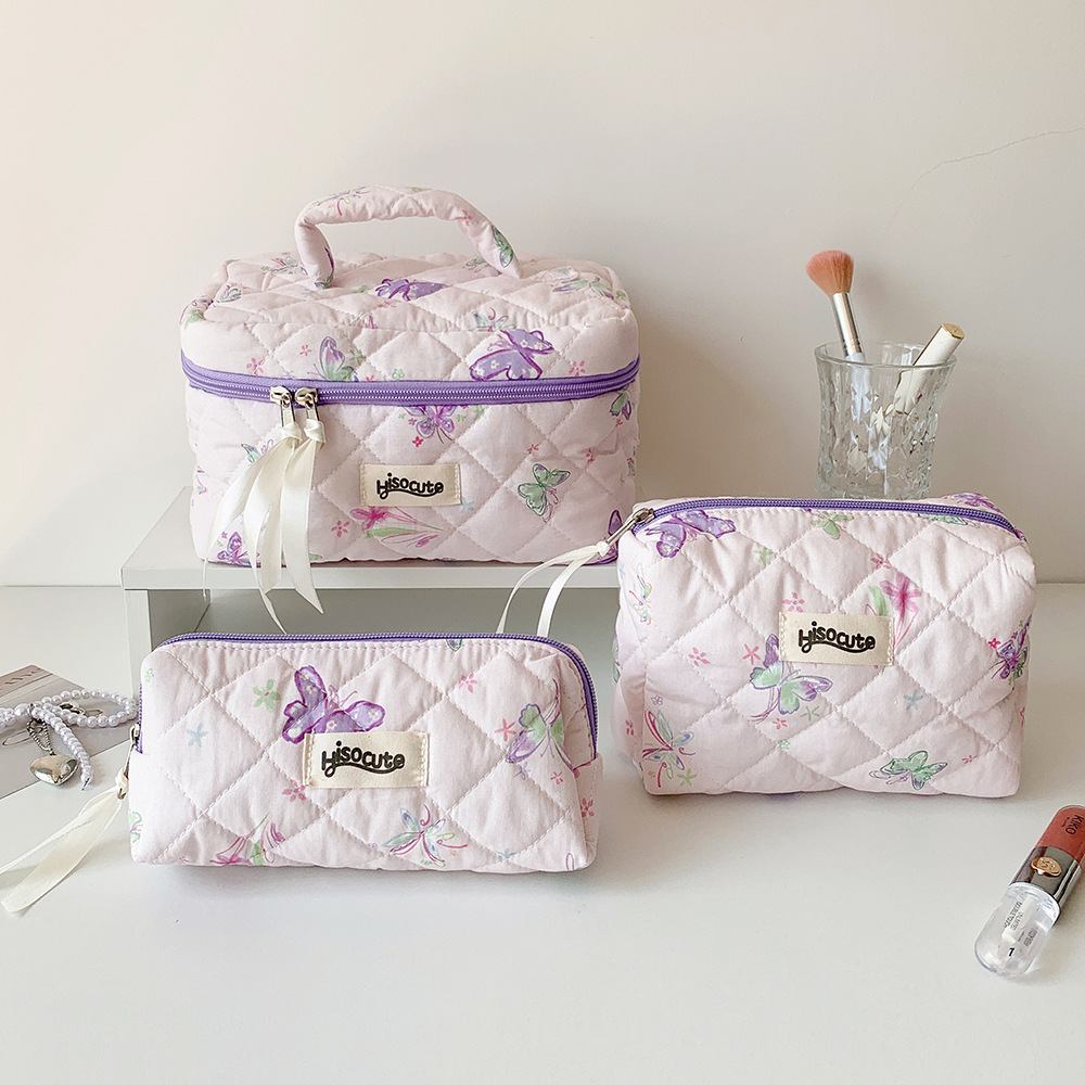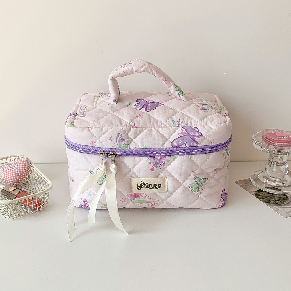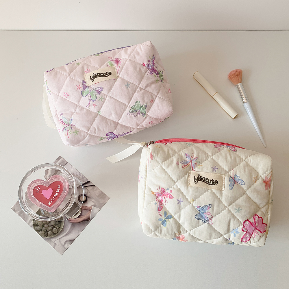 Ins 크림 스타일 나비 인쇄 화장품 가방 대용량 스킨 케어 제품 보관 가방 휴대용 세면 용품 가방 데스크탑 스토리지