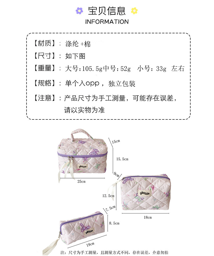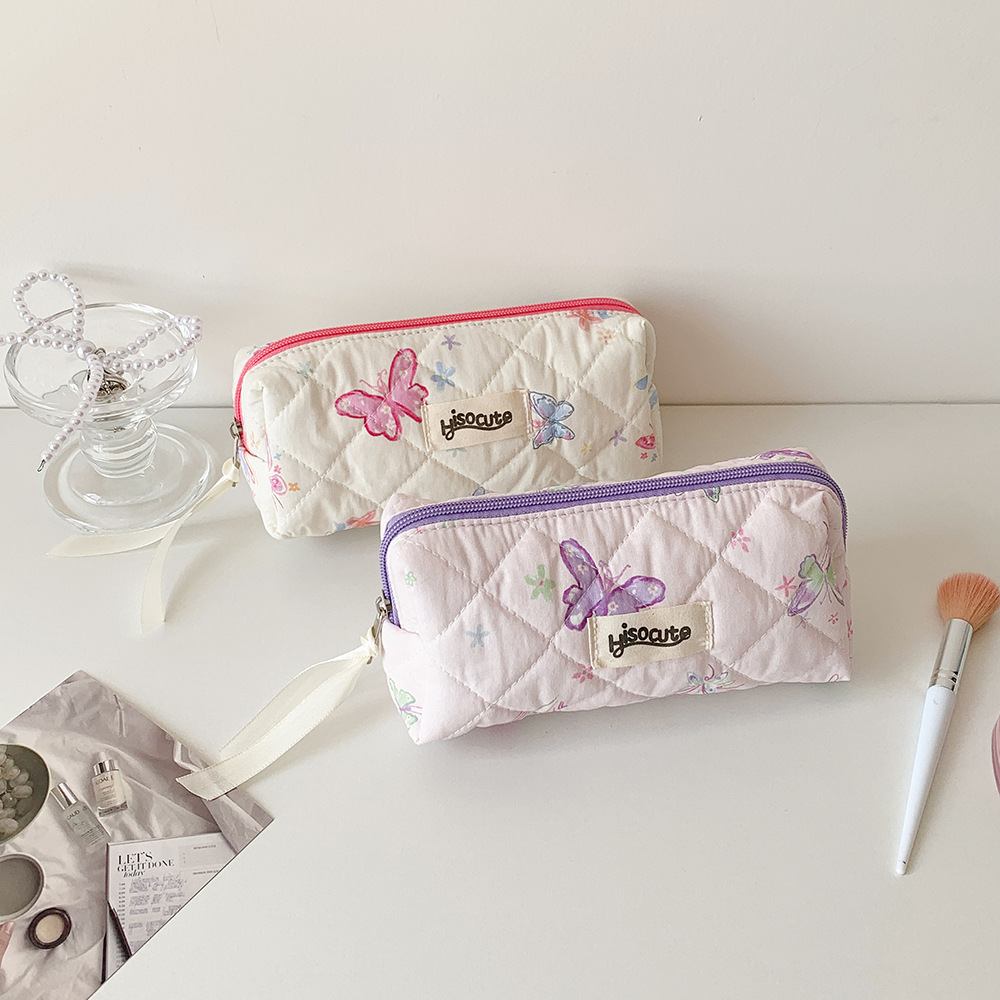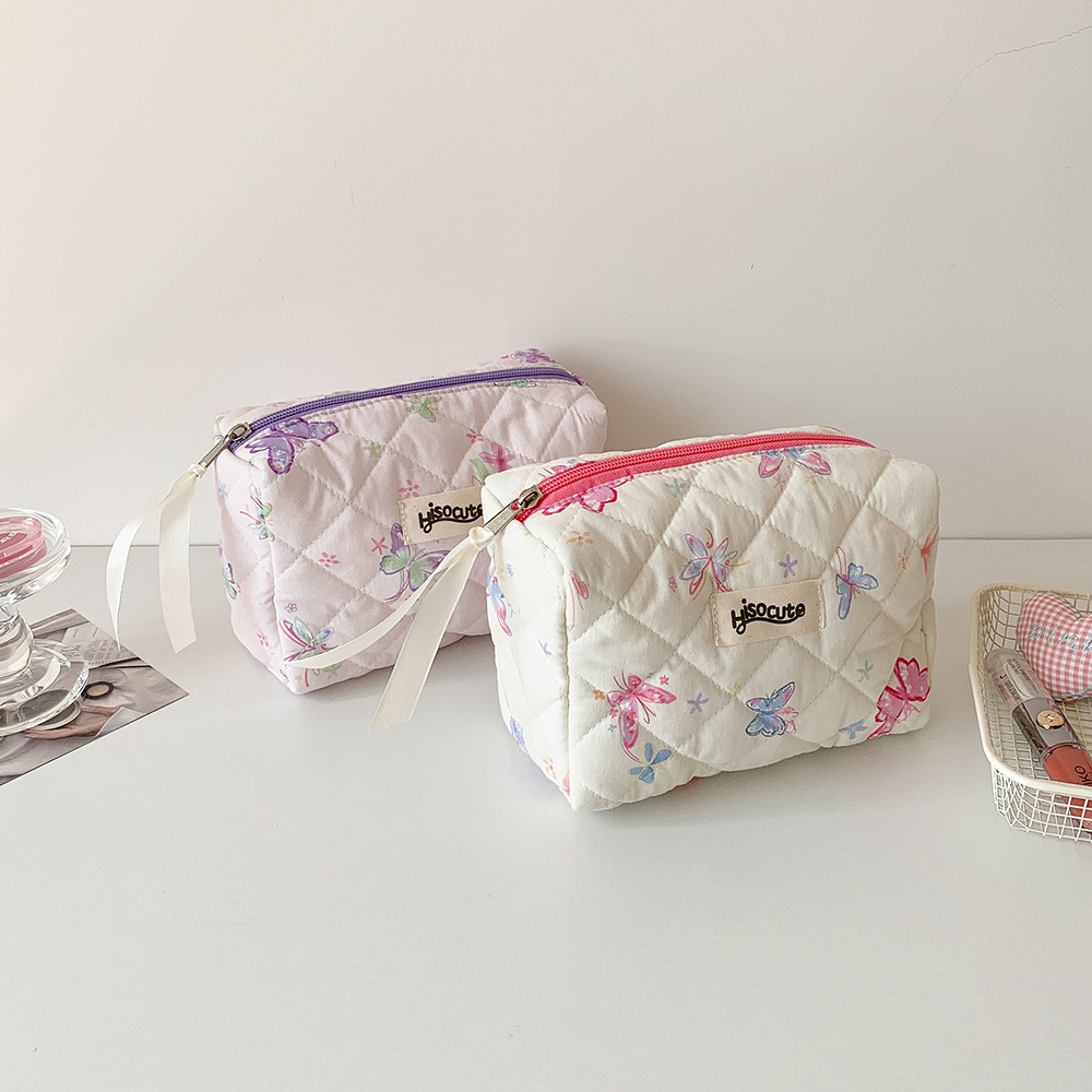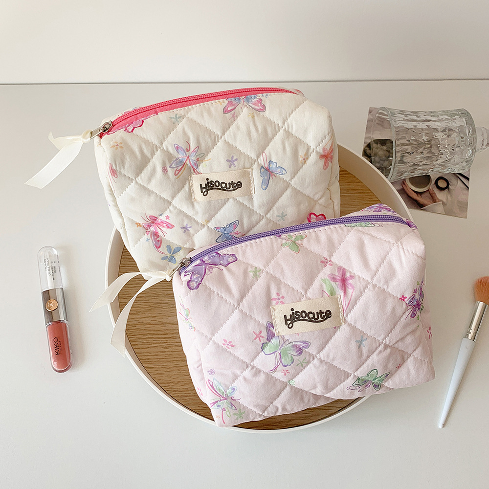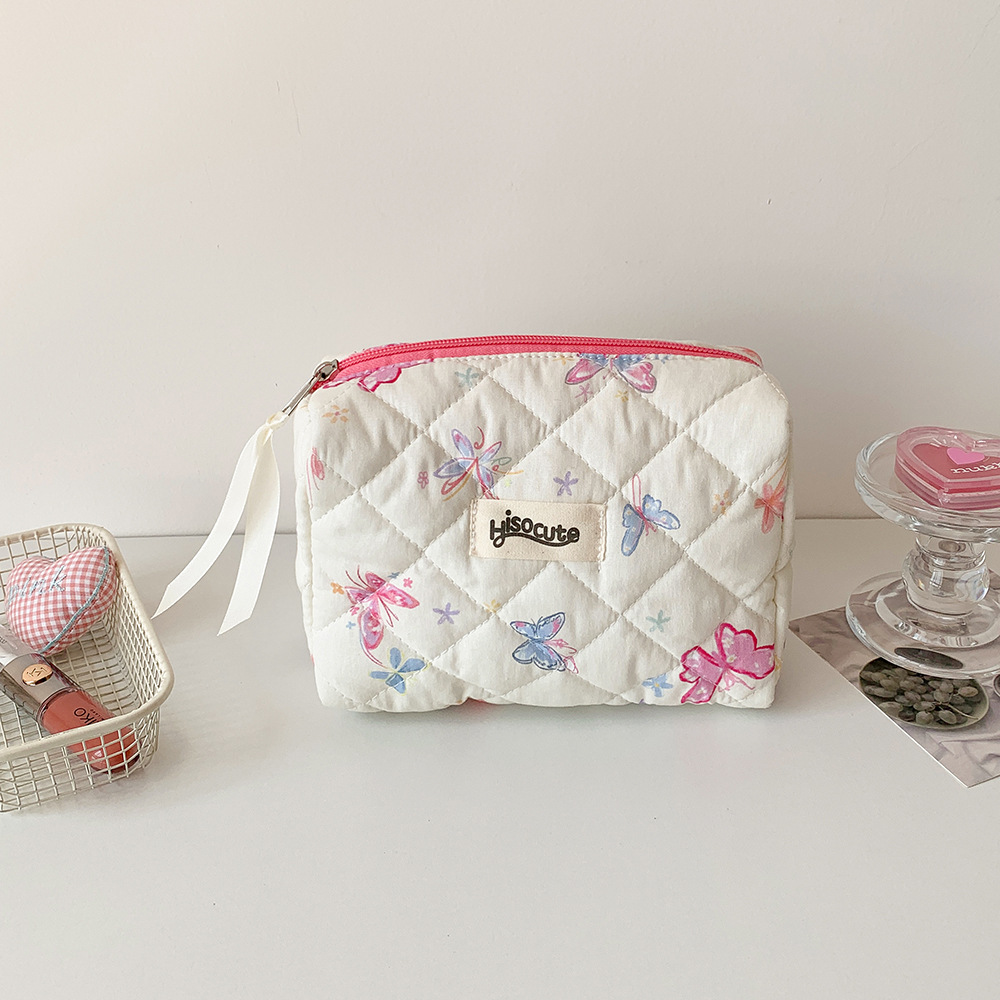 Ins 크림 스타일 나비 인쇄 화장품 가방 대용량 스킨 케어 제품 보관 가방 휴대용 세면 용품 가방 데스크탑 스토리지