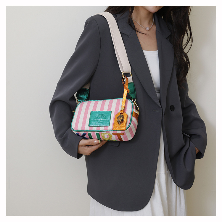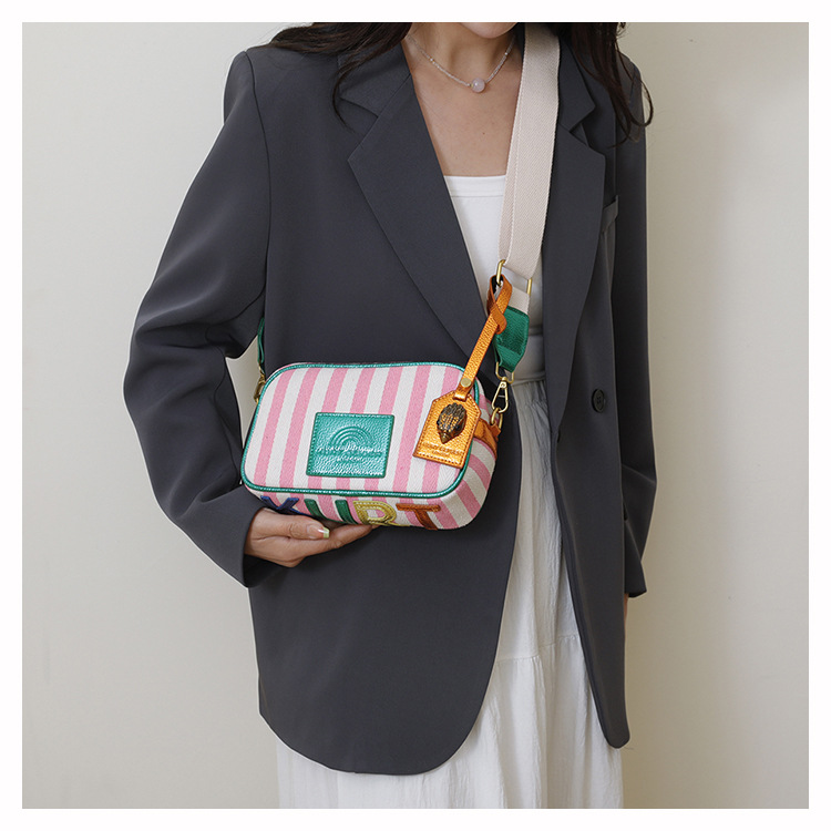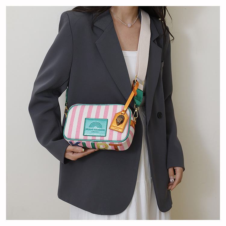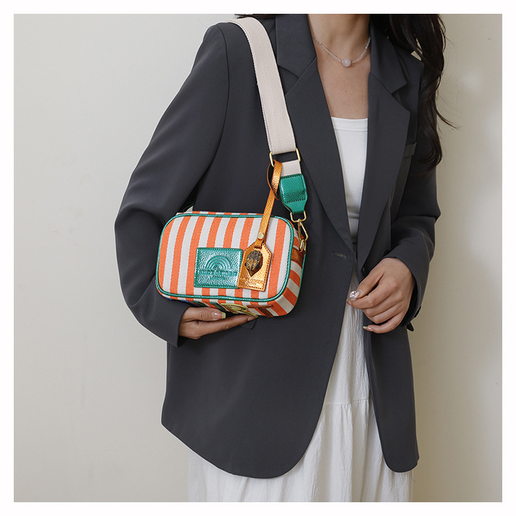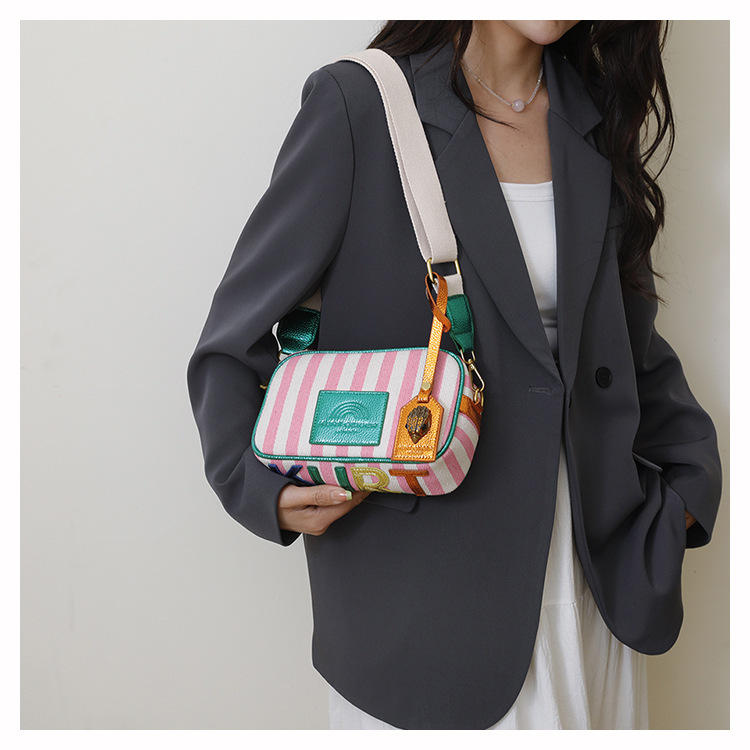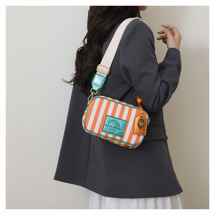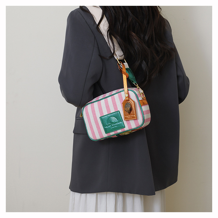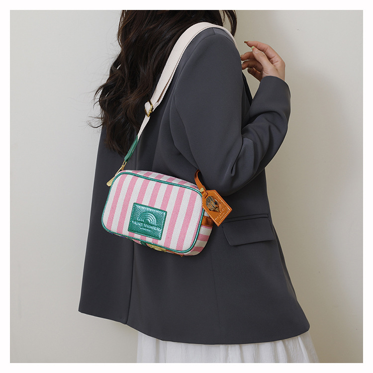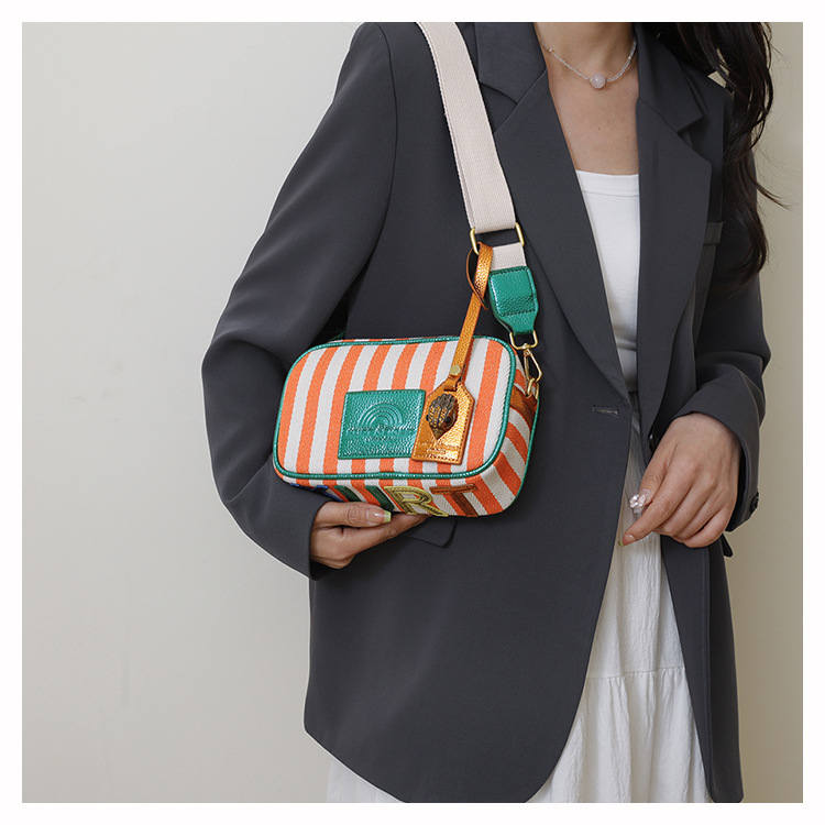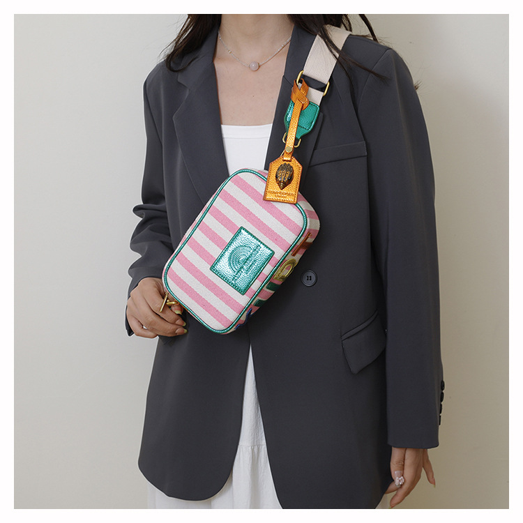 하이 엔드 카메라 가방 패션 개성 작은 사각형 가방 올 매치 원 숄더 슬링 여성 가방 와이드 숄더 스트랩 스트라이프 독수리 헤드 백